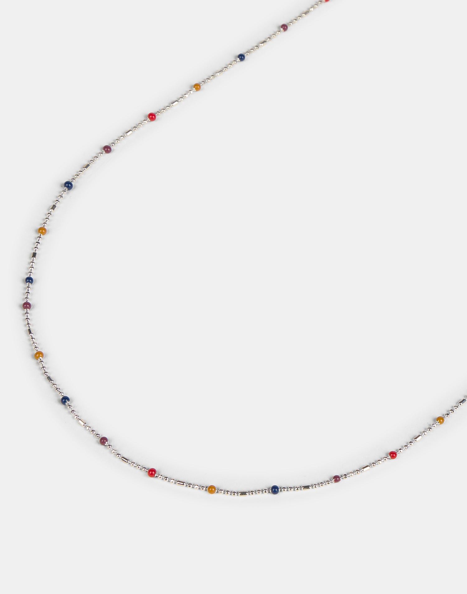 Collar de cadena con cuentas de colores. Cierre de mosquetón.