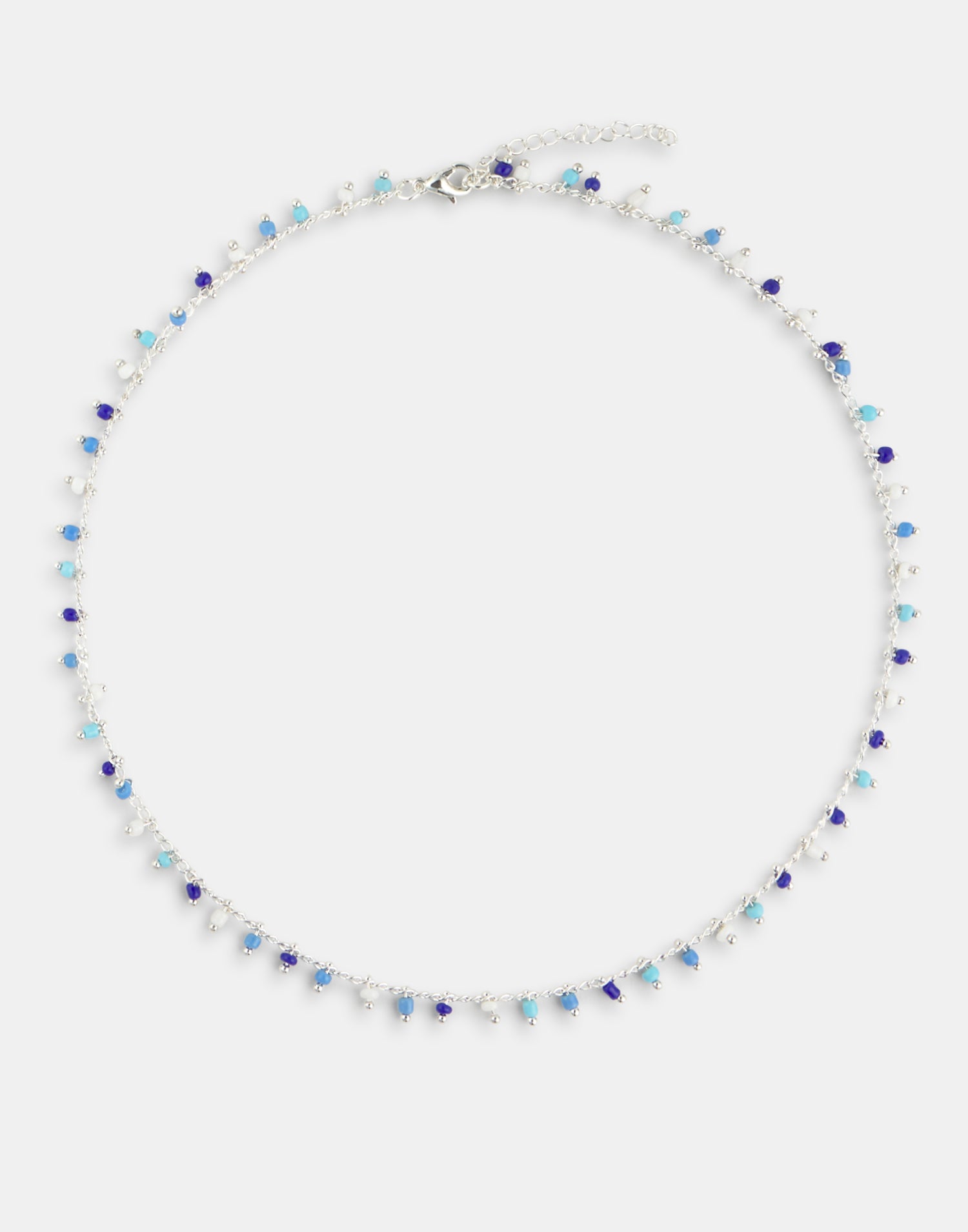 Collar de cadena con cuentas de colores. Cierre de mosquetón.