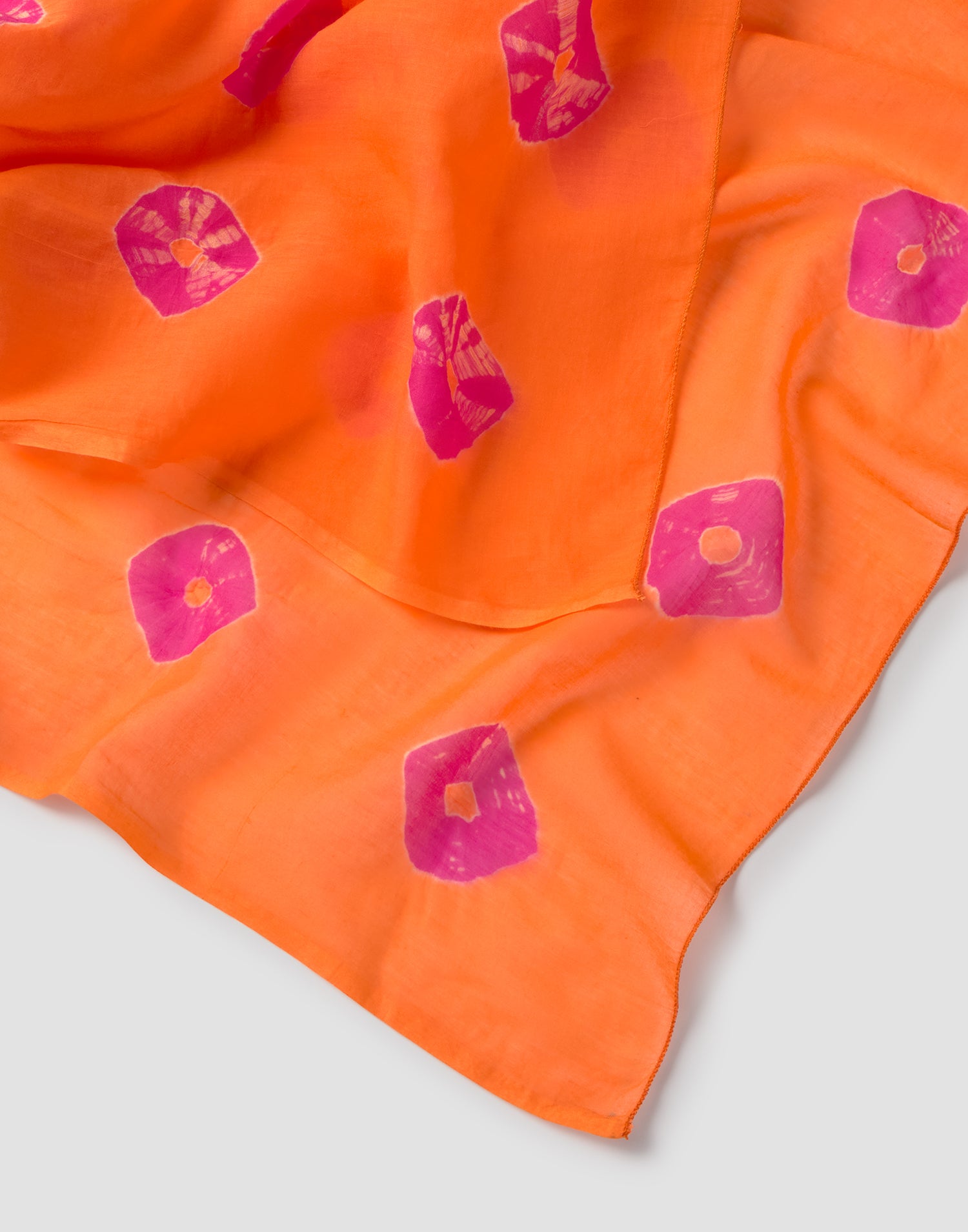 Pañuelo estampado confeccionado en algodón con efecto tie dye.