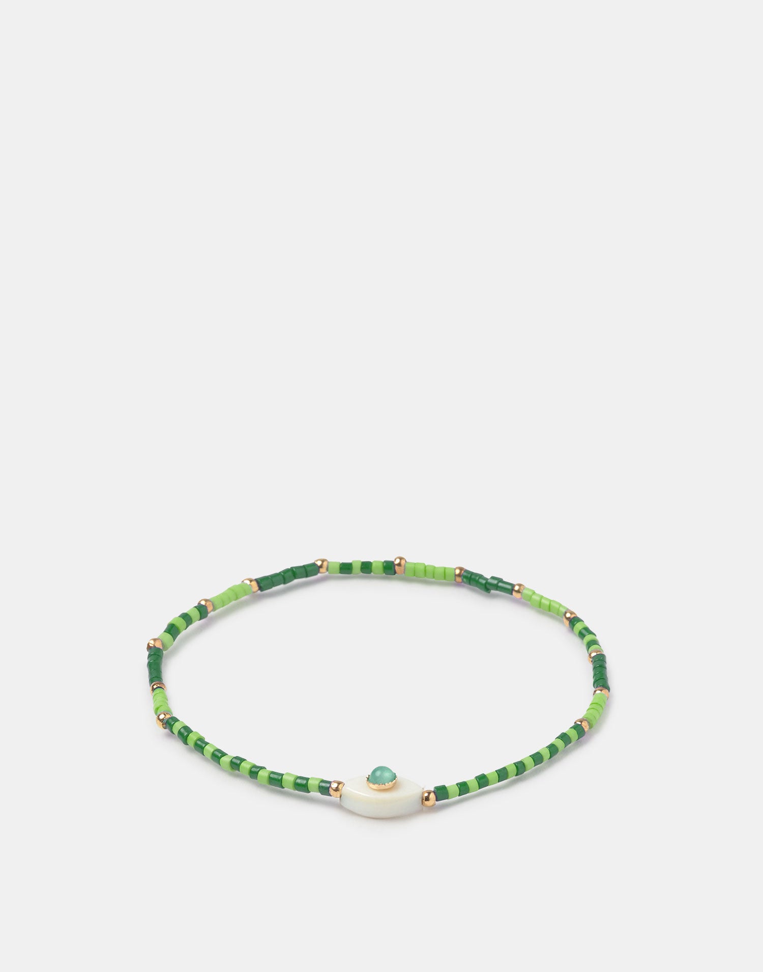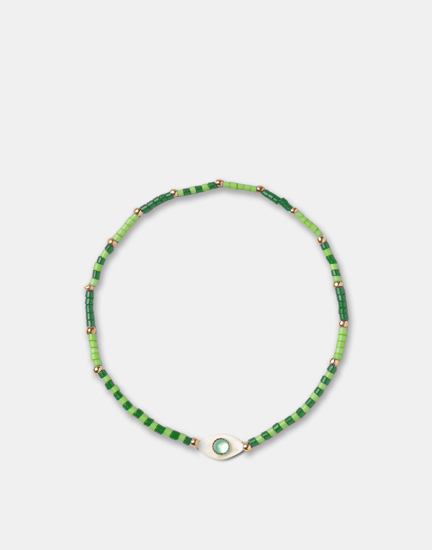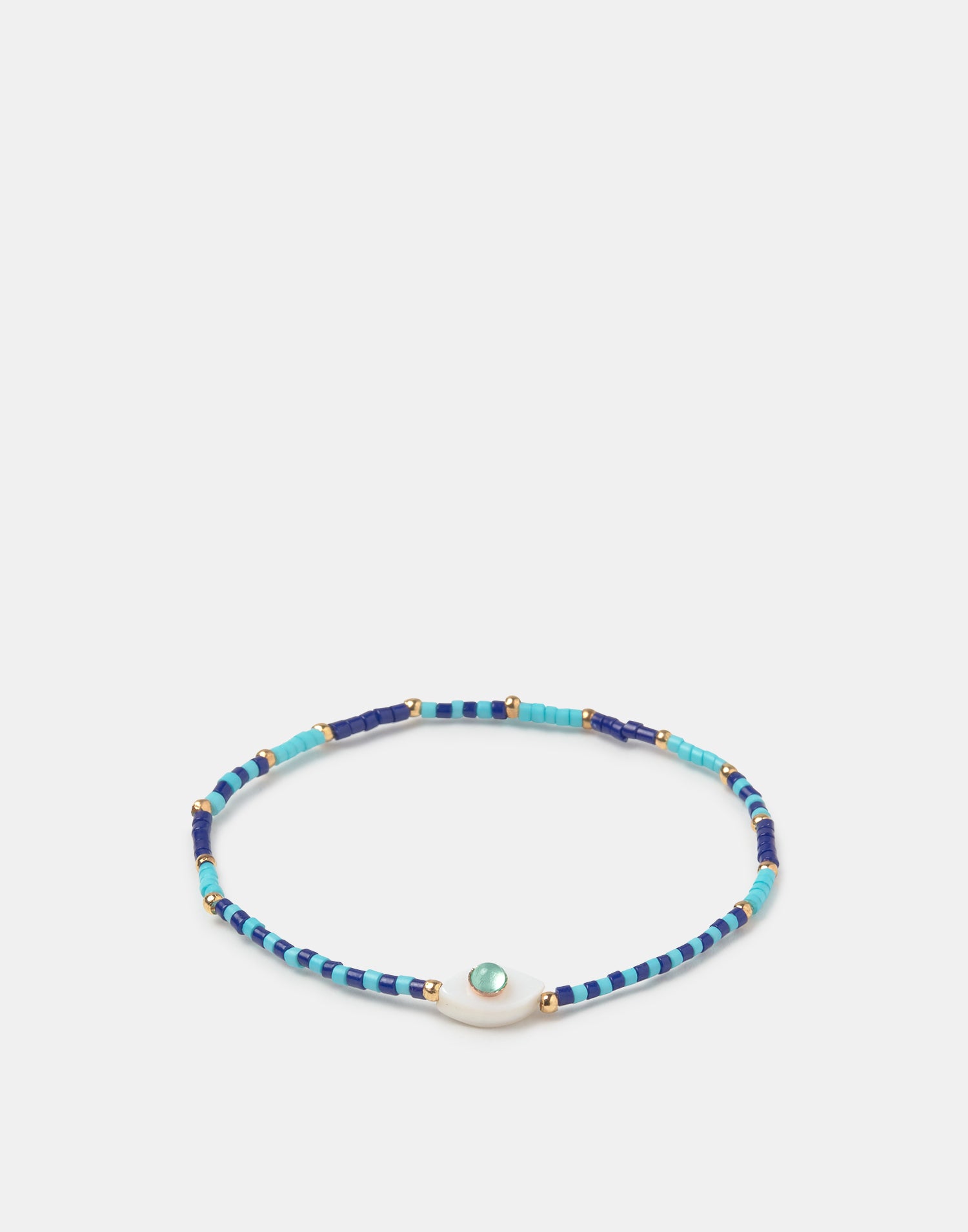 Pulsera de cuentas elástica con detalle de ojo turco.