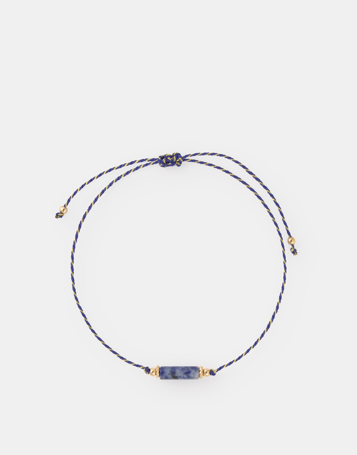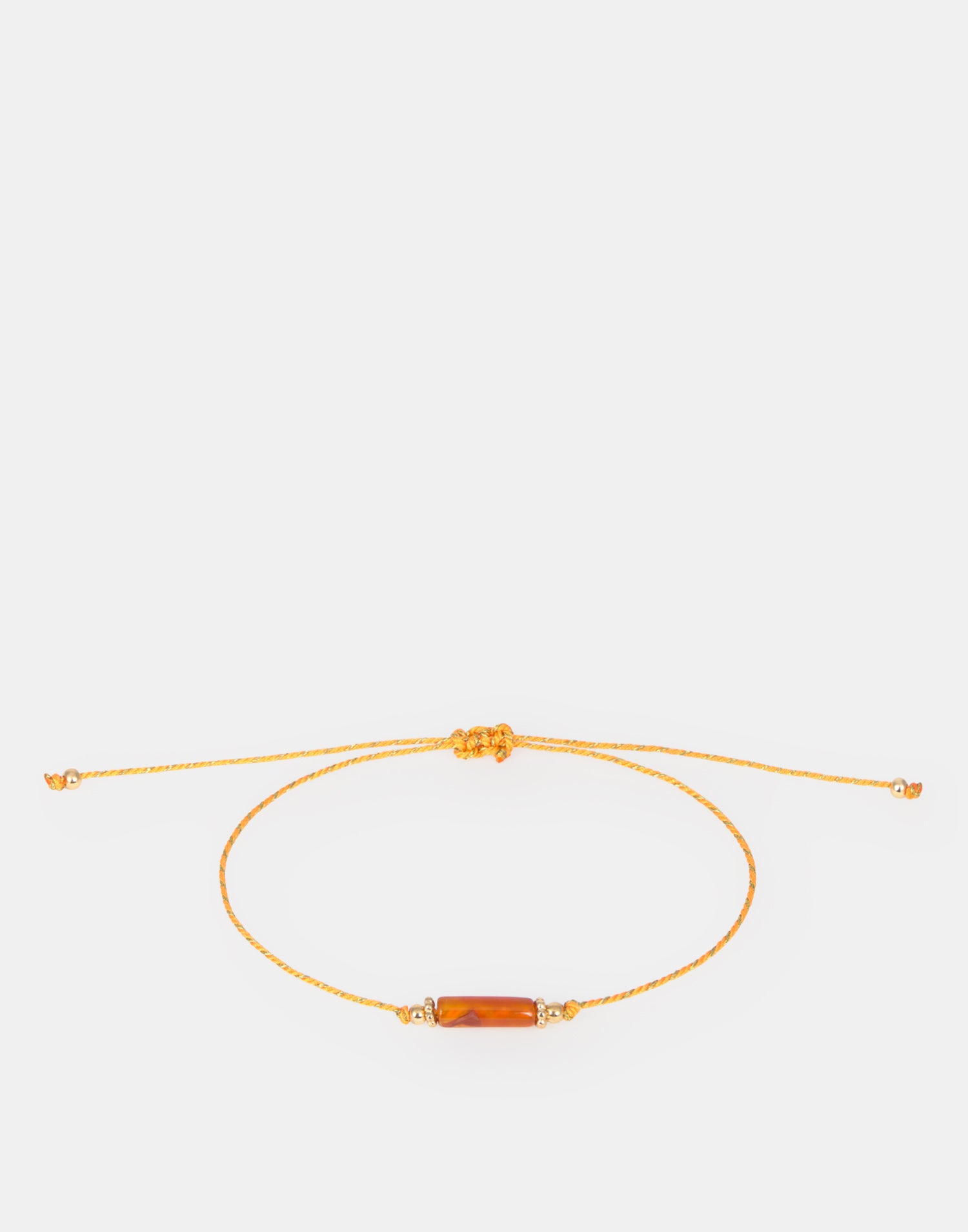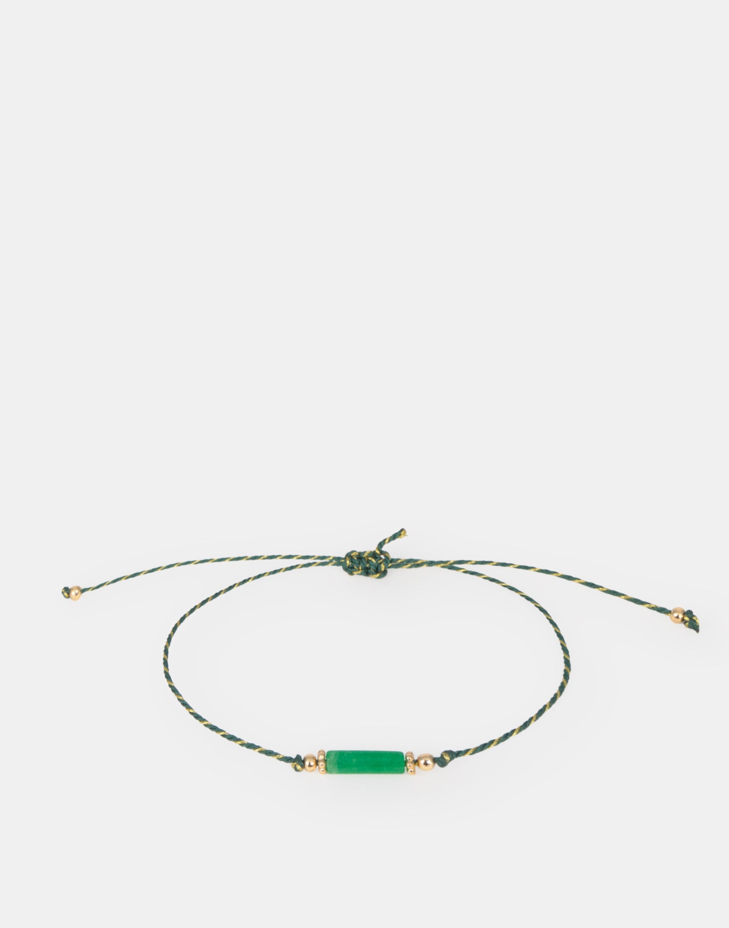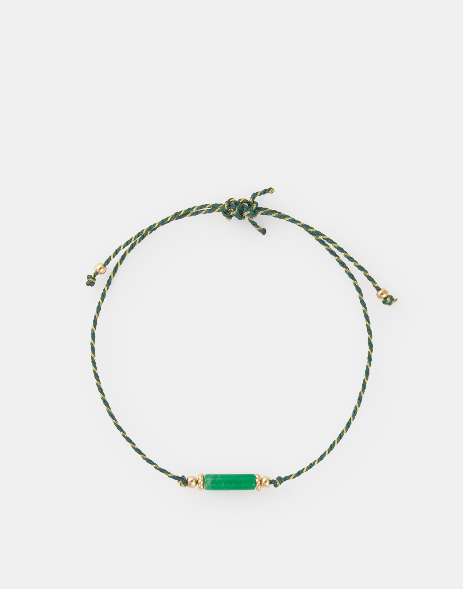 Pulsera de hilo con piedra de jade y cierre de nudo corredizo.
