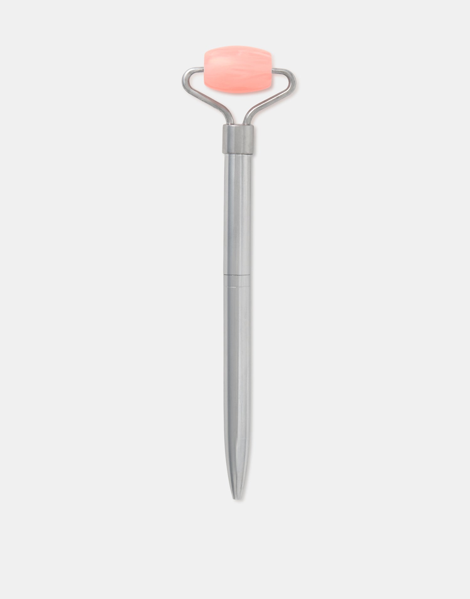 Bolígrafo con masajeador facial tipo roller en el extremo. Ayudarás a relajar los músculos faciales y a aportar firmeza en tu piel mientras tomas tus apuntes.
