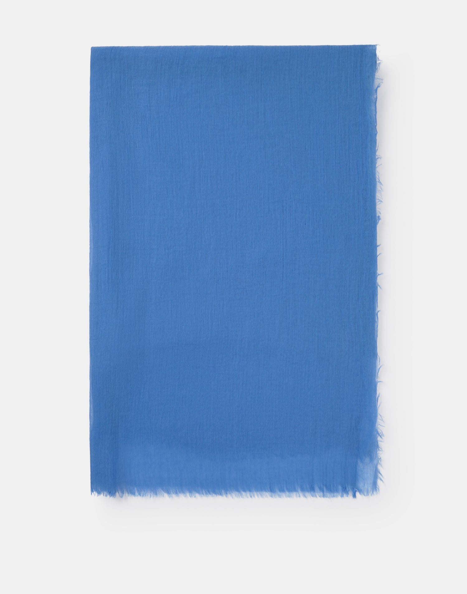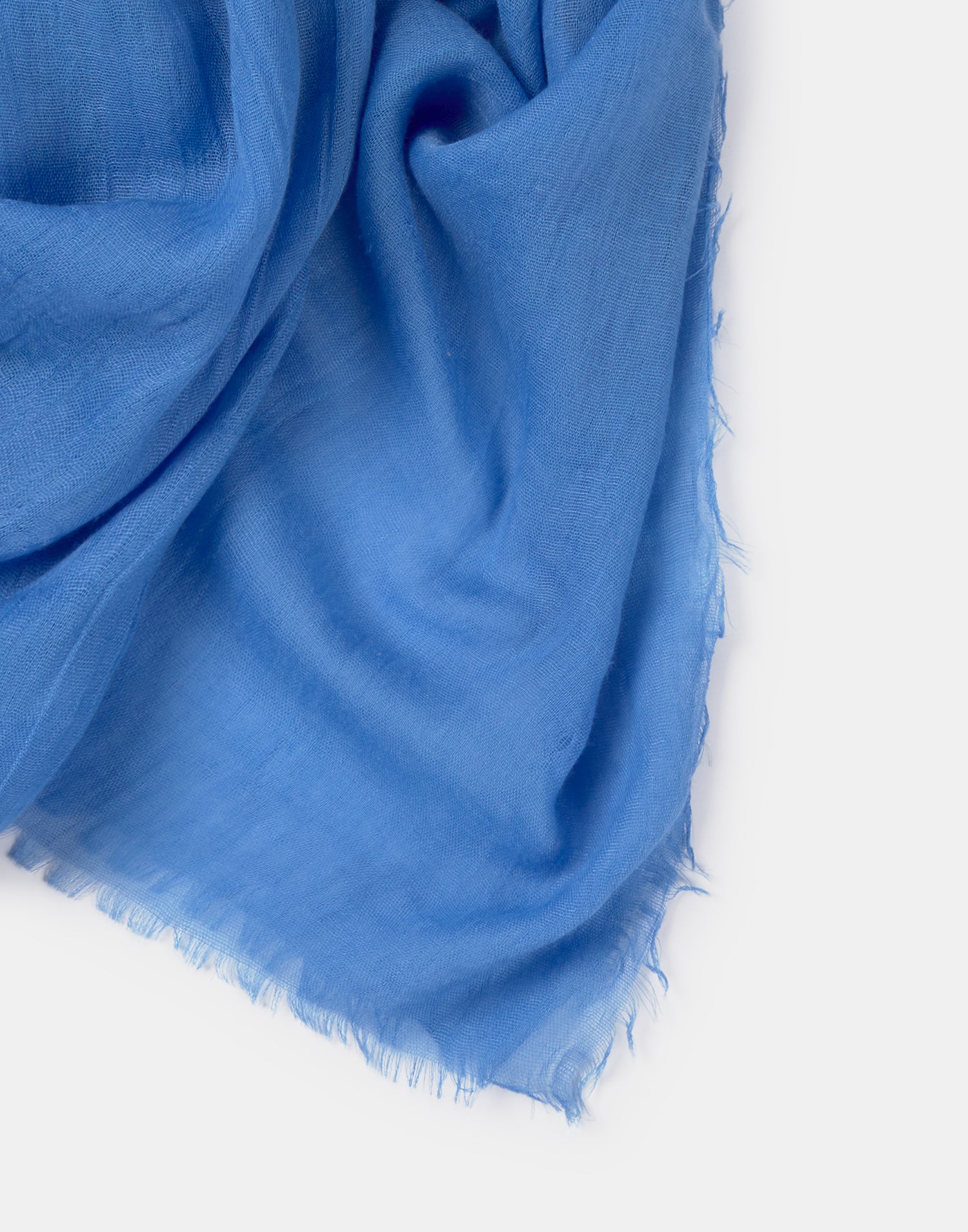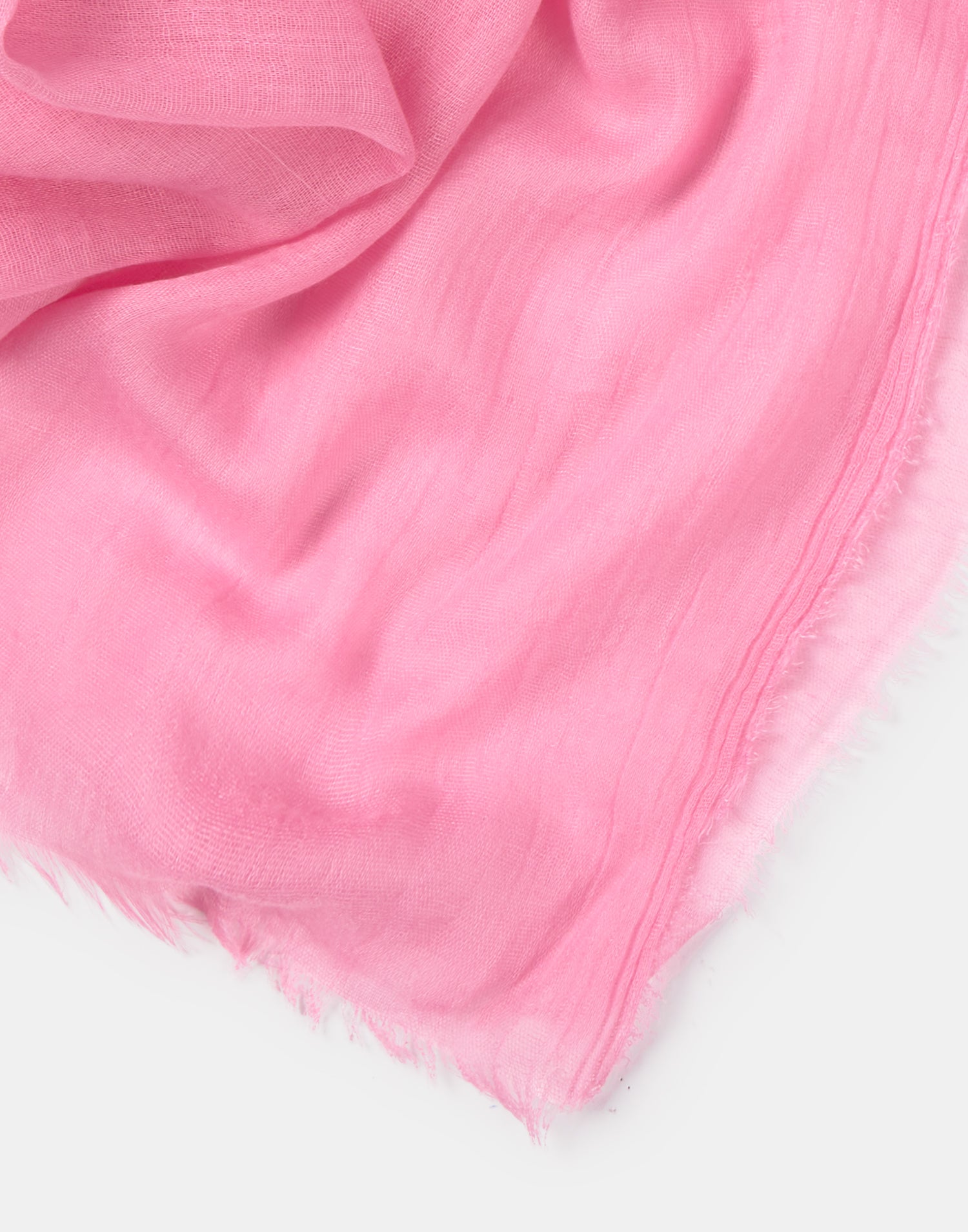 Fular liso con detalle de tejido efecto arrugado y terminaciones deshilachadas.