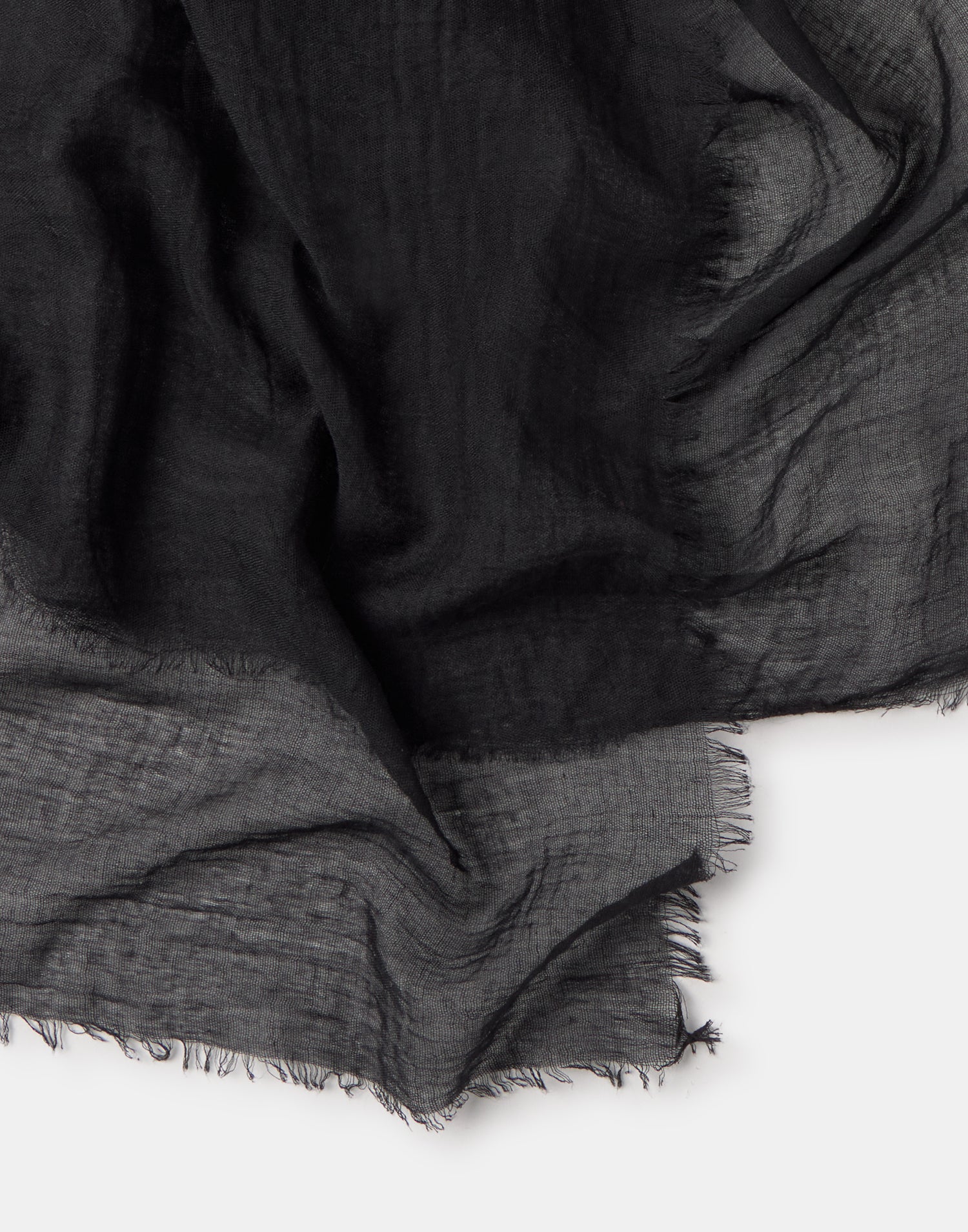 Pañuelo liso de tejido suave y terminaciones deshilachadas.