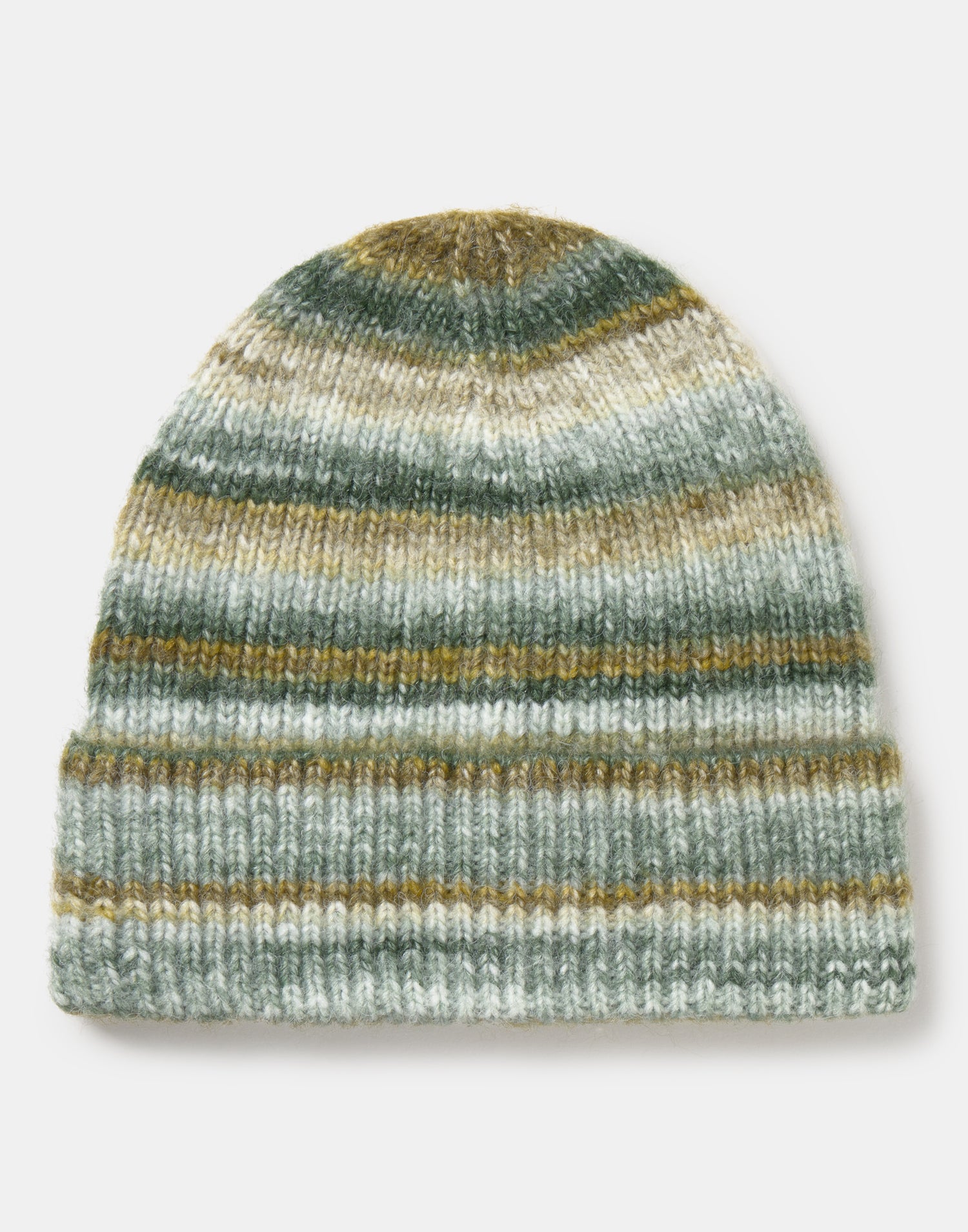 Gorro de punto con diseño multicolor y acabado con vuelta.