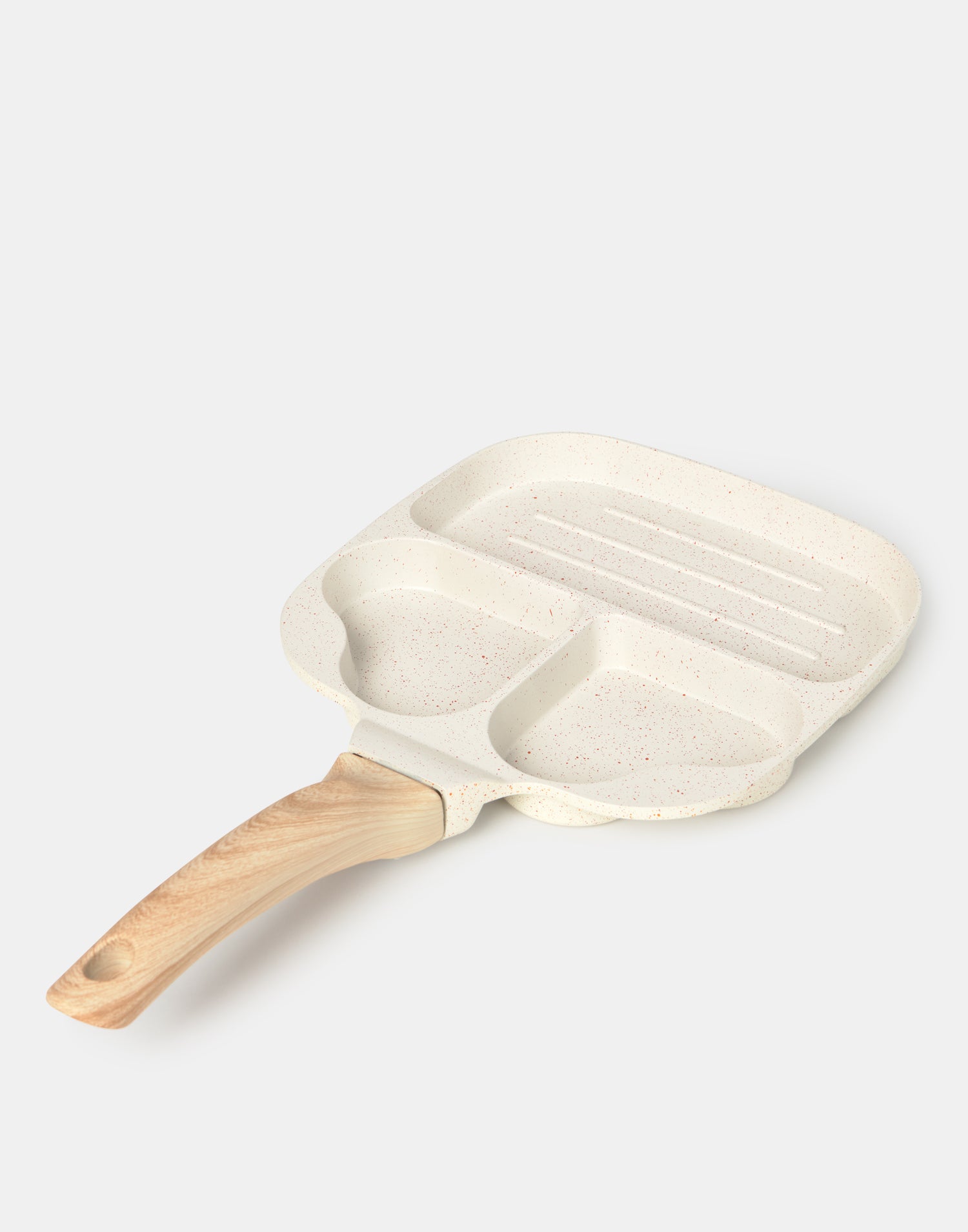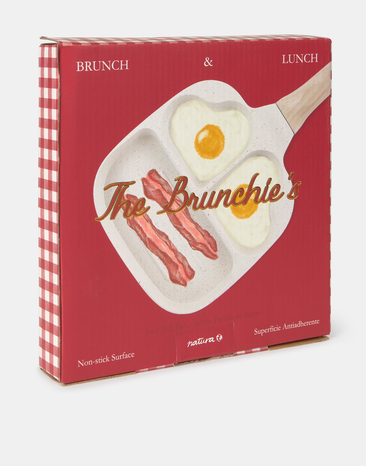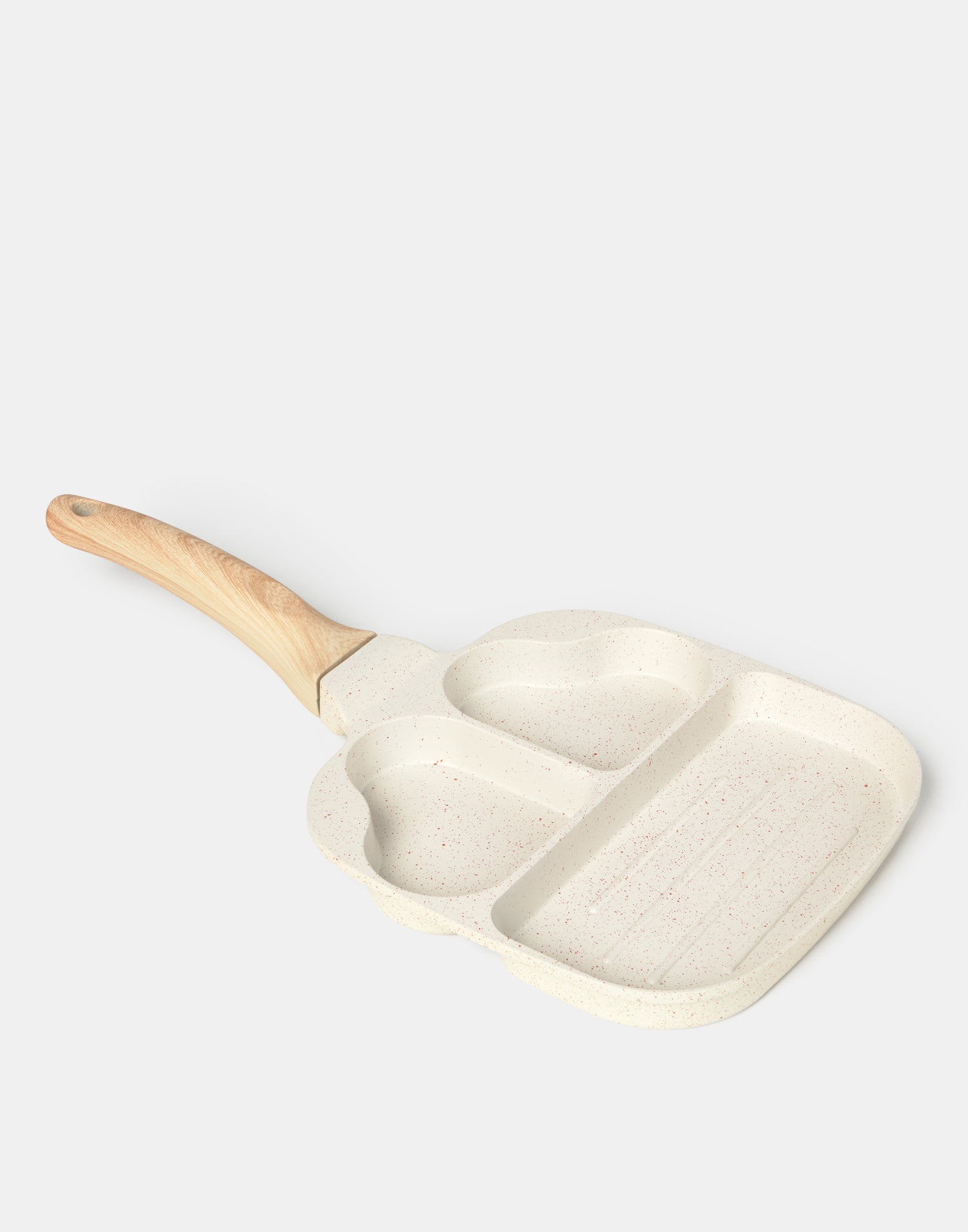 Sartén de hierro antiadherente con 3 espacios: dos en forma de corazón y una plancha rectangular. Sorprende a los tuyos con un american breakfast con huevos fritos en forma de corazón.