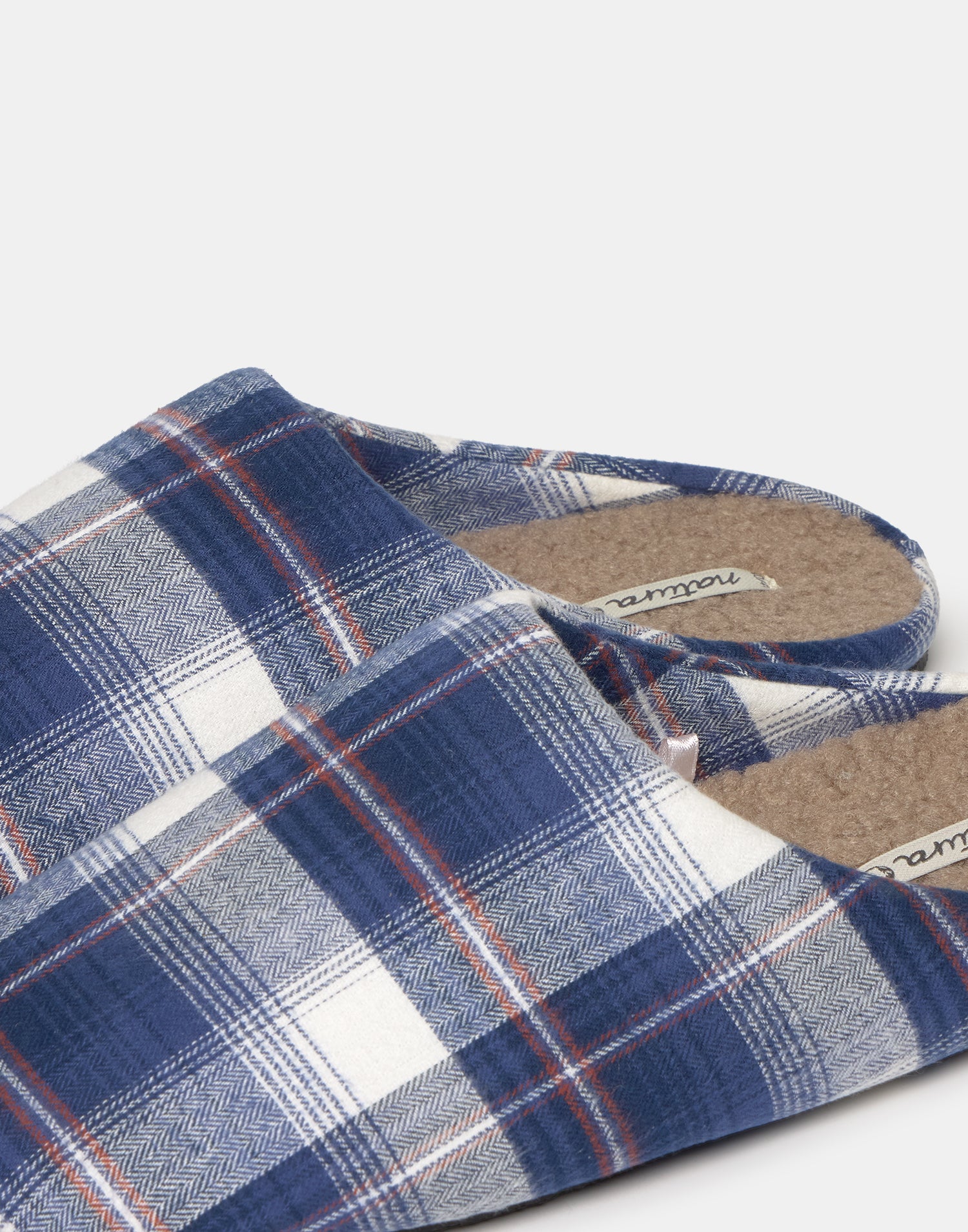 Zapatilla de diseño destalonado con forro interior de tejido efecto borreguito y suela de goma antideslizante.