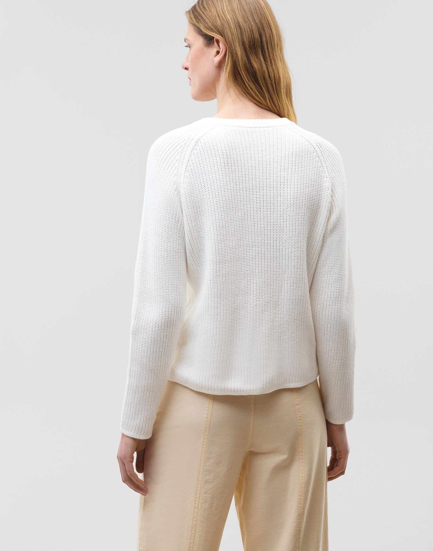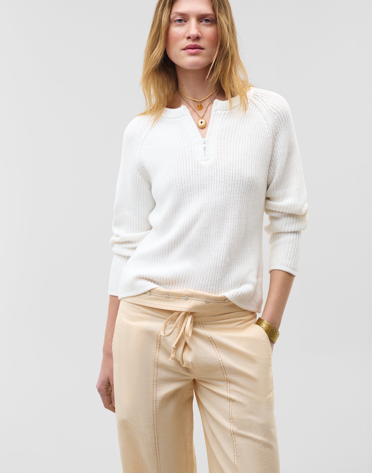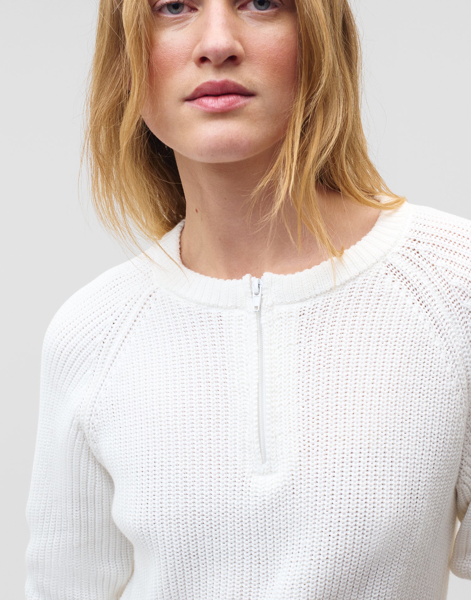 Jersey de punto con cuello redondo, manga larga y cierre parcial de cremallera.