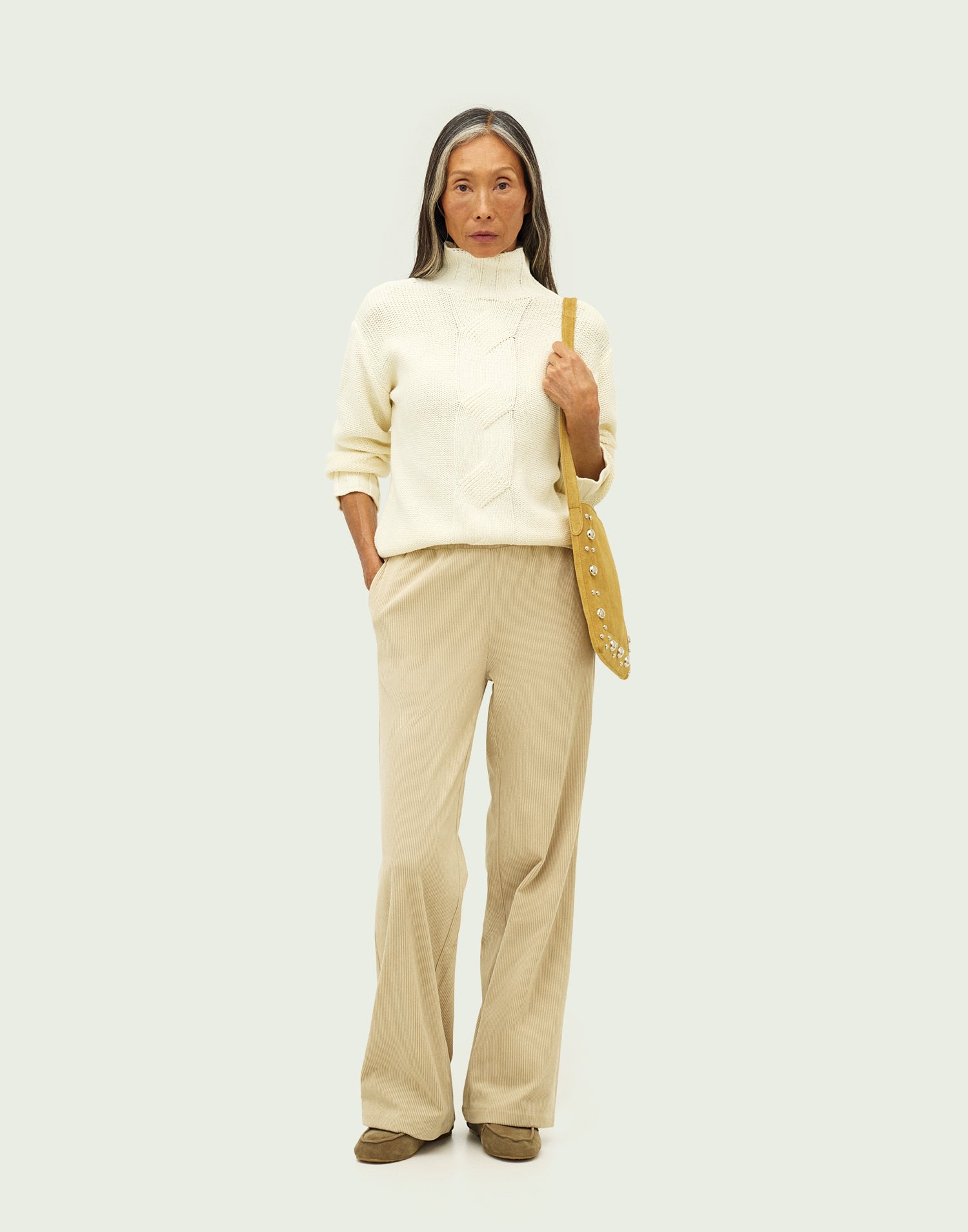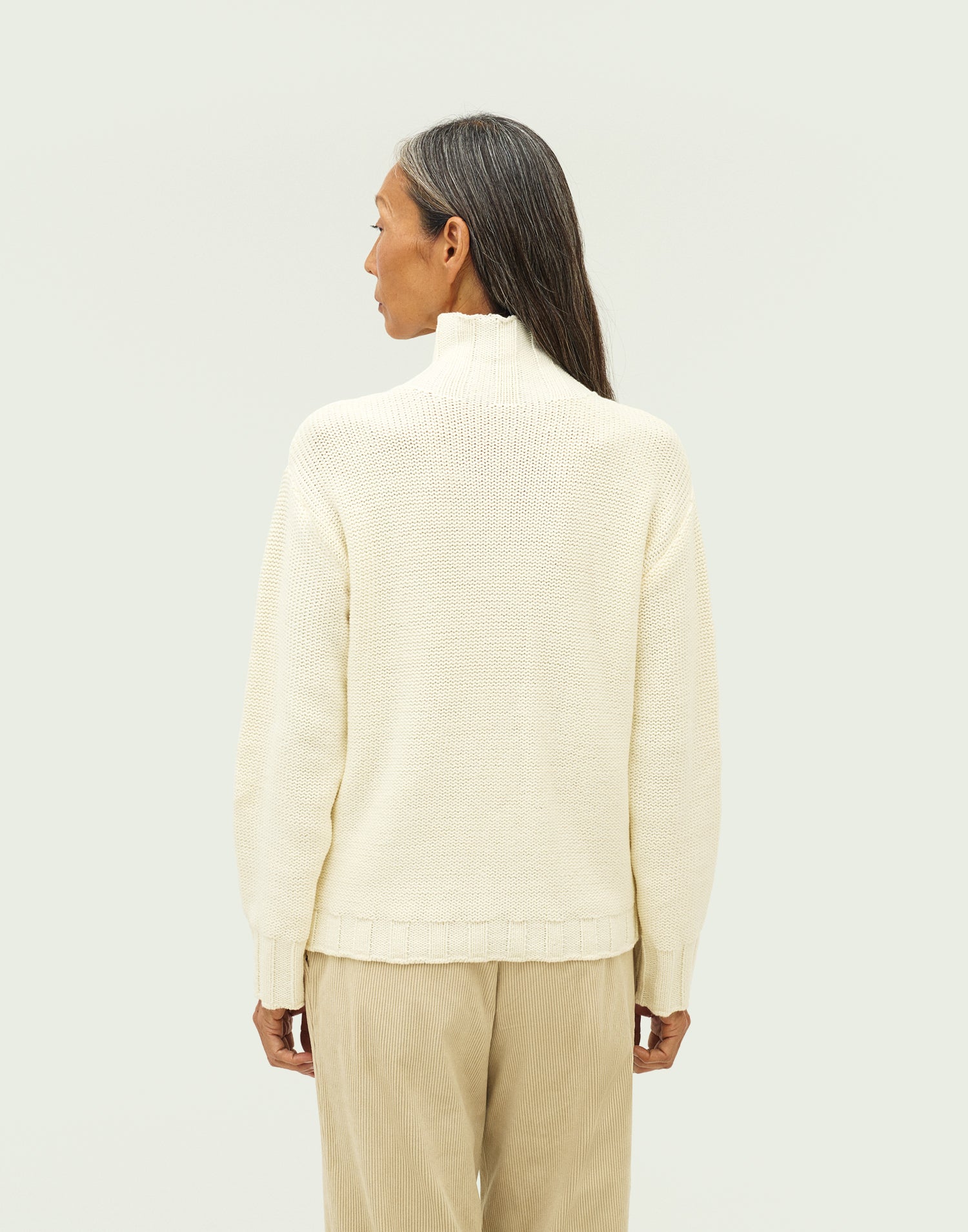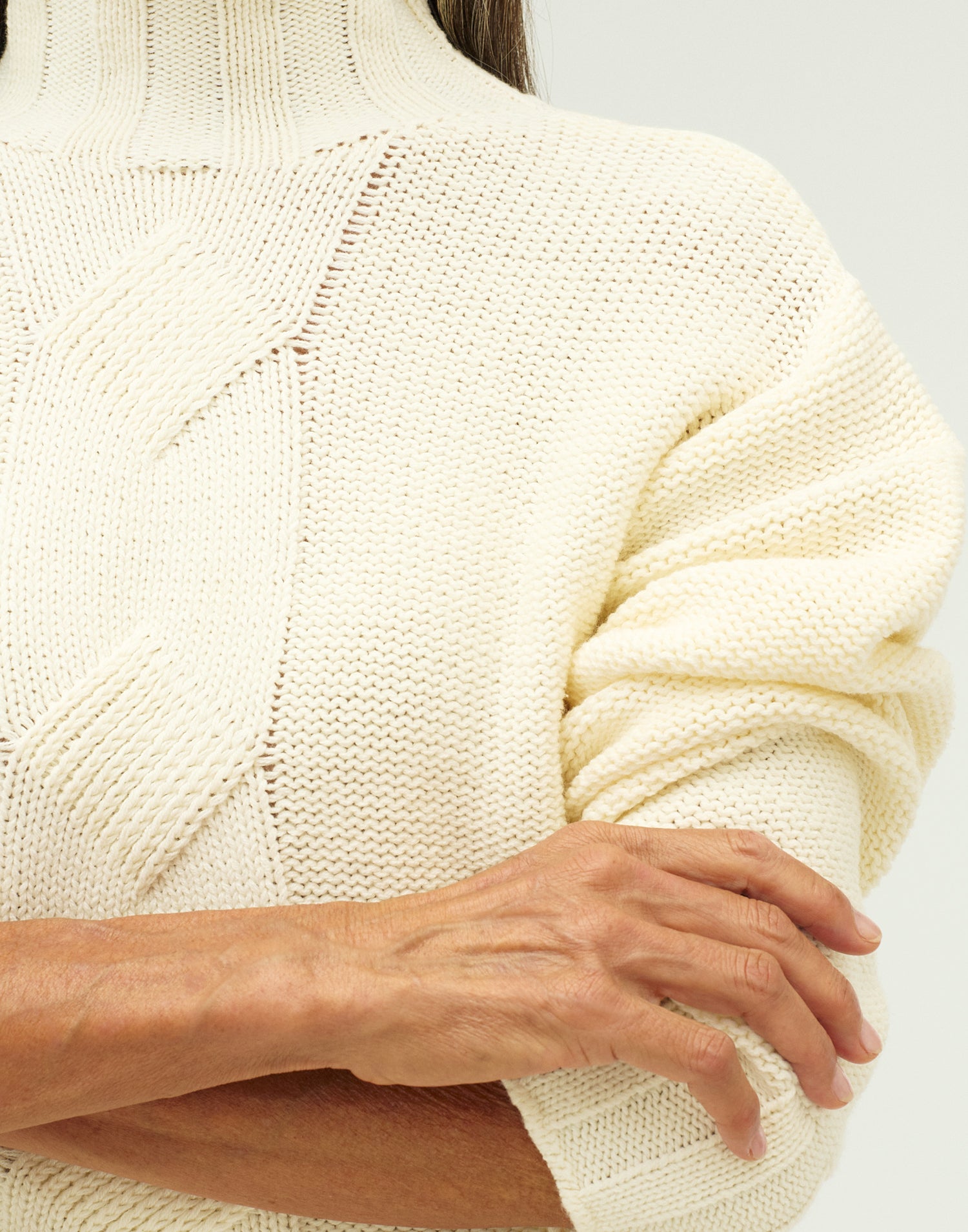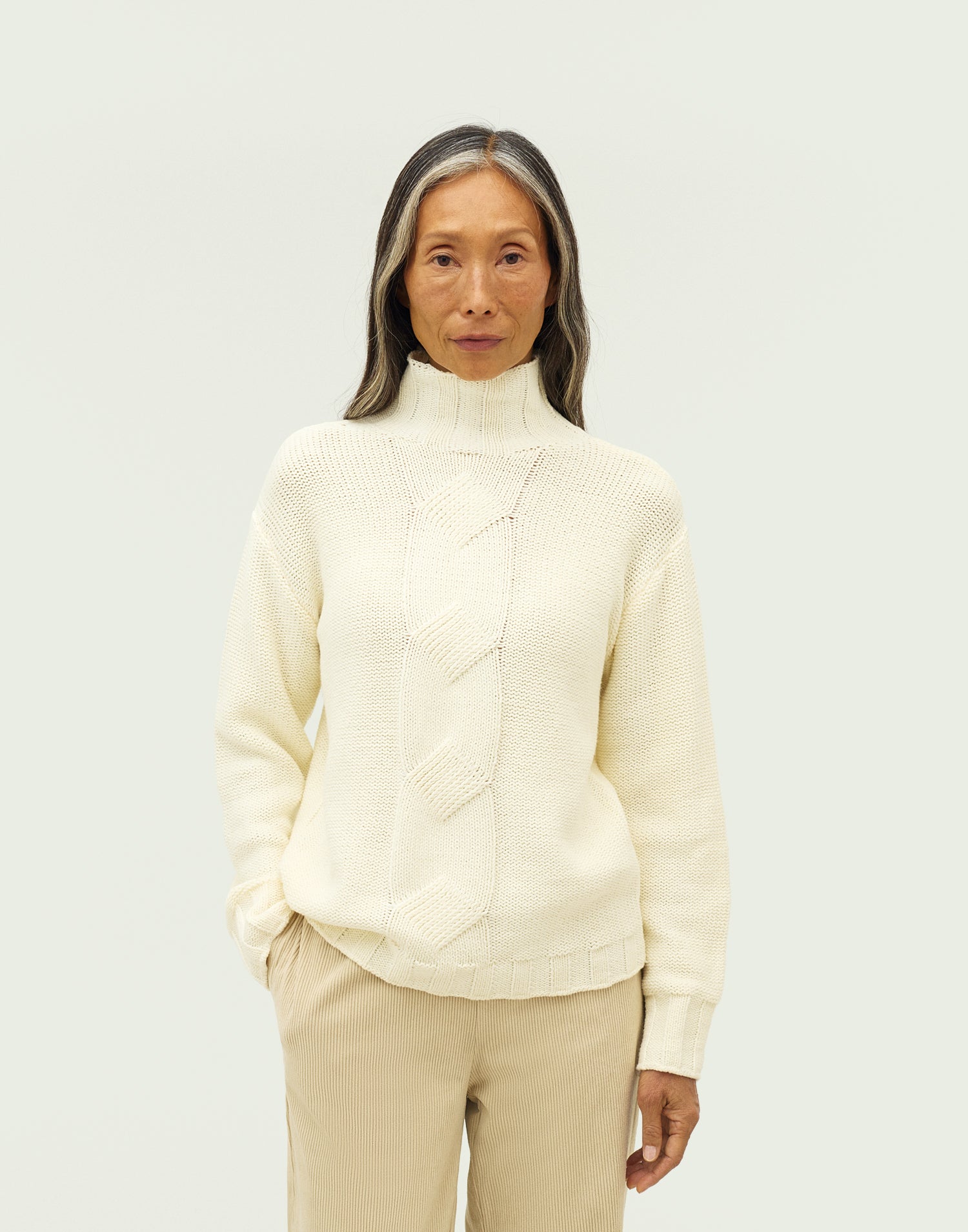 Jersey confeccionado en mezcla de algodón, con punto trenzado y cuello alto.