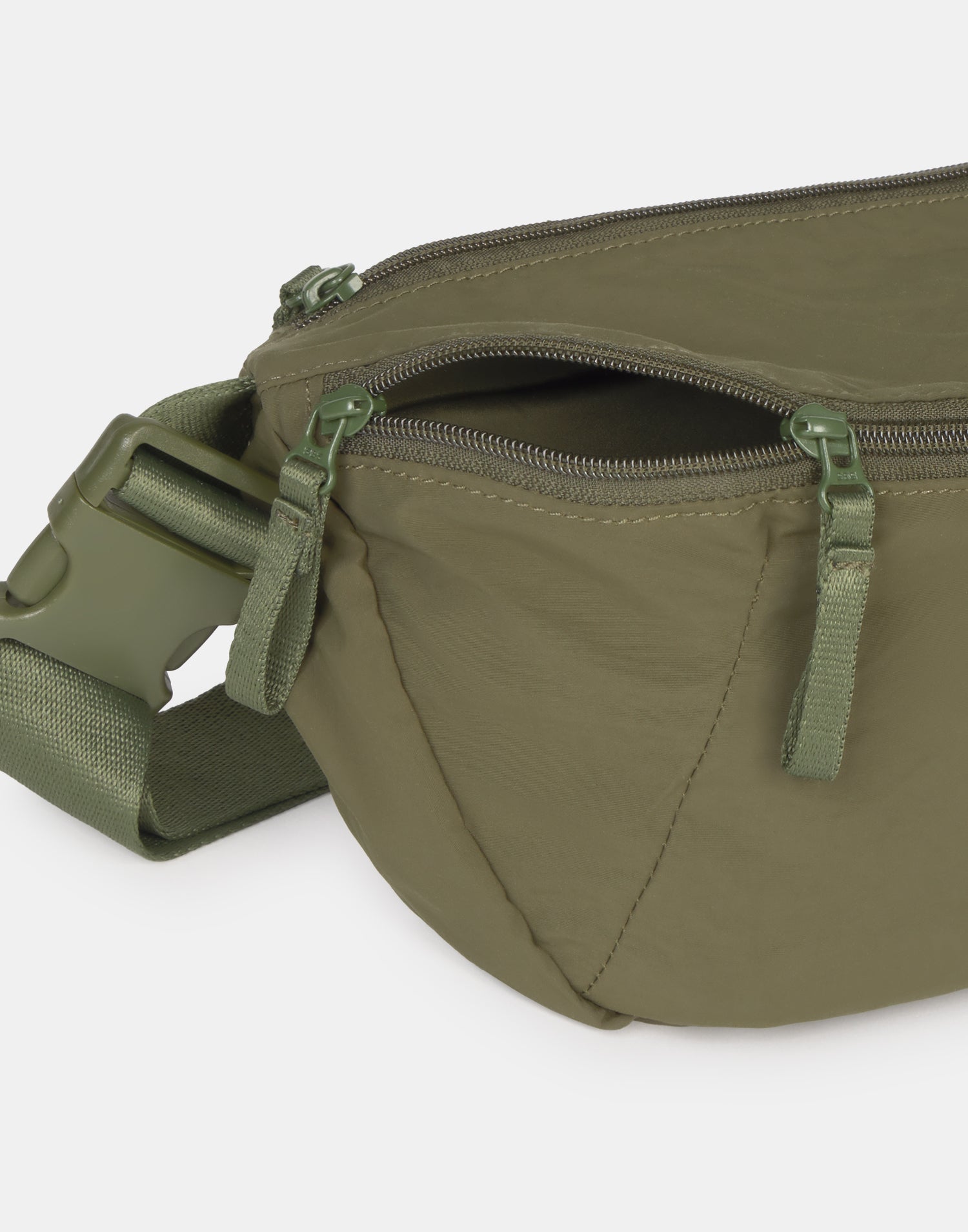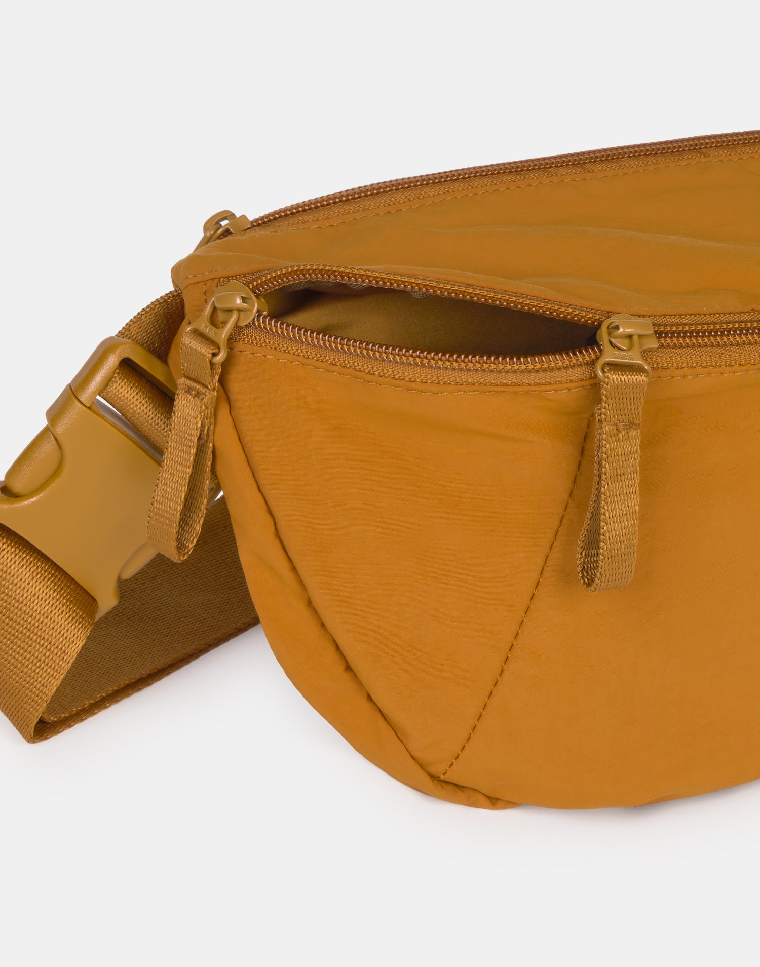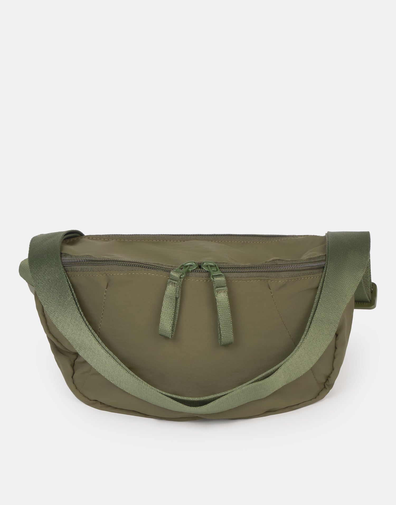 Riñonera realizada en tejido resistente al agua. Capacidad de 6 litros. Bolsillo en la parte trasera. Cierre de cremallera. Correa larga ajustable.
