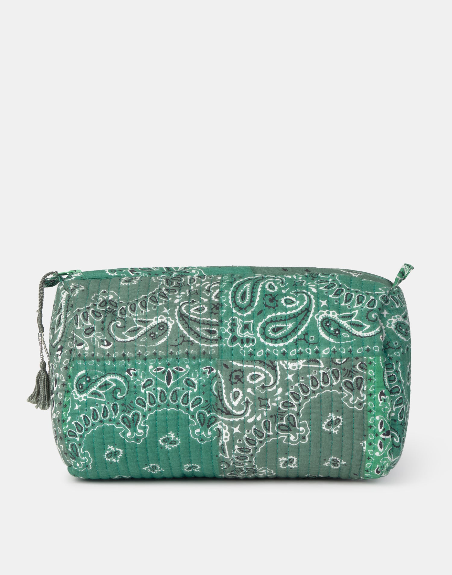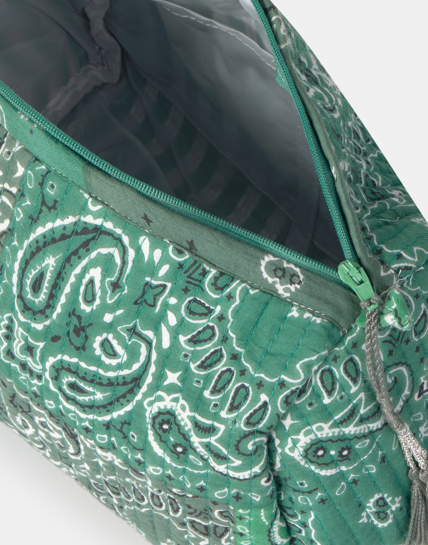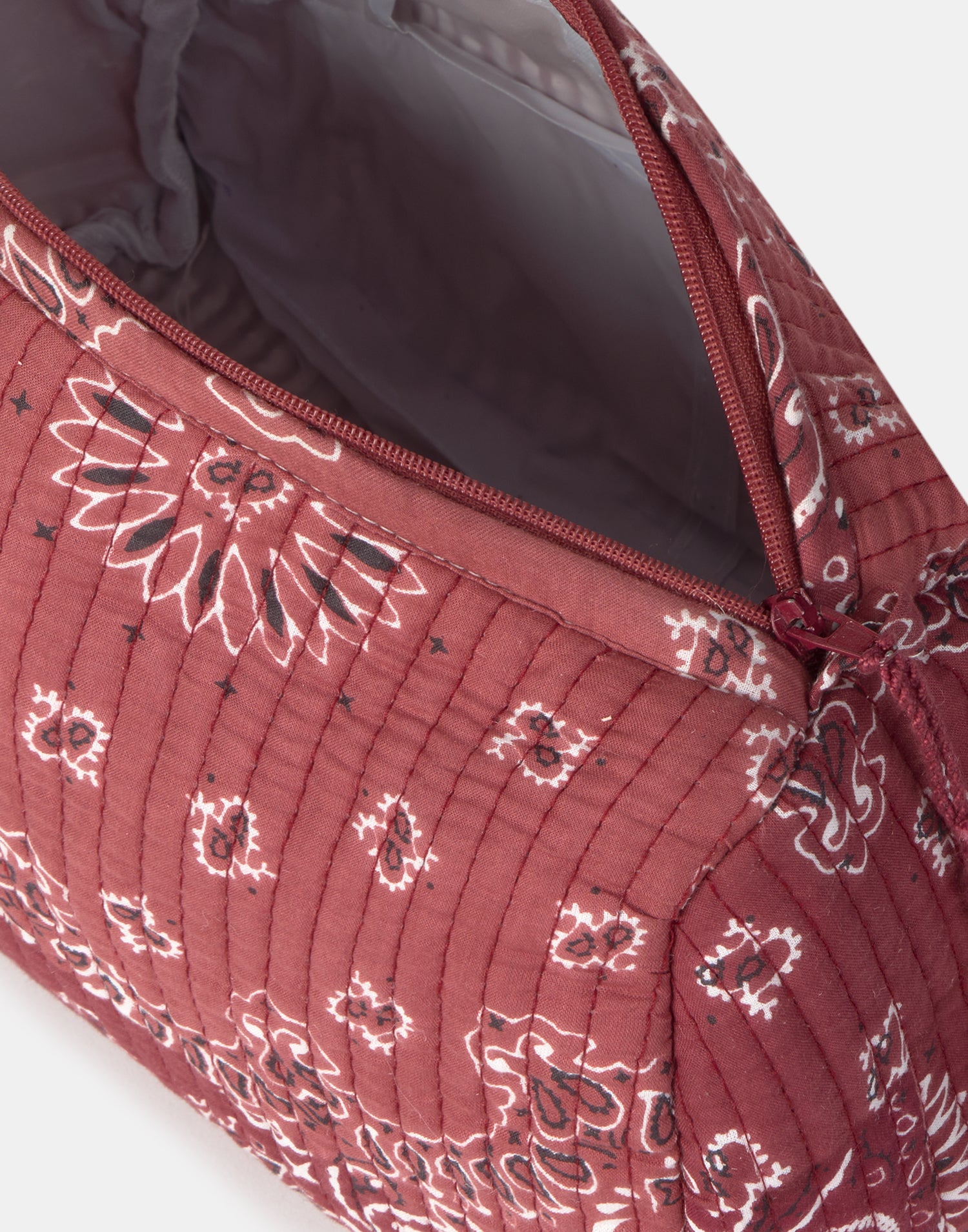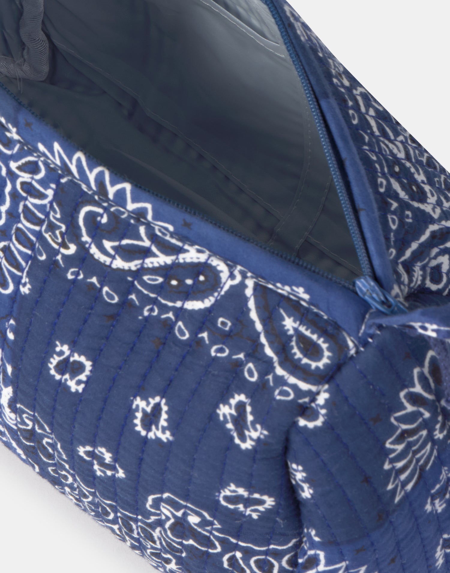 Neceser con interior plastificado y cierre de cremallera con detalle de pompón.