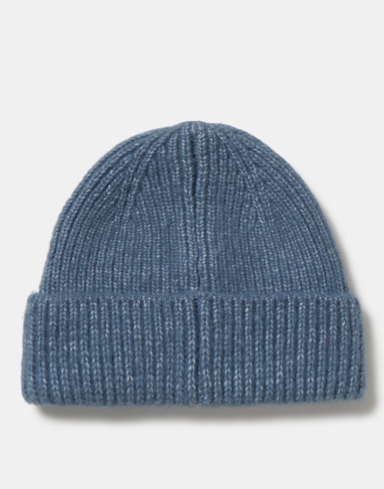 Gorro de punto con tejido en canalé y acabado con vuelta.