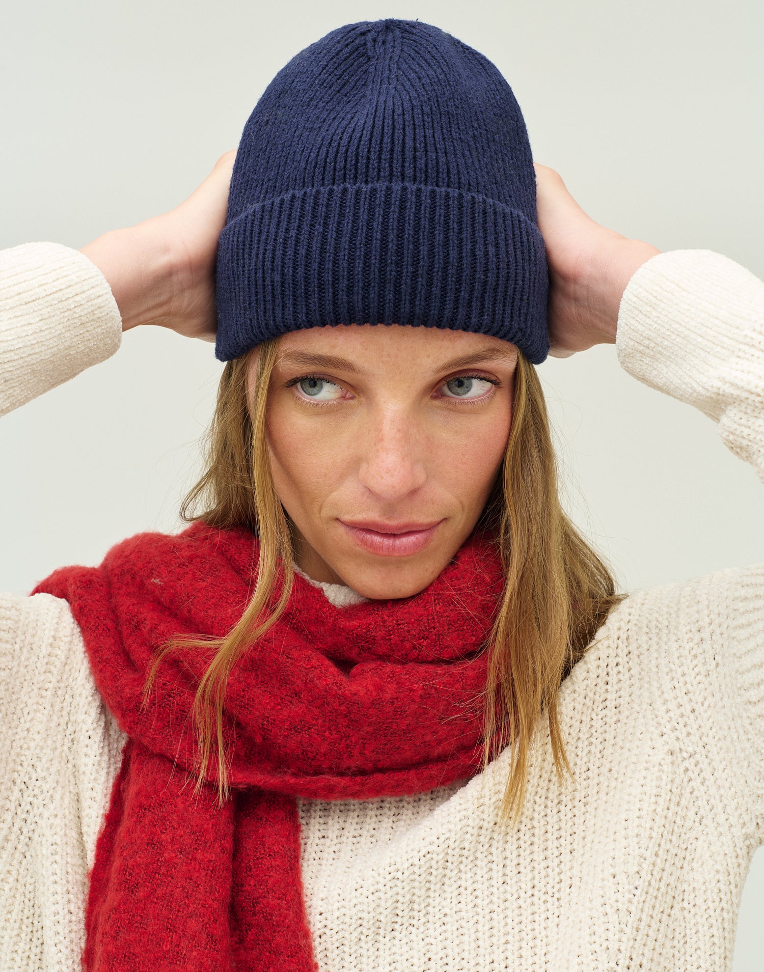 Gorro de punto confeccionado en mezcla de lana y acabado con vuelta.