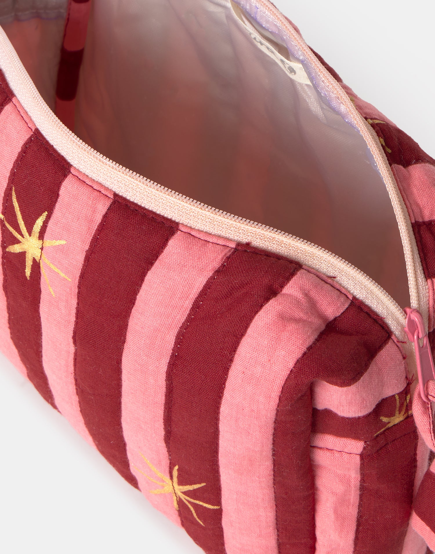 Neceser estampado con cierre de cremallera, bolsillo exterior y forro interior plastificado.