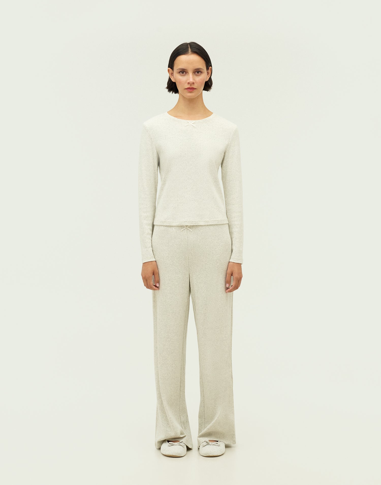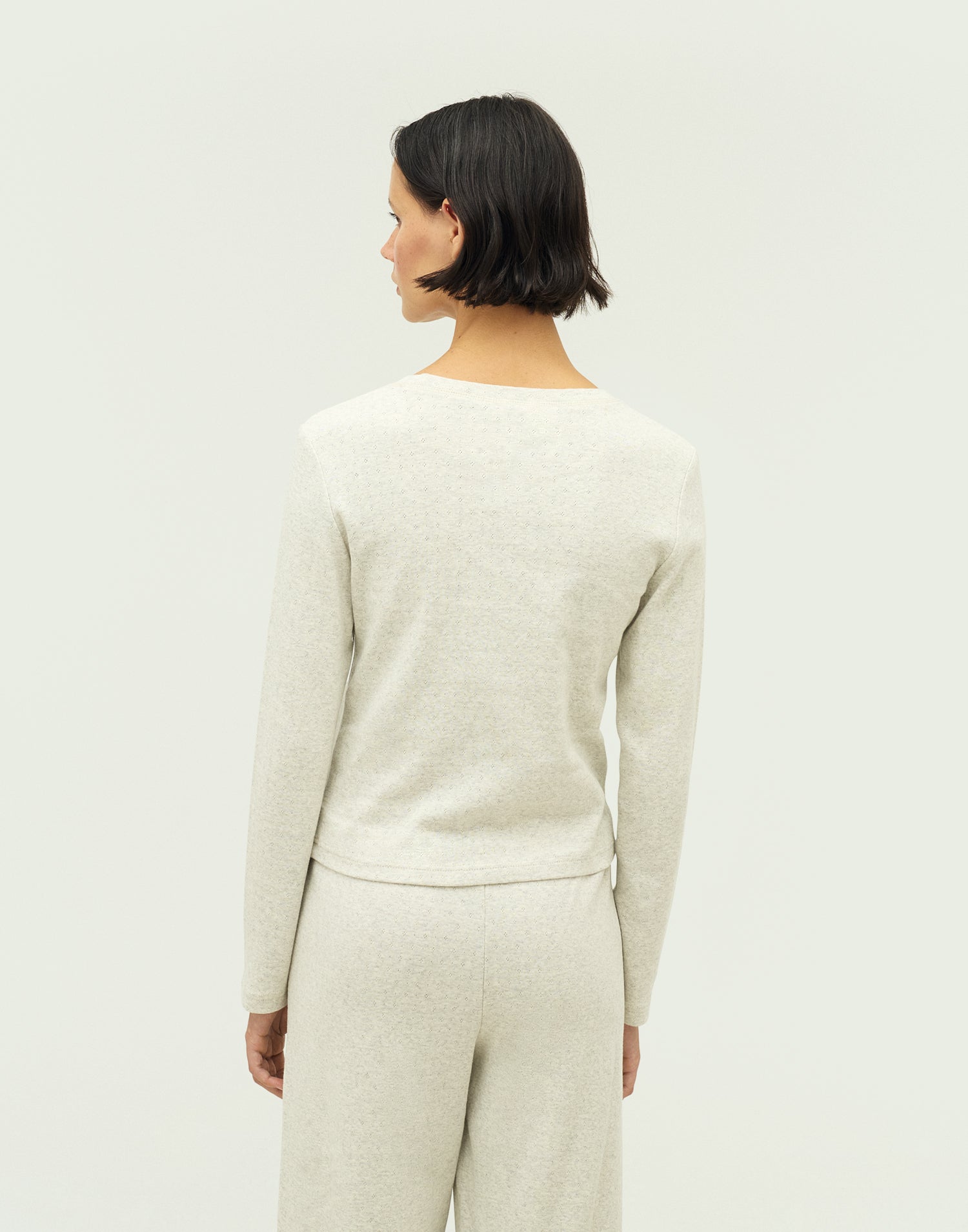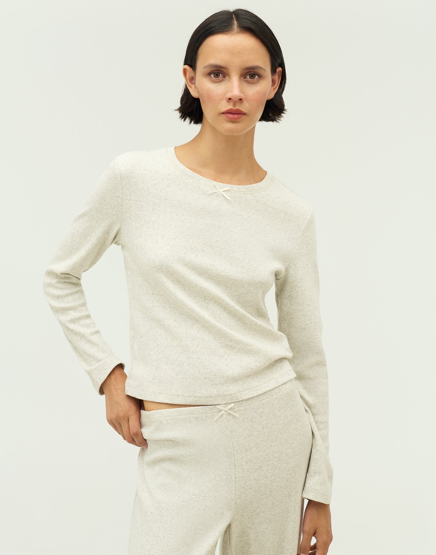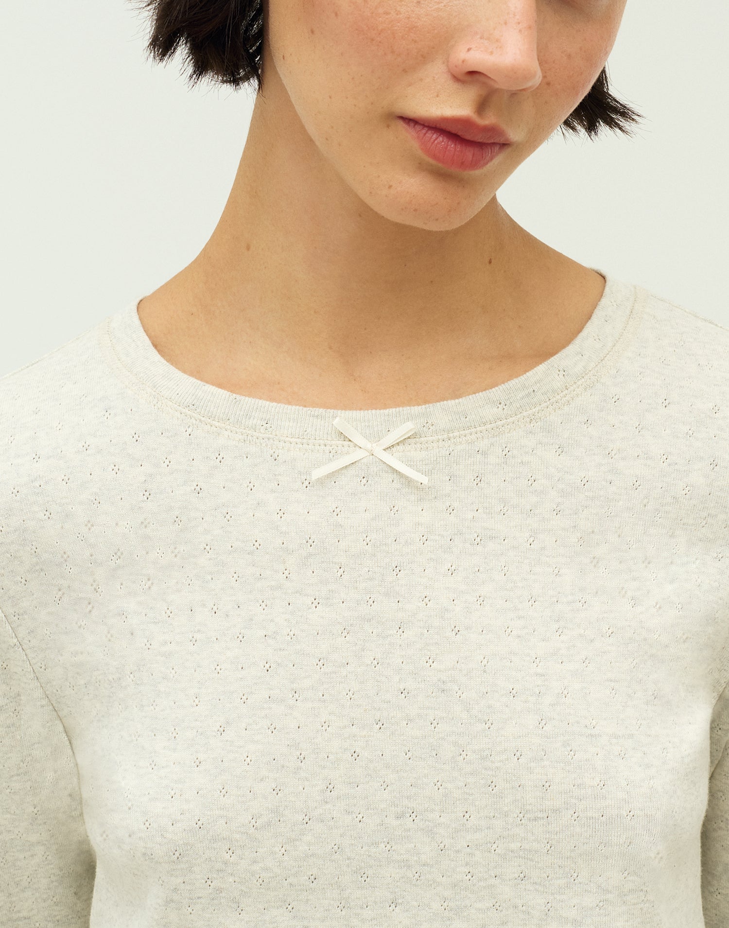 Camiseta en punto pointelle de algodón con manga larga y cuello redondo.