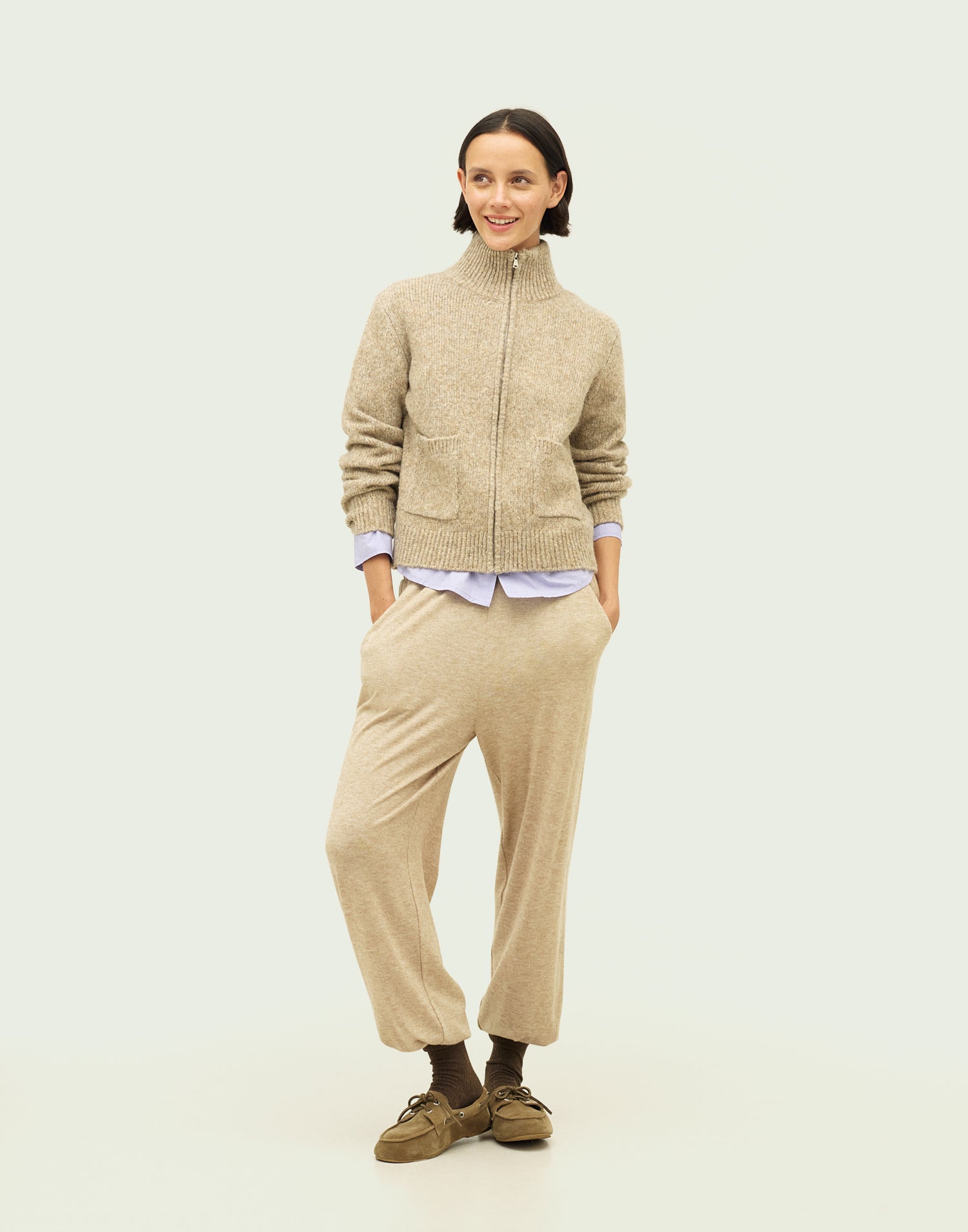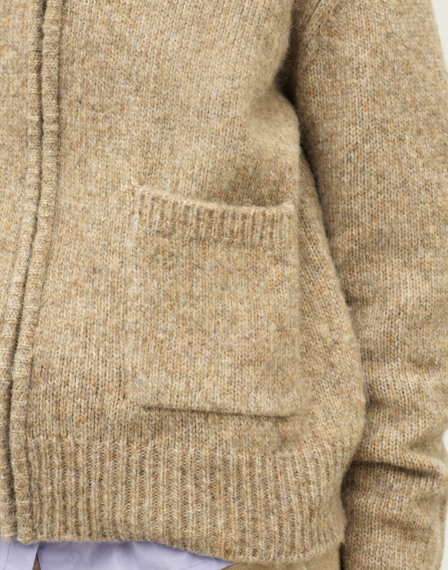 Jersey de punto confeccionado con lana. Cierre frontal de cremallera, bolsillos de plastrón en delantero y terminaciones en canalé.