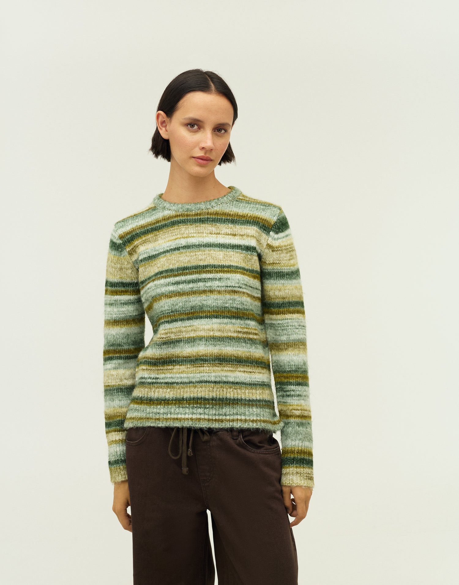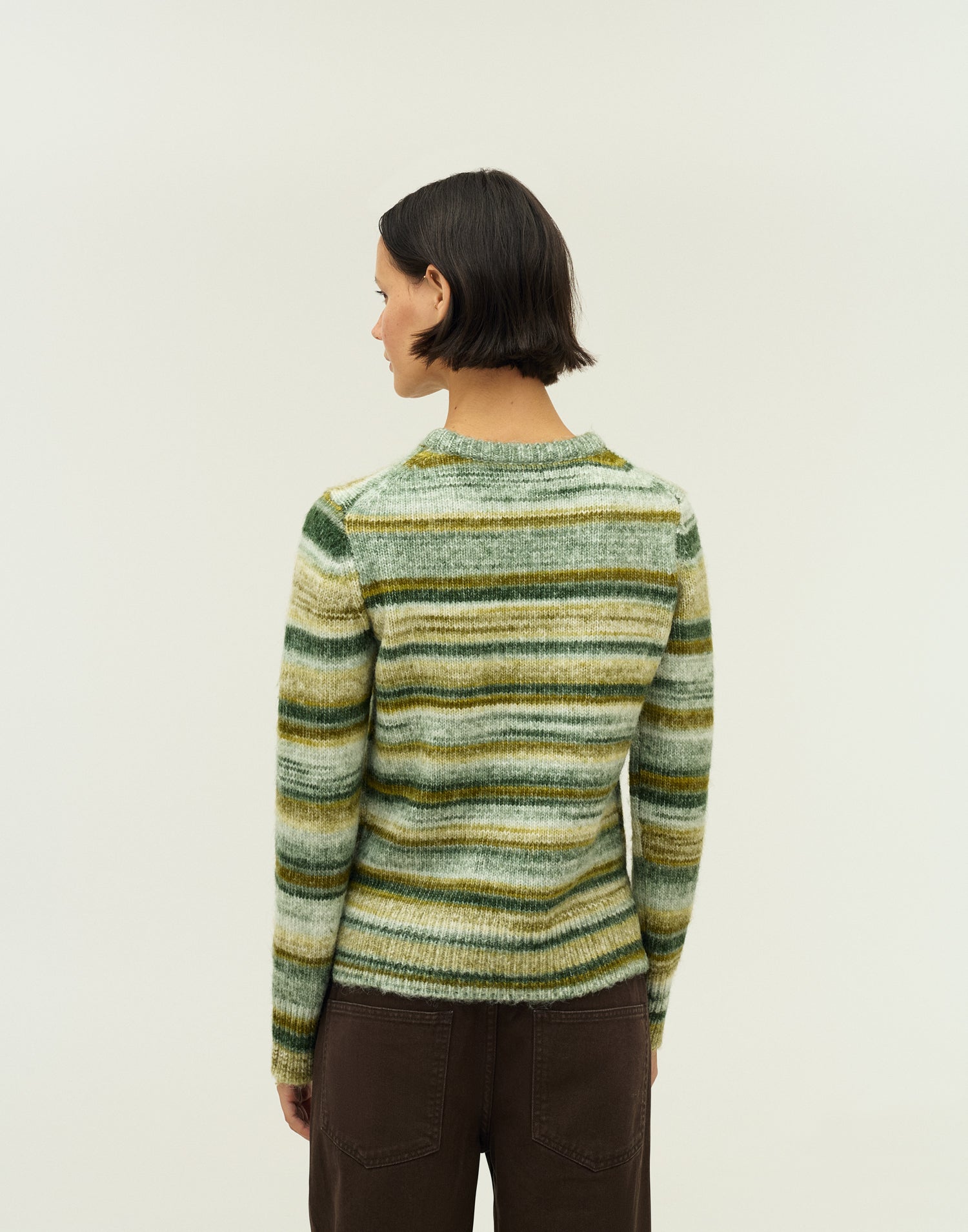 Jersey de punto en mezcla de lana con cuello redondo, manga larga y diseño degradado. Acabados en rib.
