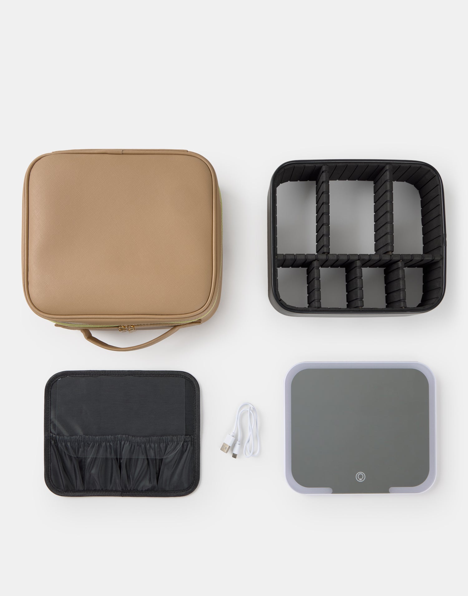 Beauty-Koffer mit integriertem Spiegel und LED-Beleuchtung. Mit herausnehmbaren Trennfächern und einem Pinsel-Organizer mit unterteilten Taschen. Ein unverzichtbares Accessoire, um deine Beauty-Routine auch auf Reisen fortzusetzen.