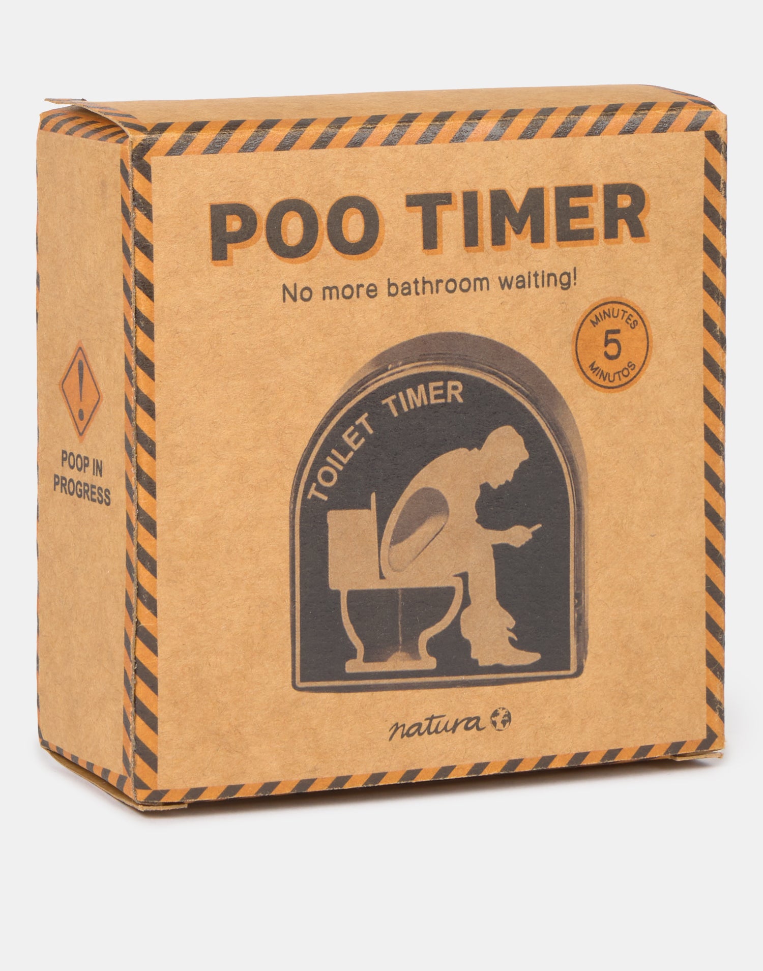 5-Minuten-Timer fürs Bad. Schluss mit dem Warten – behalte die Zeit im Blick, die sie auf der Toilette verbringen, mit dieser lustigen Sanduhr. Zum Neustarten einfach um 360 Grad drehen.