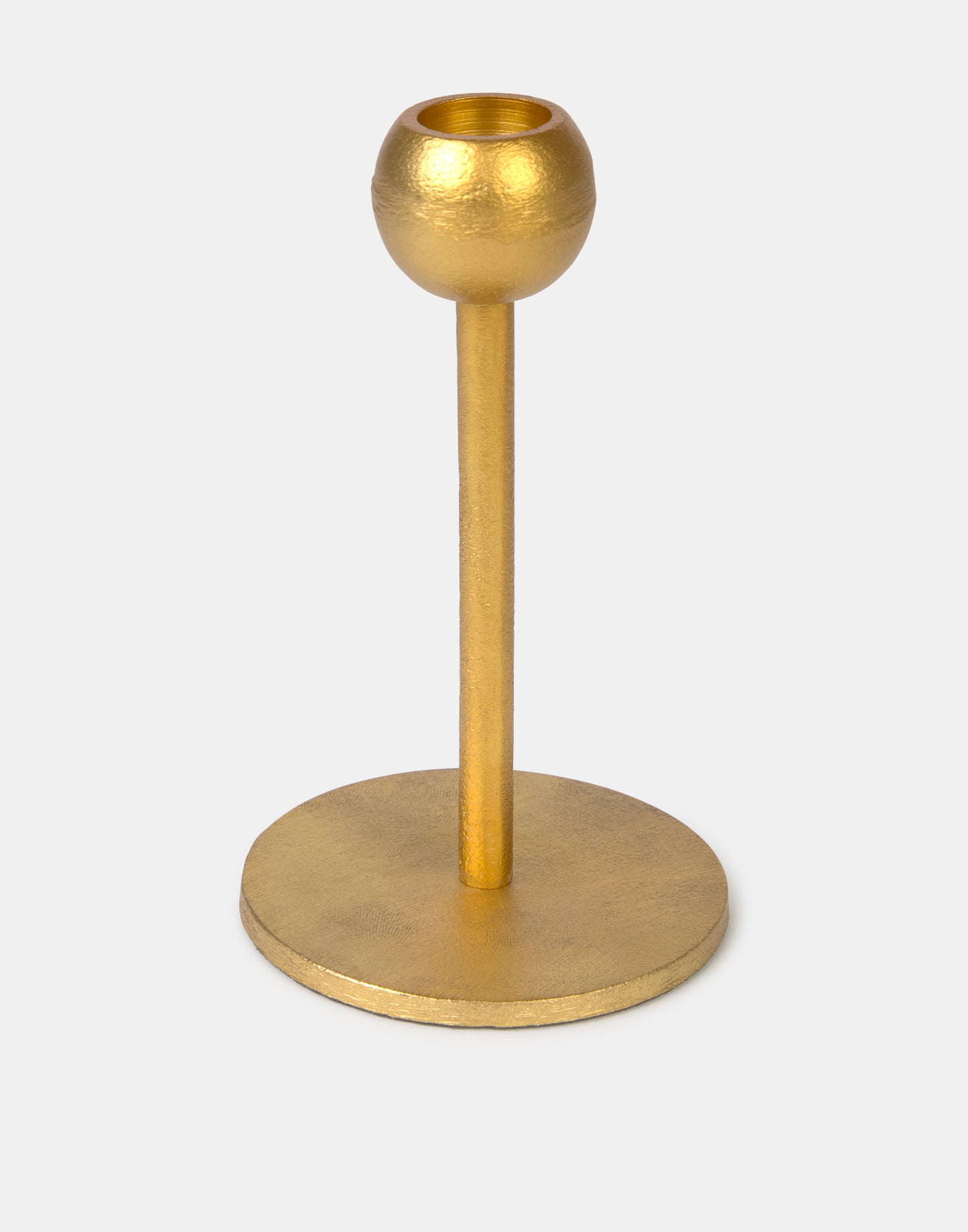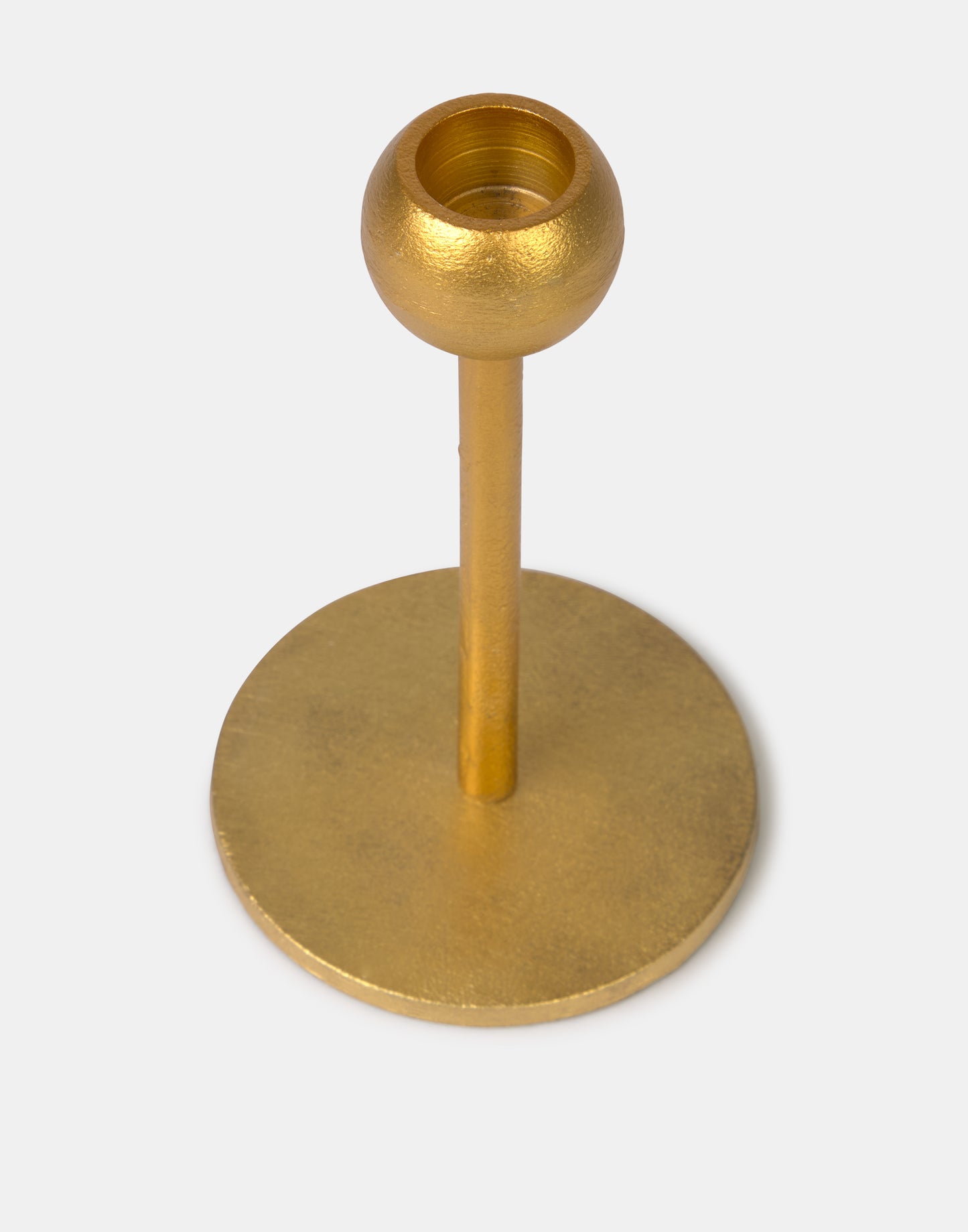 Kerzenhalter, 14 cm, mit goldener Oberfläche und abgerundeter Basis.