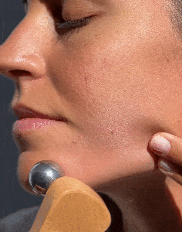 Holzrolle für Gesichtsmassage mit zwei Edelstahlkugeln. Es fördert die Durchblutung und die lymphatische Entwässerung, passt sich den natürlichen Konturen des Gesichts an, um sein Aussehen zu verbessern, zu massieren und zu verjüngen.