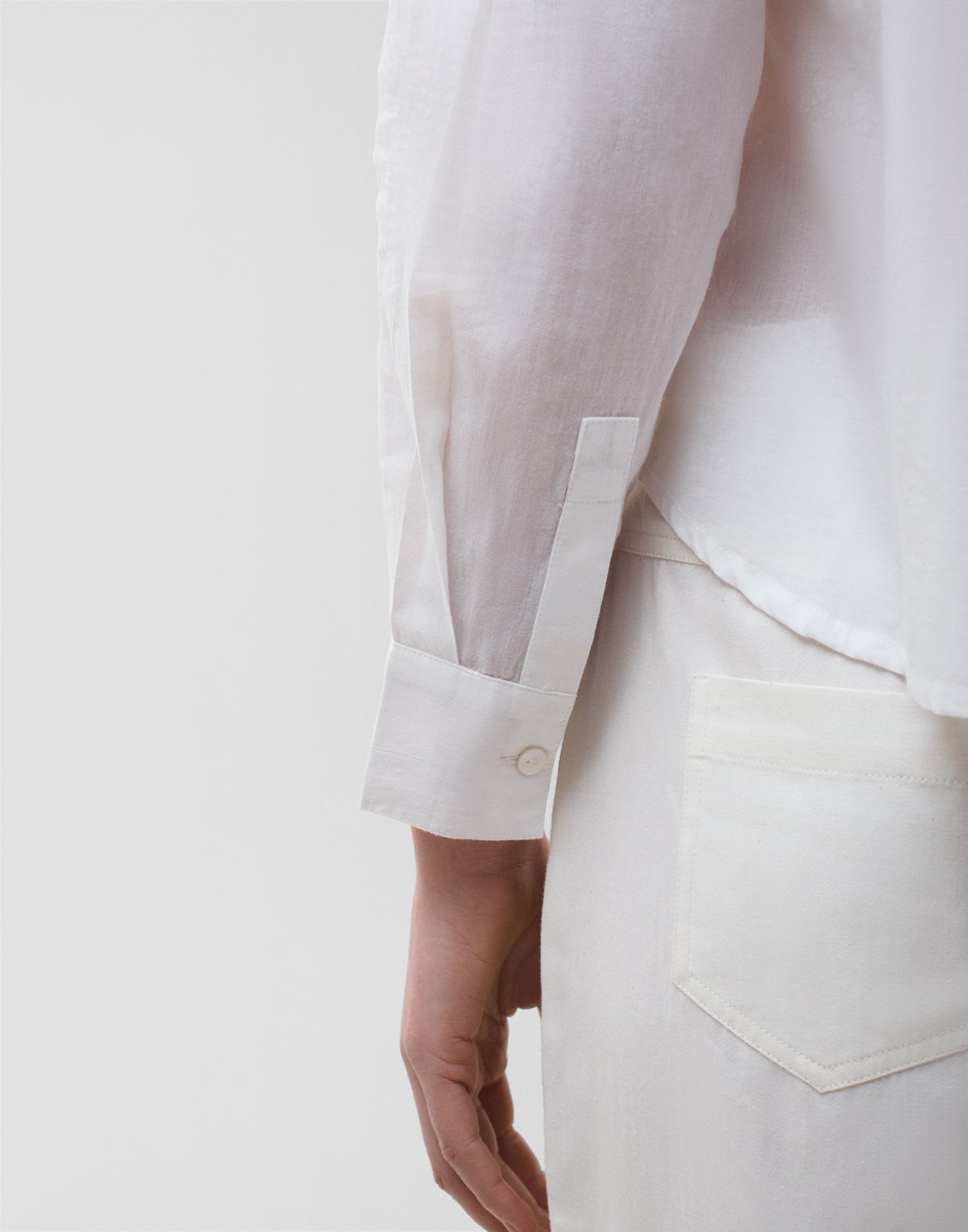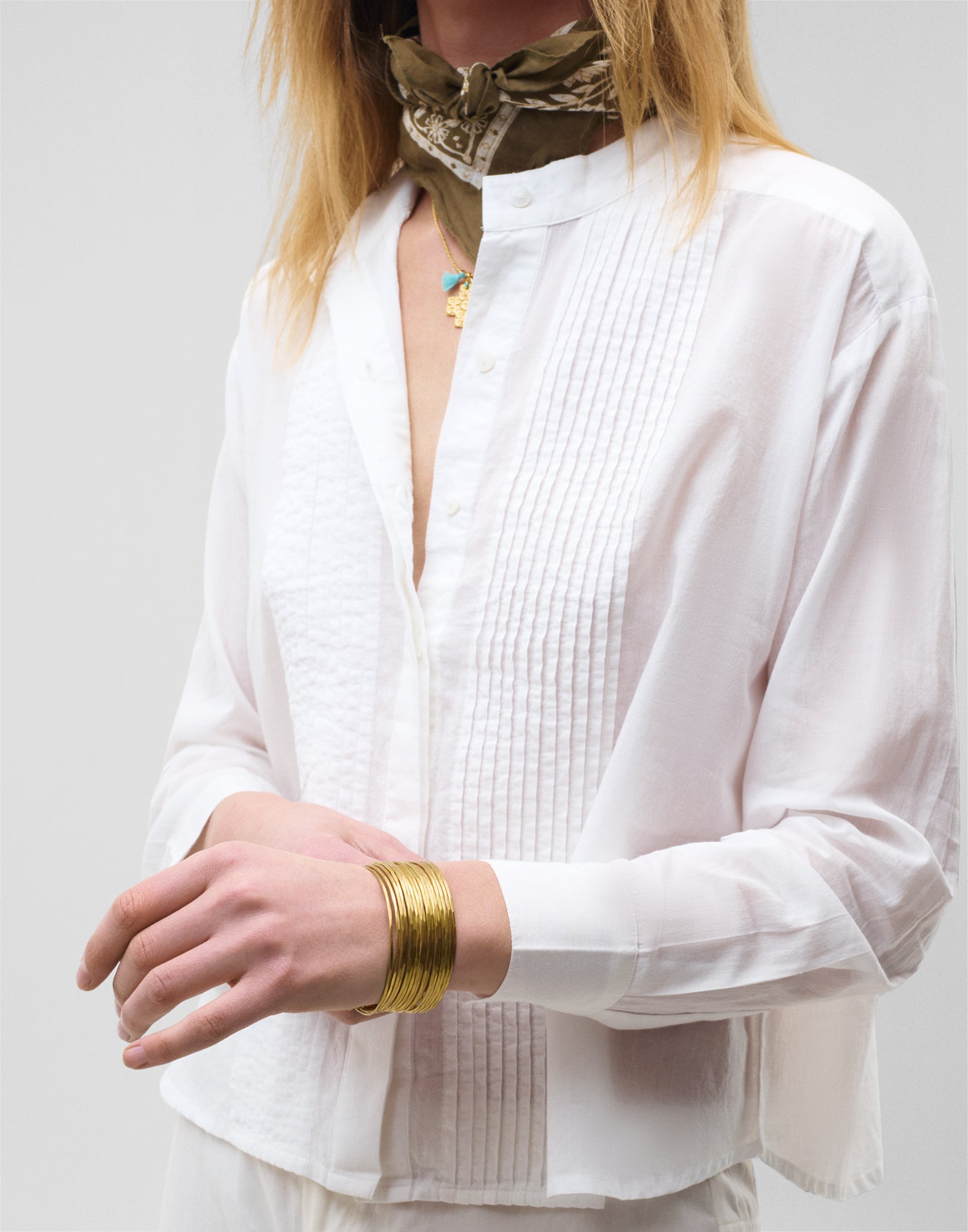 Langärmliges Hemd mit Rundhalsausschnitt und Knopfleiste vorne. Faltendetail auf der Vorderseite.