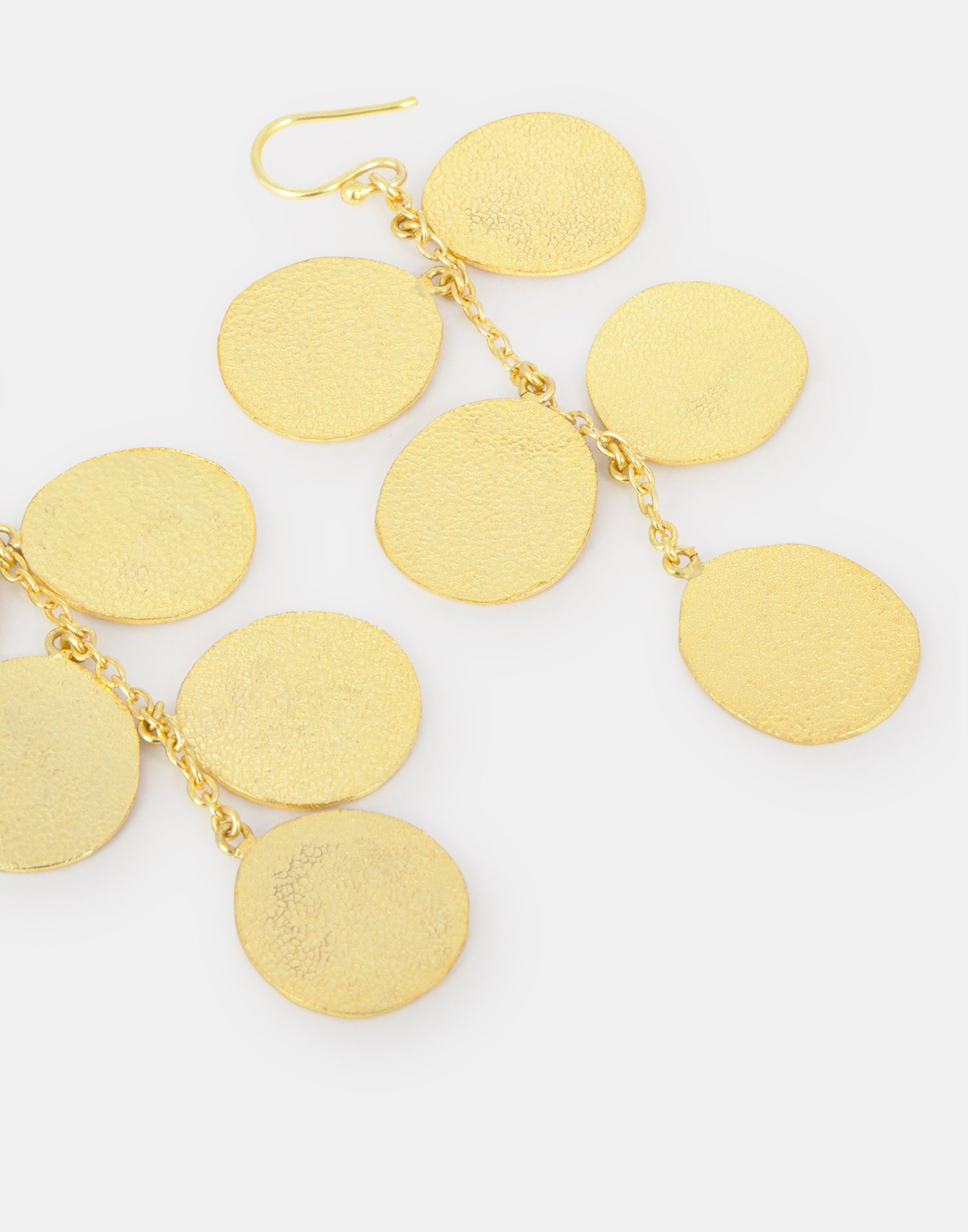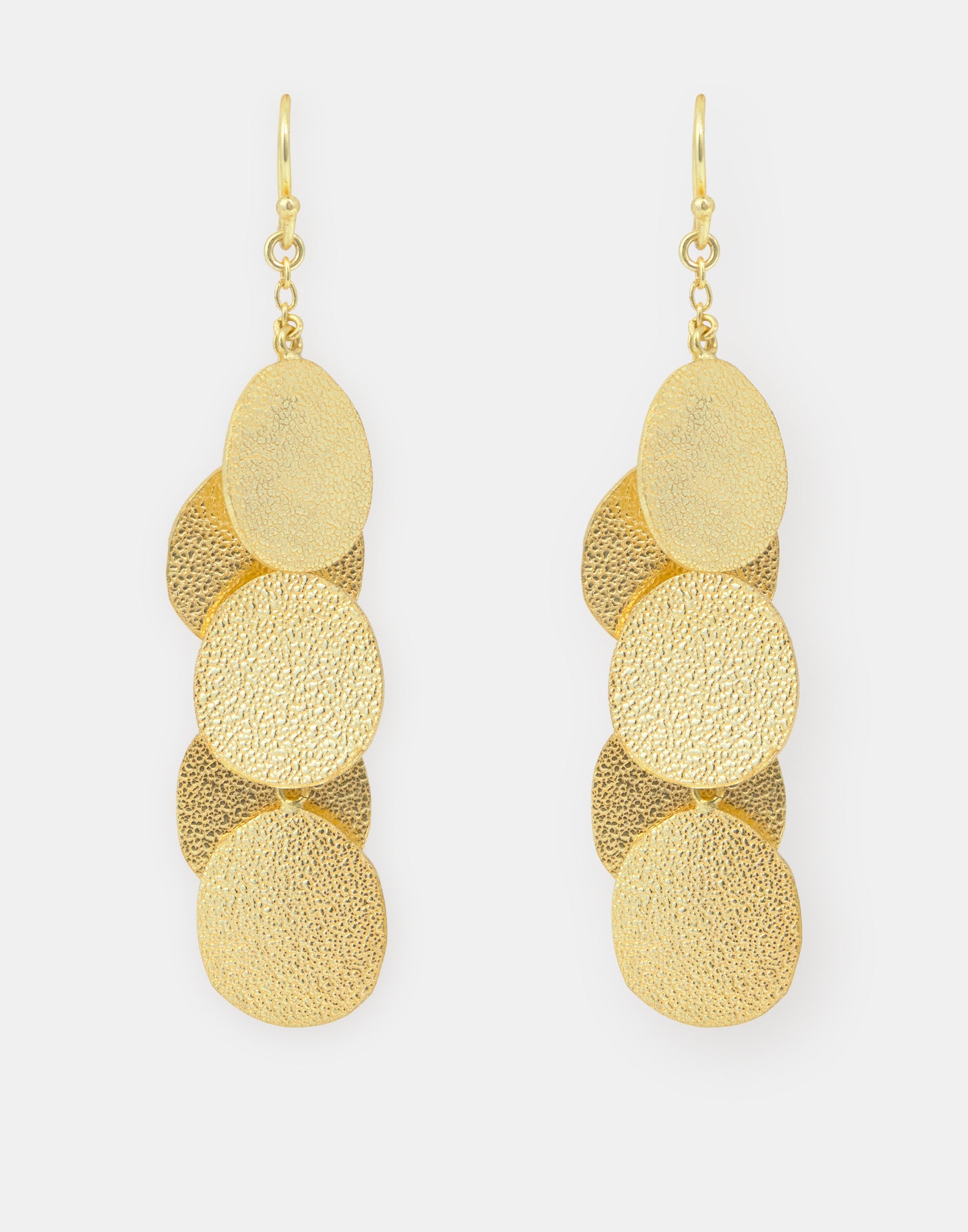 Lange hängende Ohrringe mit Medaillons aus 3 % Gold. Verschluss in Hakenform.