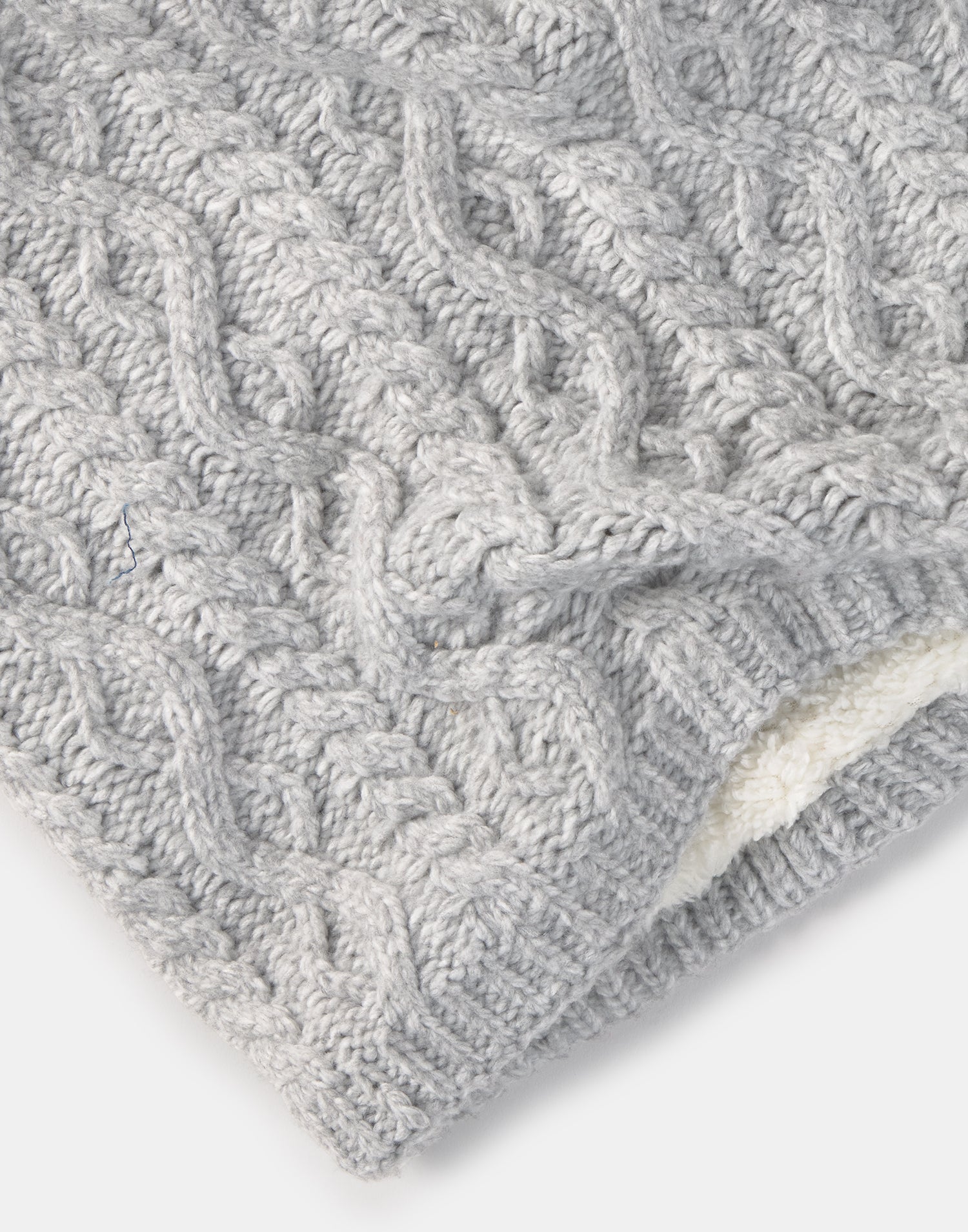 Schal in Schlauchform aus Strickgewebe mit weichem Fleecefutter innen.