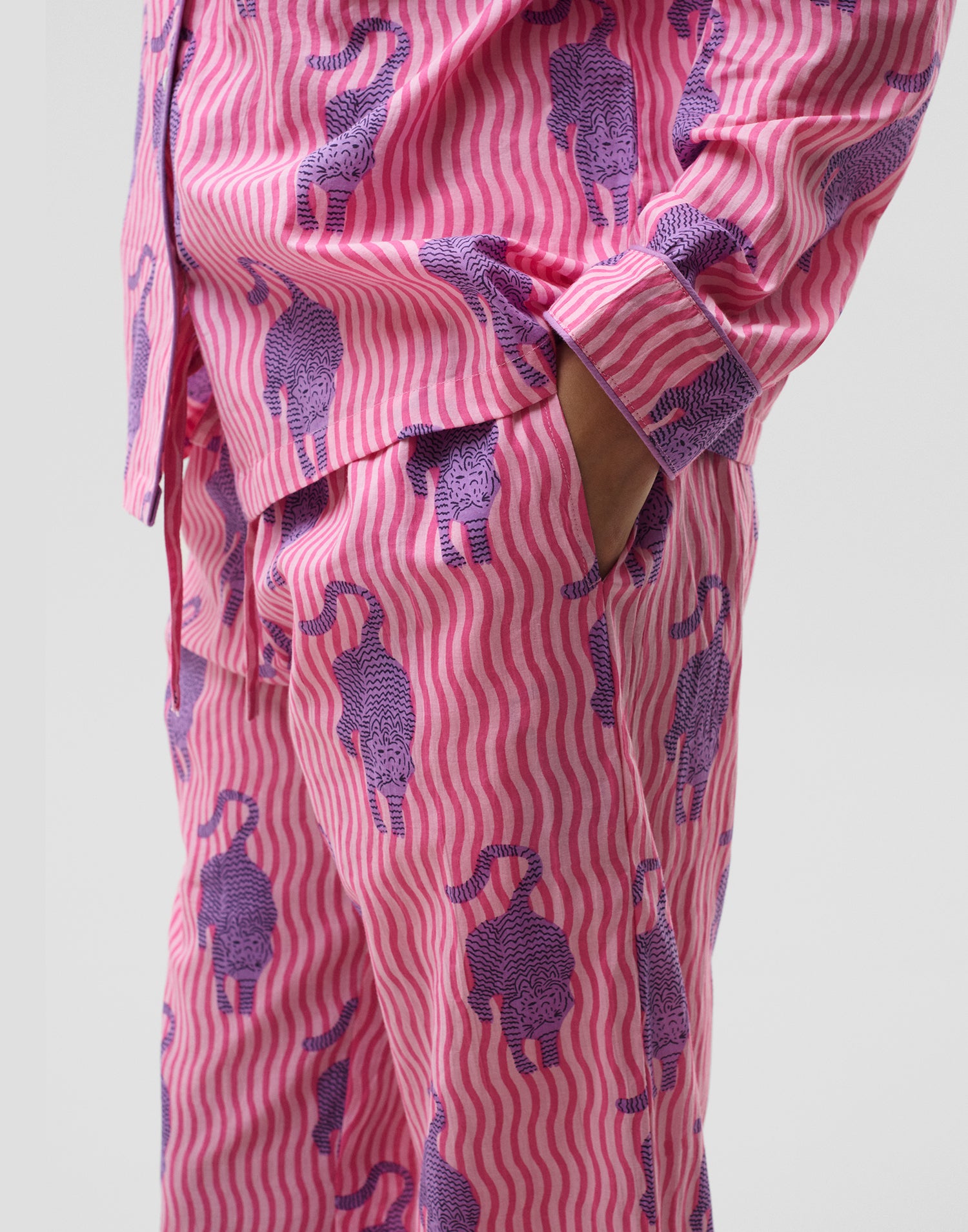 Pyjama-Set aus Baumwolle, bestehend aus zwei Teilen: einem langärmeligen Hemd und einer langen Hose.