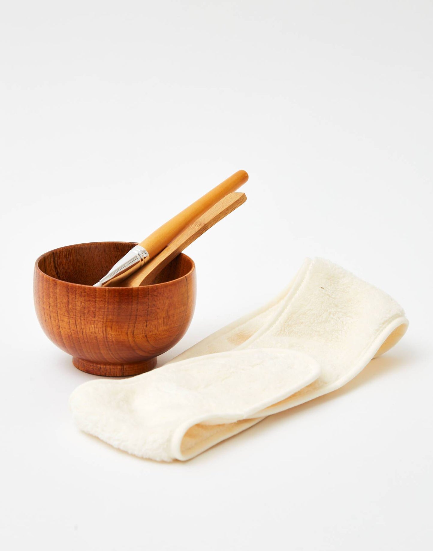 Gesichtspflege Kit zum Erstellen Ihrer eigenen hausgemachten Cremes und Masken für das Gesicht. Beinhaltet 1 Holzschale, 1 Bambusbürste mit Nylonborsten, 1 Bambuslöffel und 1 Haarband. Machen Sie Ihre Mischungen aus natürlichen Masken und genießen Sie einen Moment der Entspannung.