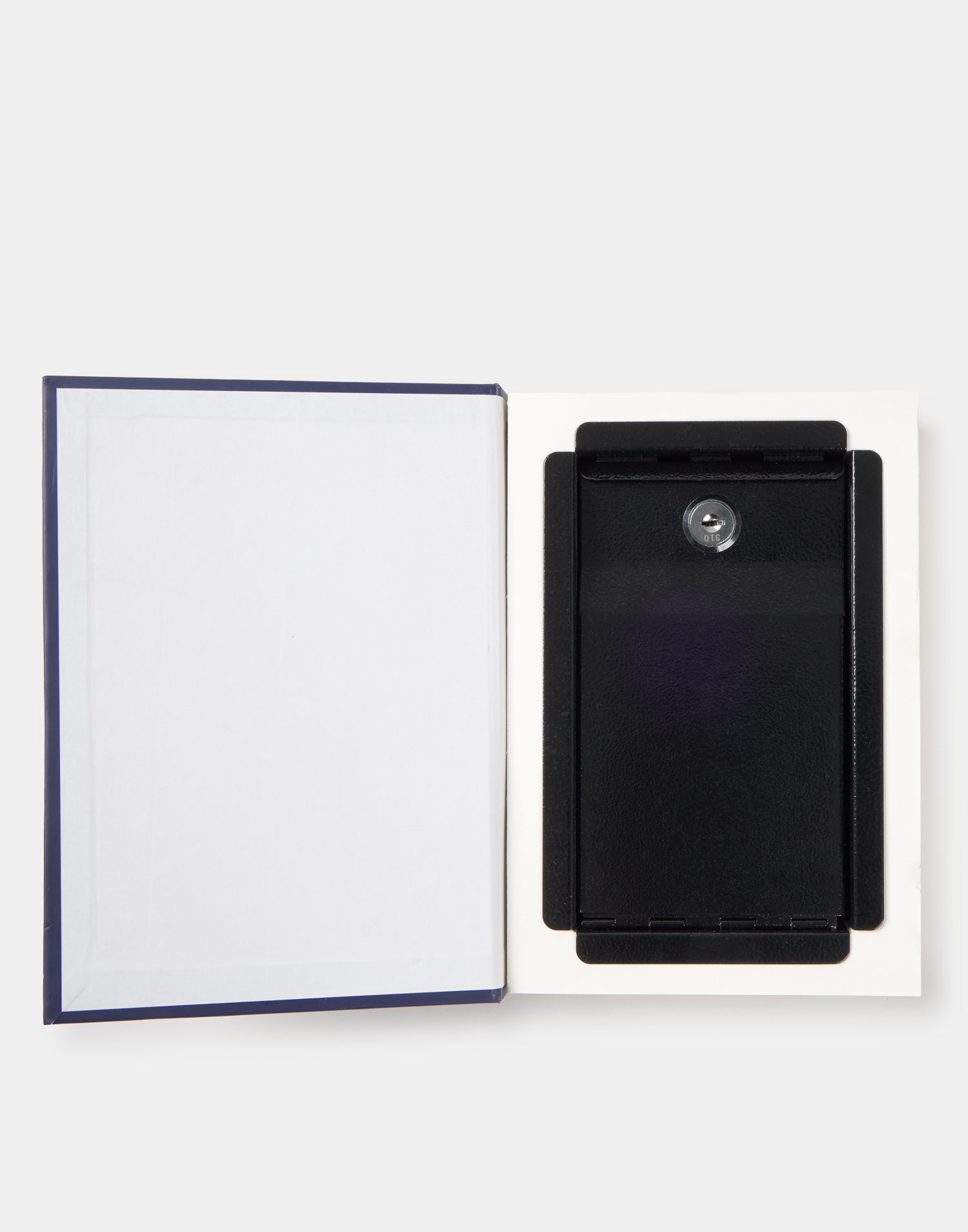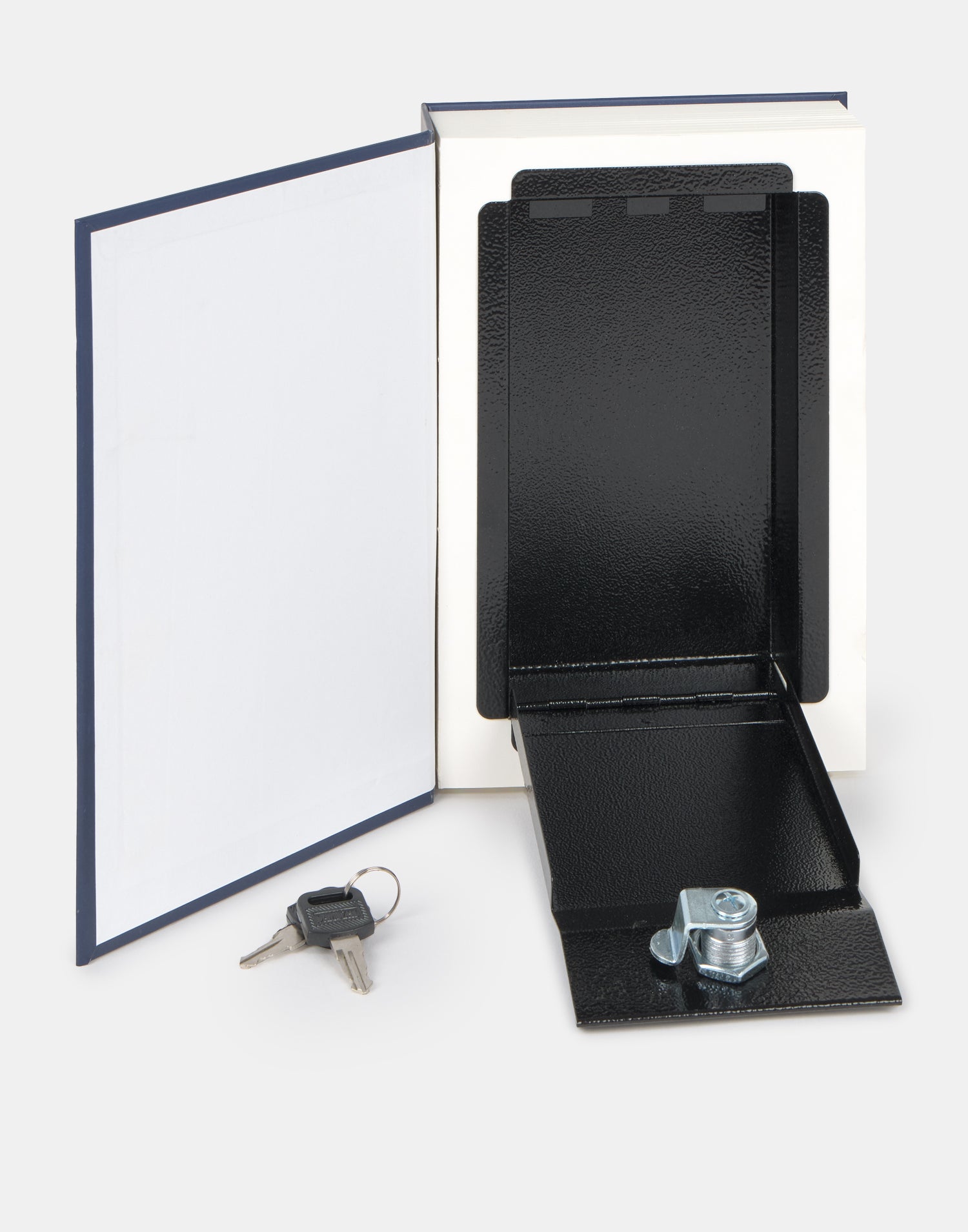 Portable security box with book design, ideal for hiding jewelry, cash, and other valuables. Key lock.