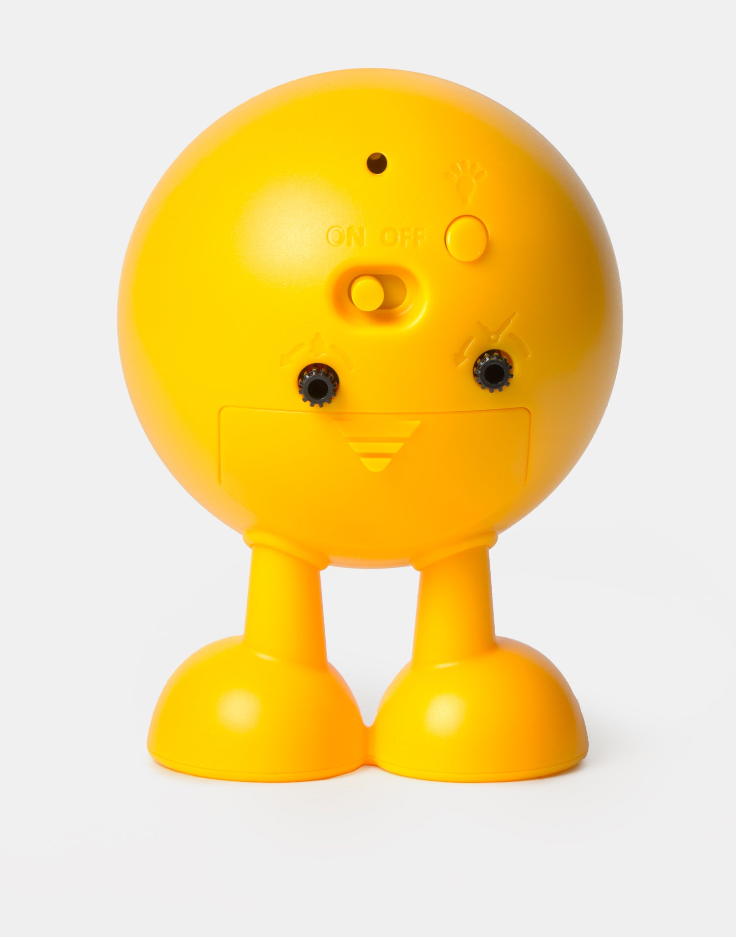 Analog desktop alarm clock. Its fun design adds joy and a touch of color to your room. With alarm and backlight functions. Works with 1 AA battery (not included)