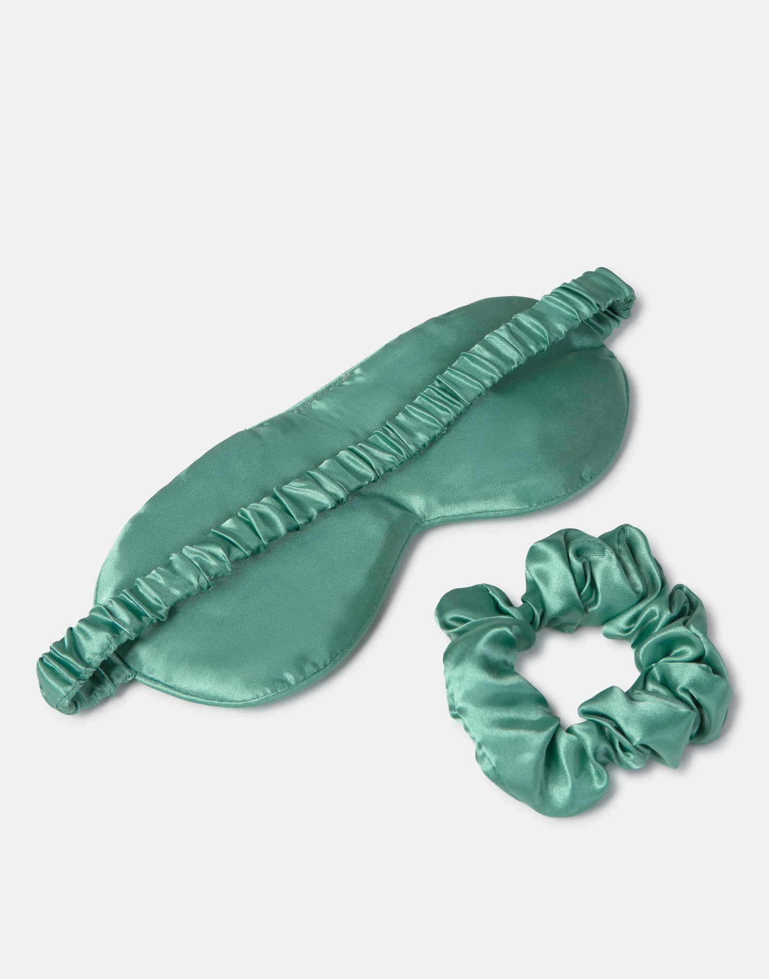 Set of eye mask and hair tie made of silky fabric.