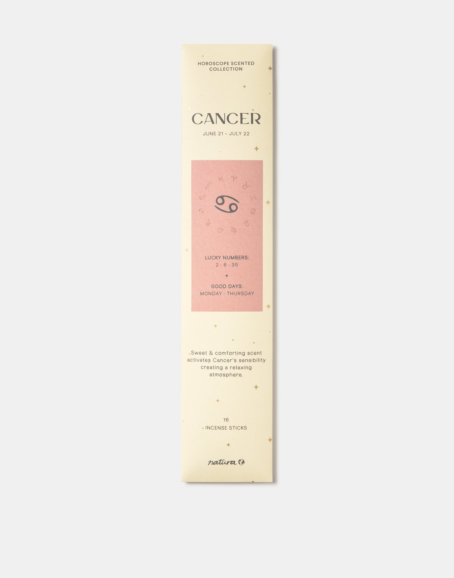 Set of 16 zodiac incense sticks. For best results, light the tip of the stick until it glows. Once the tip is glowing, blow out the flame and place it in a suitable holder to burn slowly.