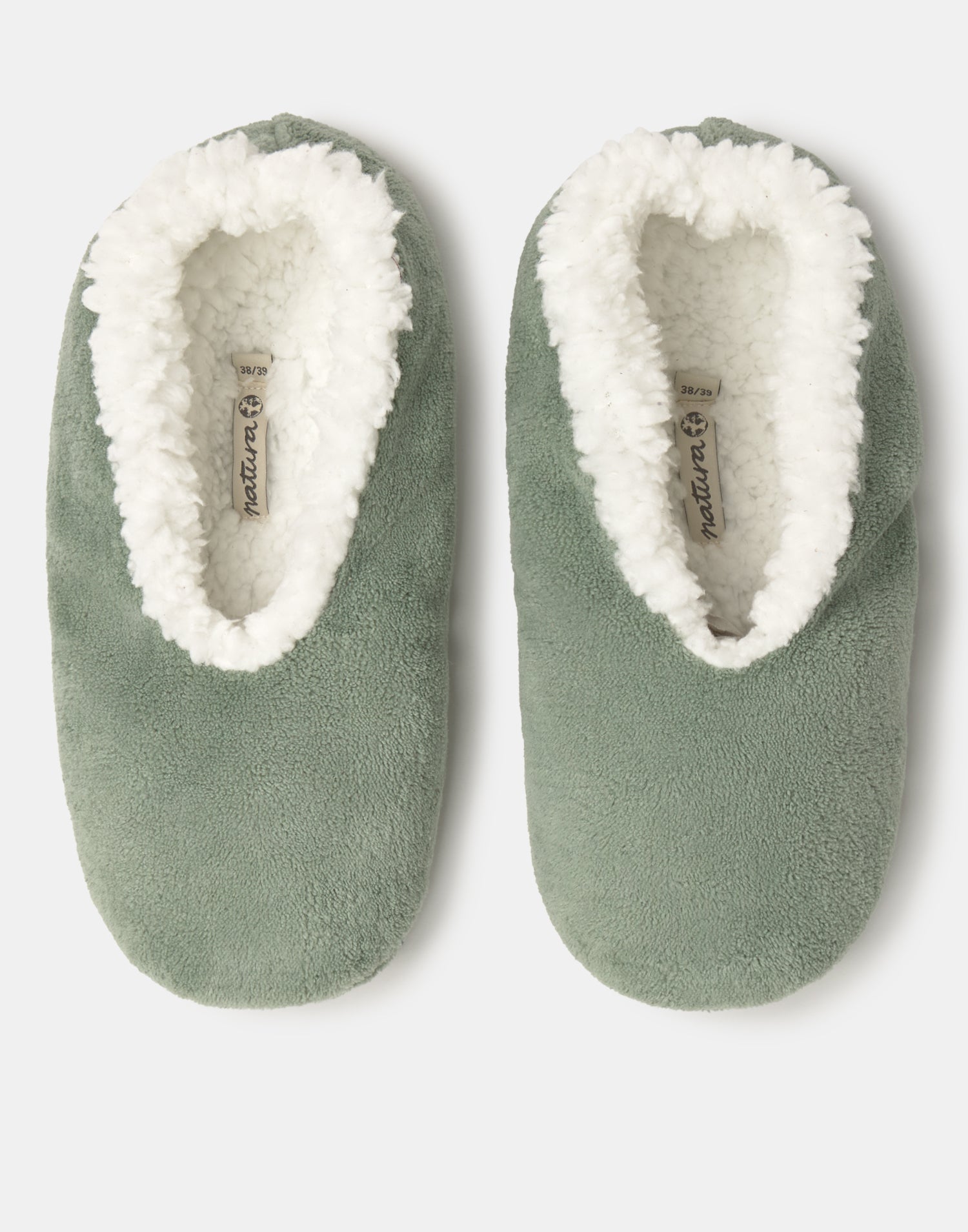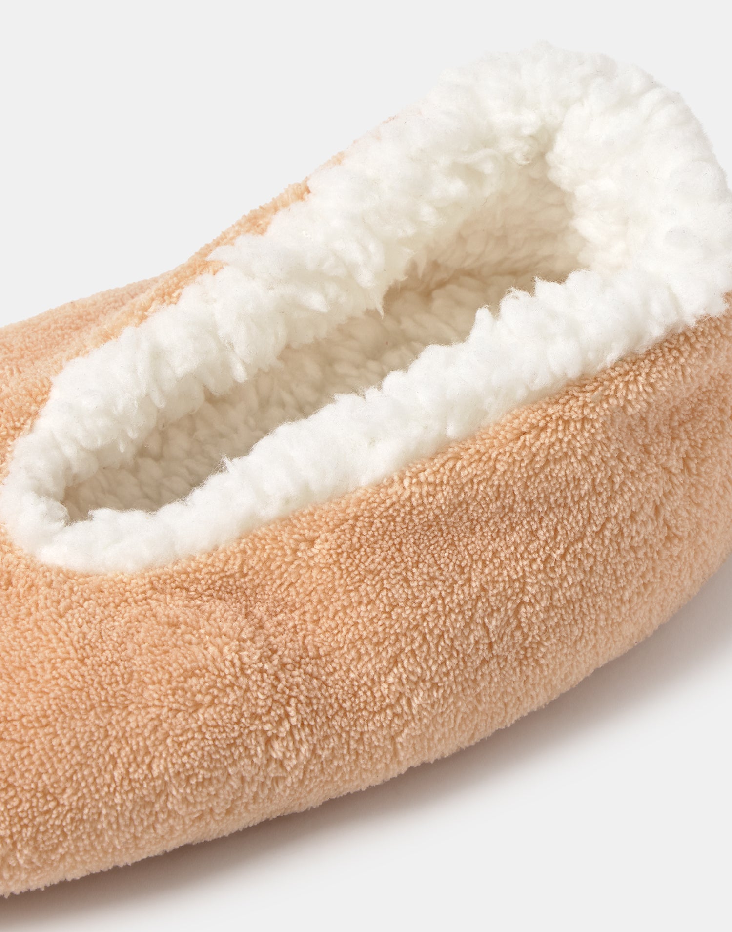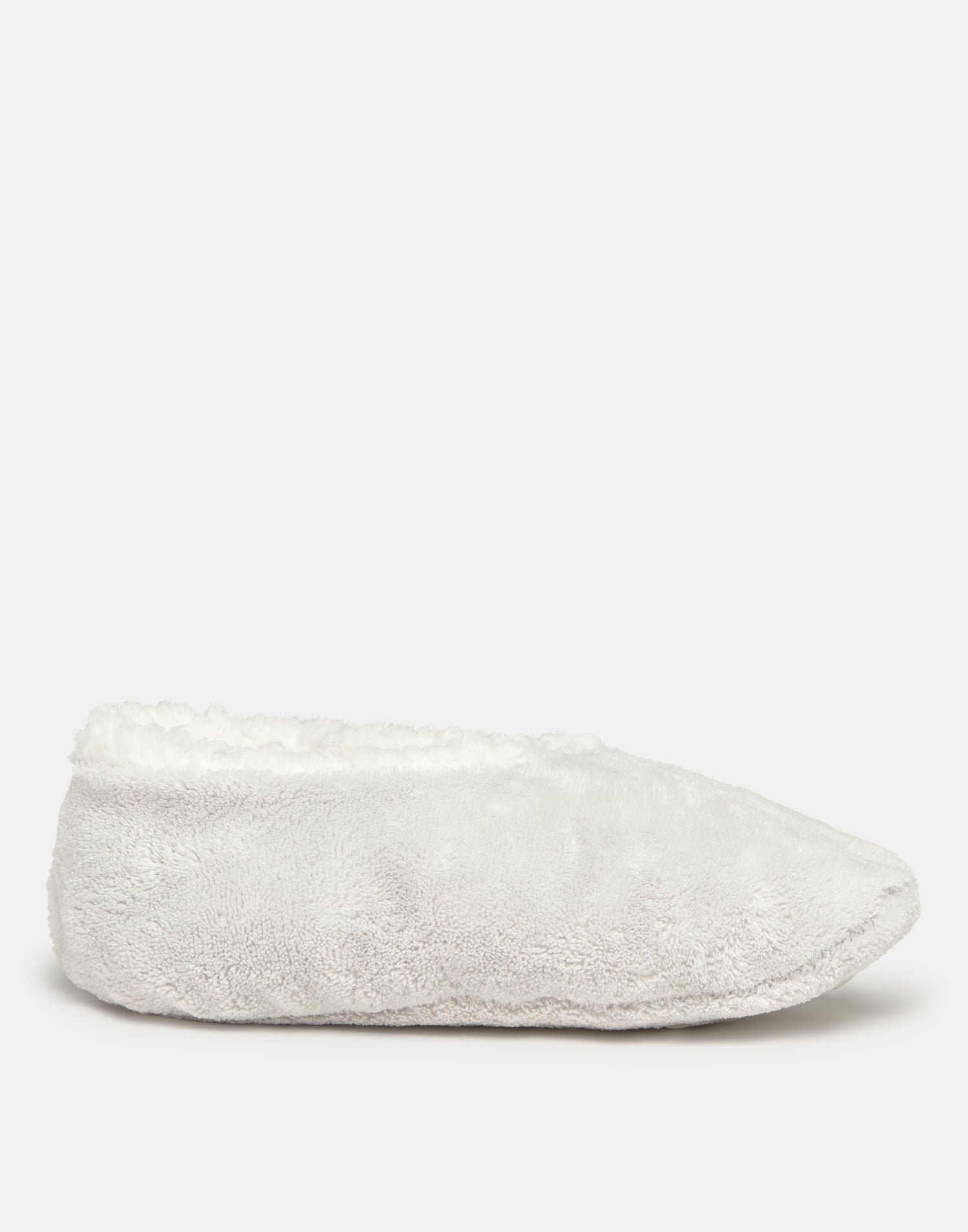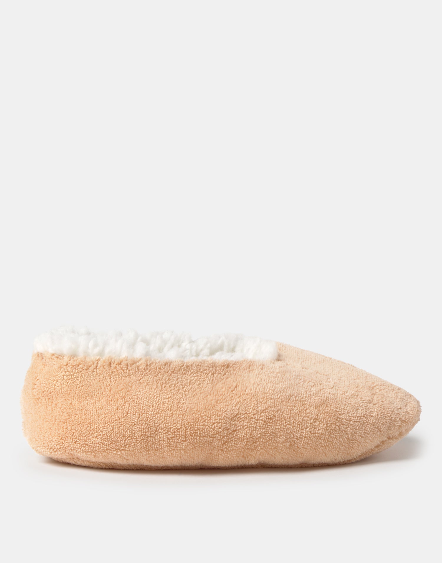 Women’s home slipper with closed design, soft fabric and shearling-style lining.
