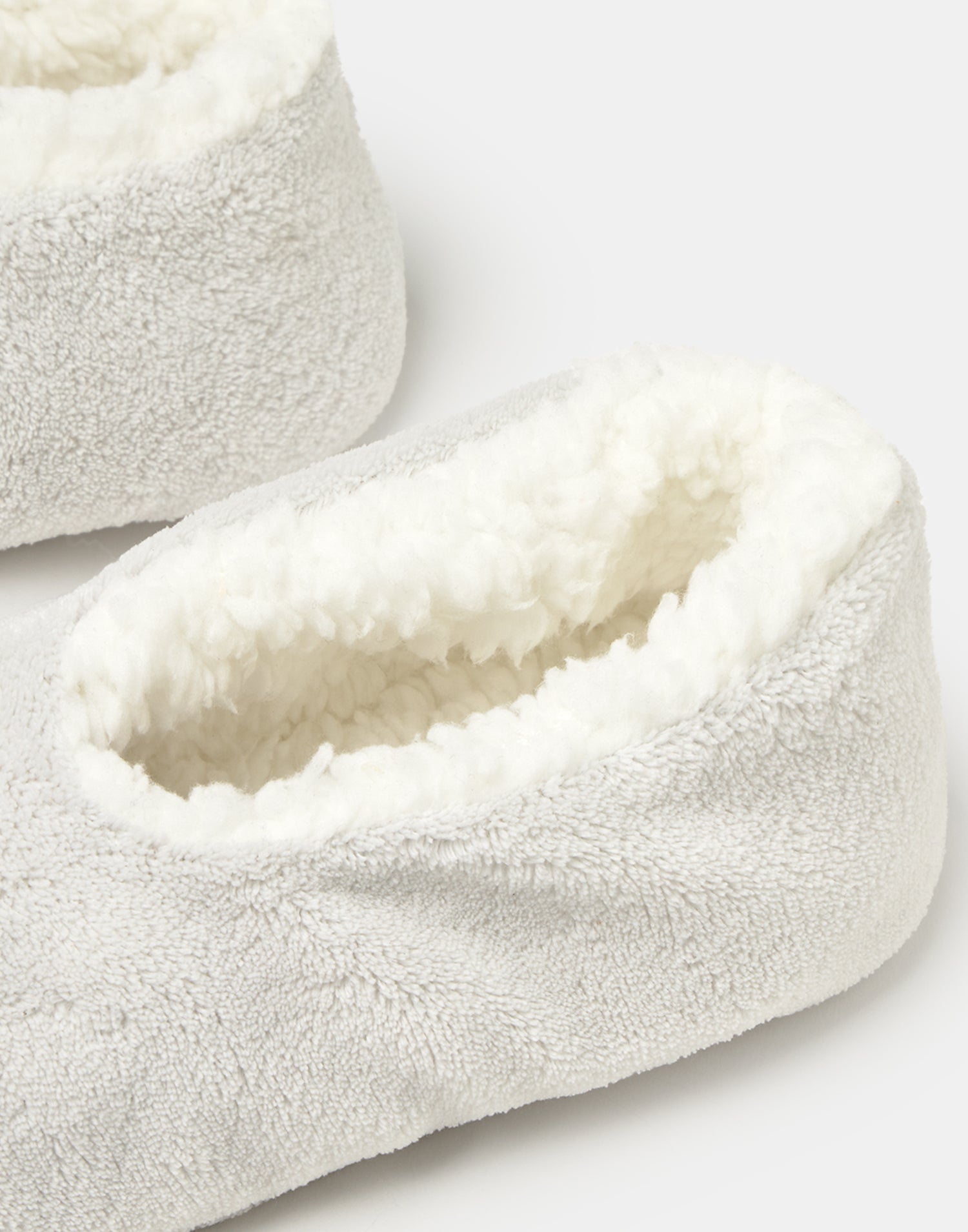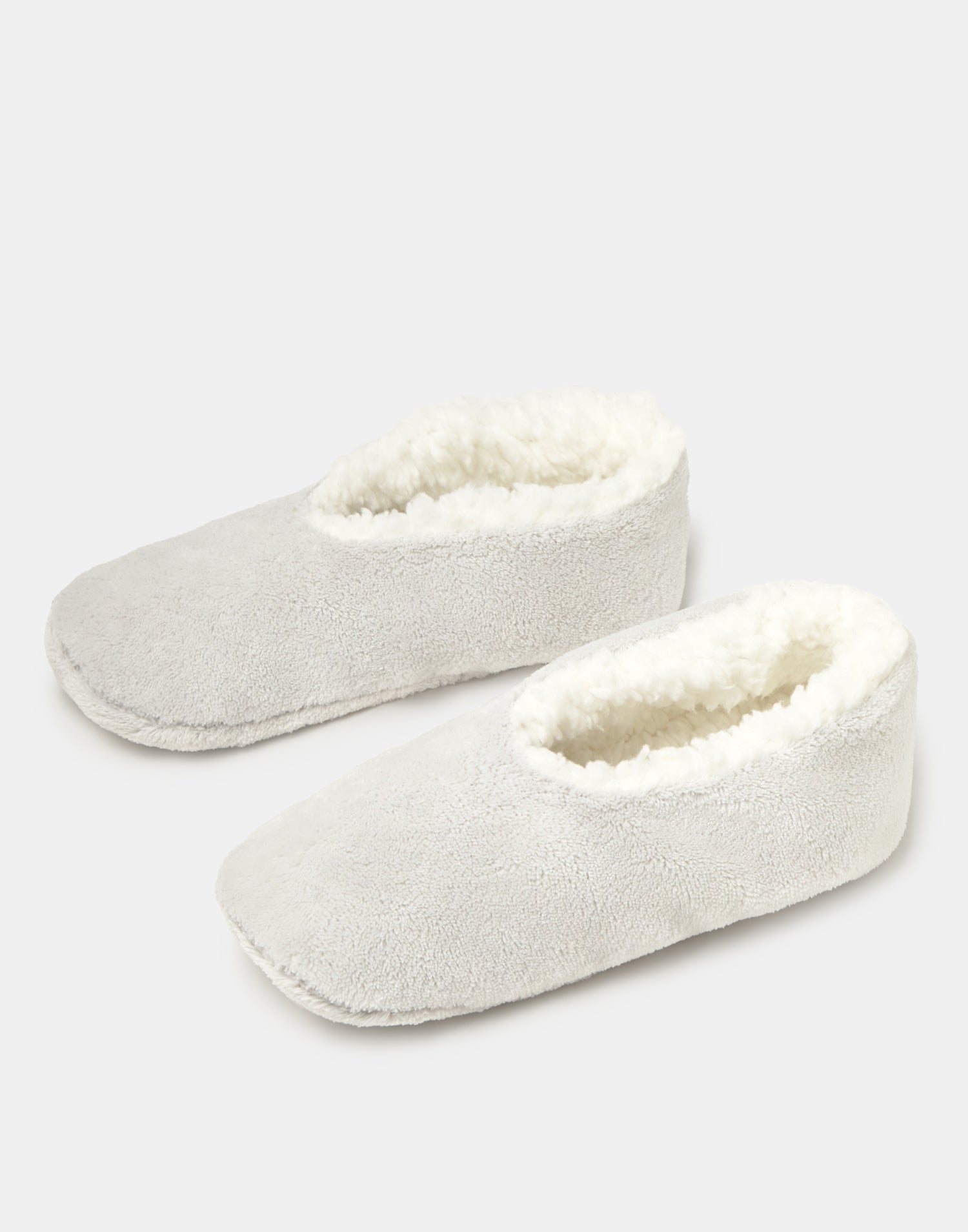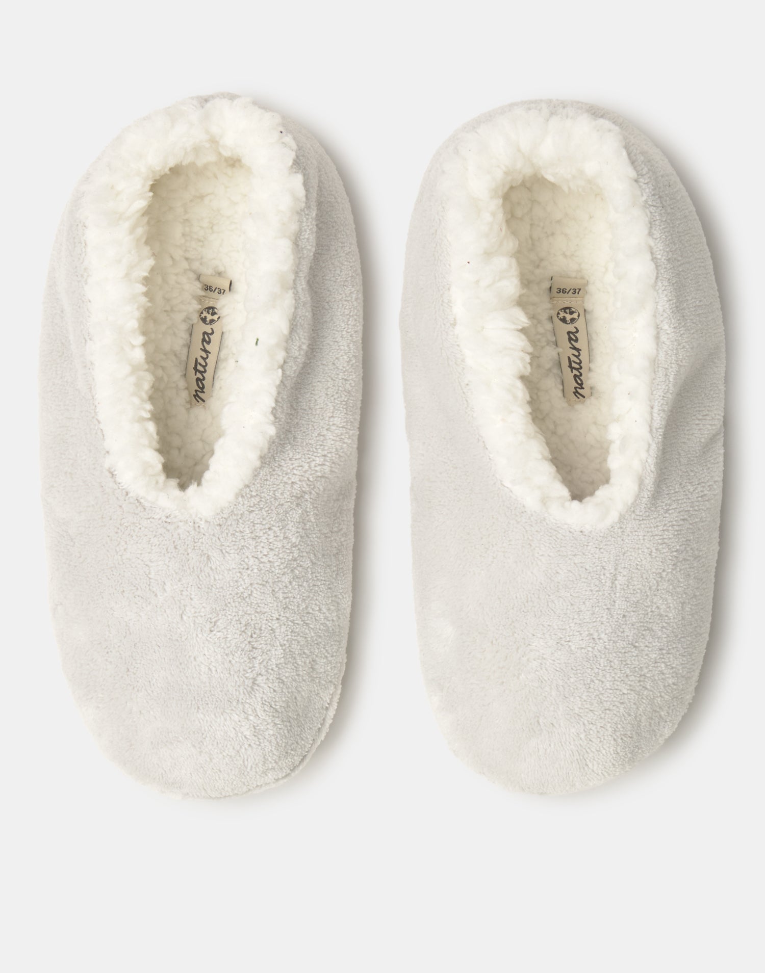 Women’s home slipper with closed design, soft fabric and shearling-style lining.