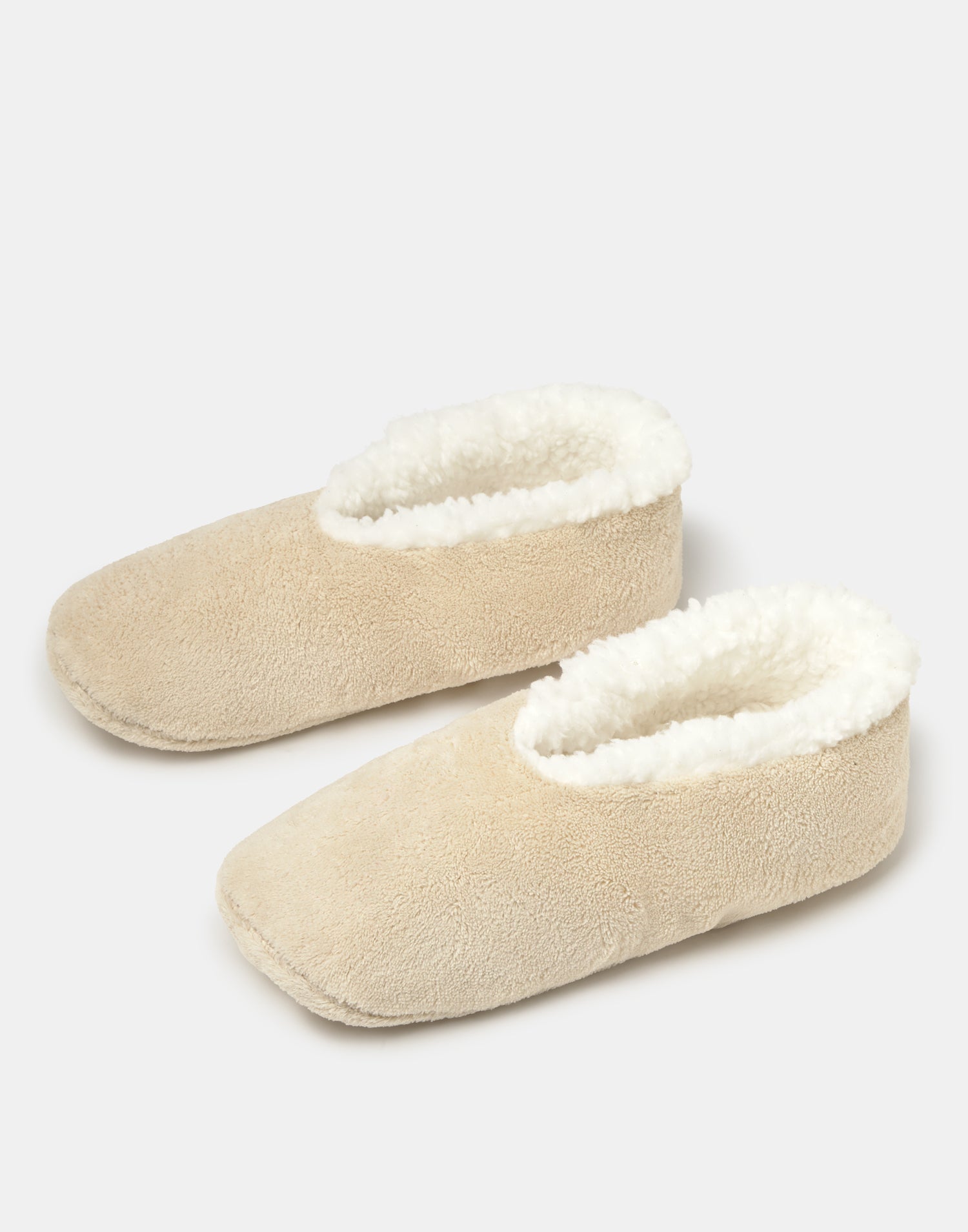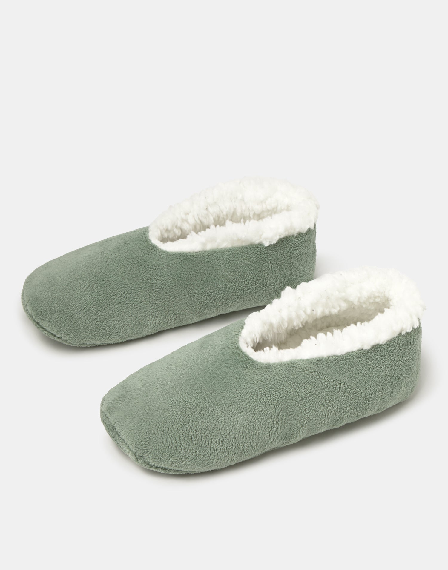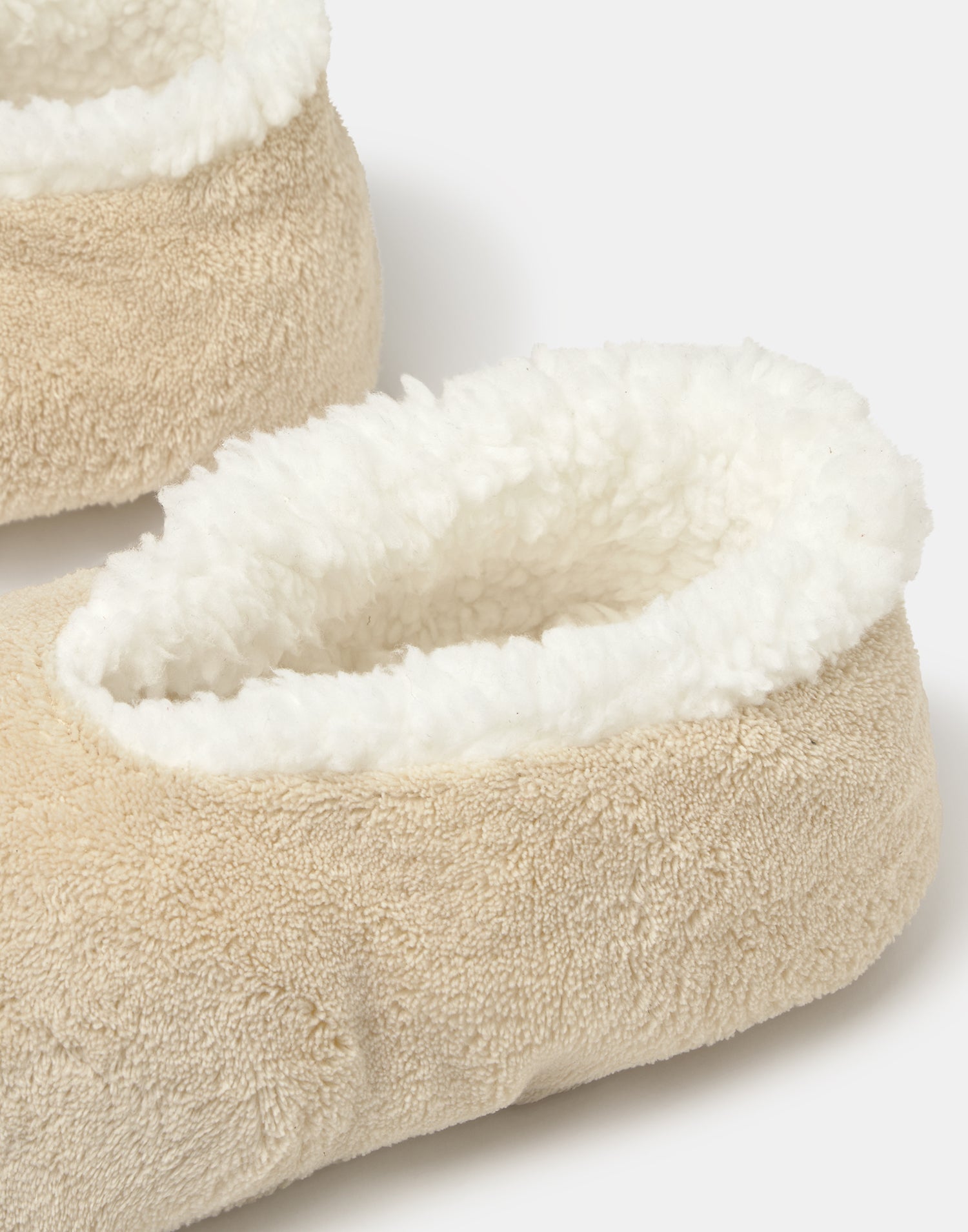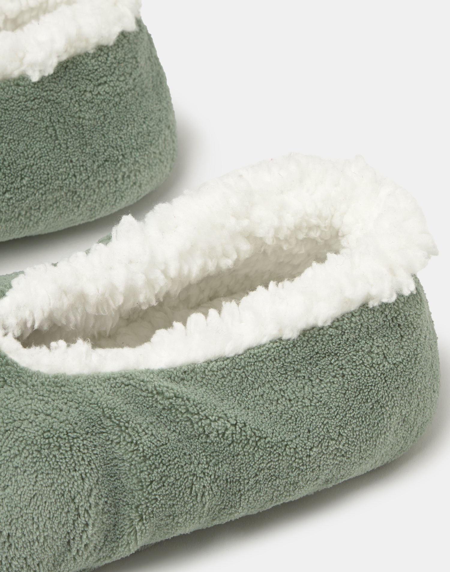 Women’s home slipper with closed design, soft fabric and shearling-style lining.