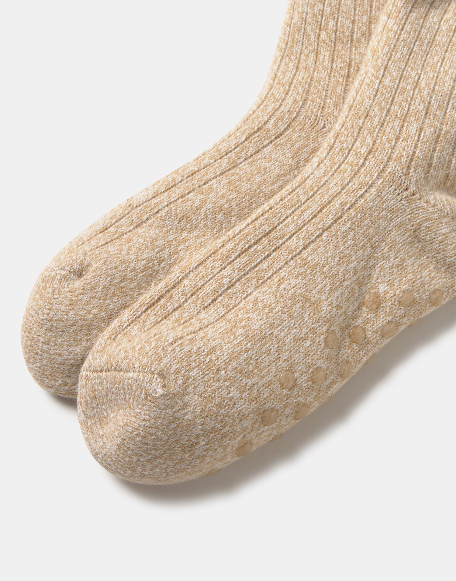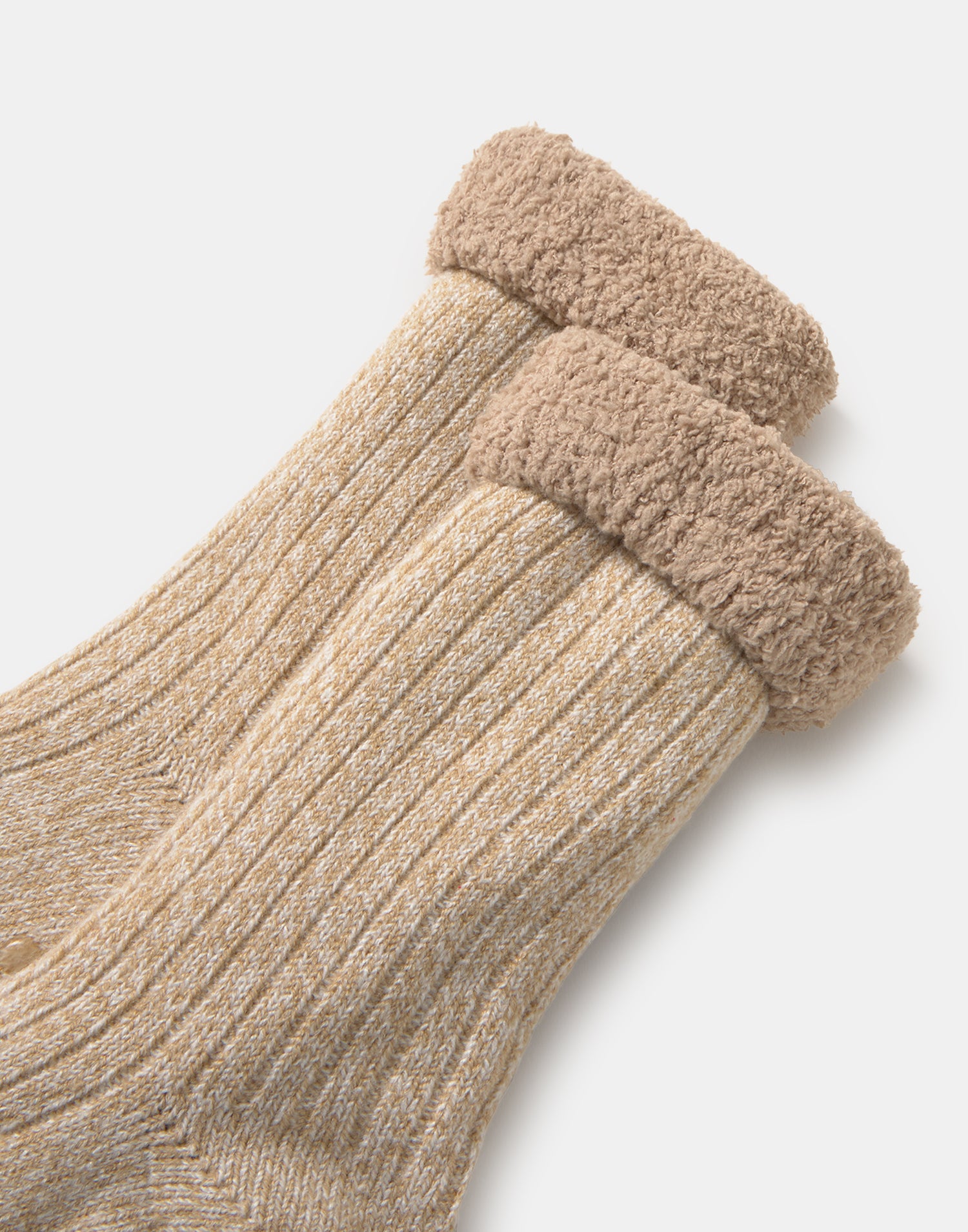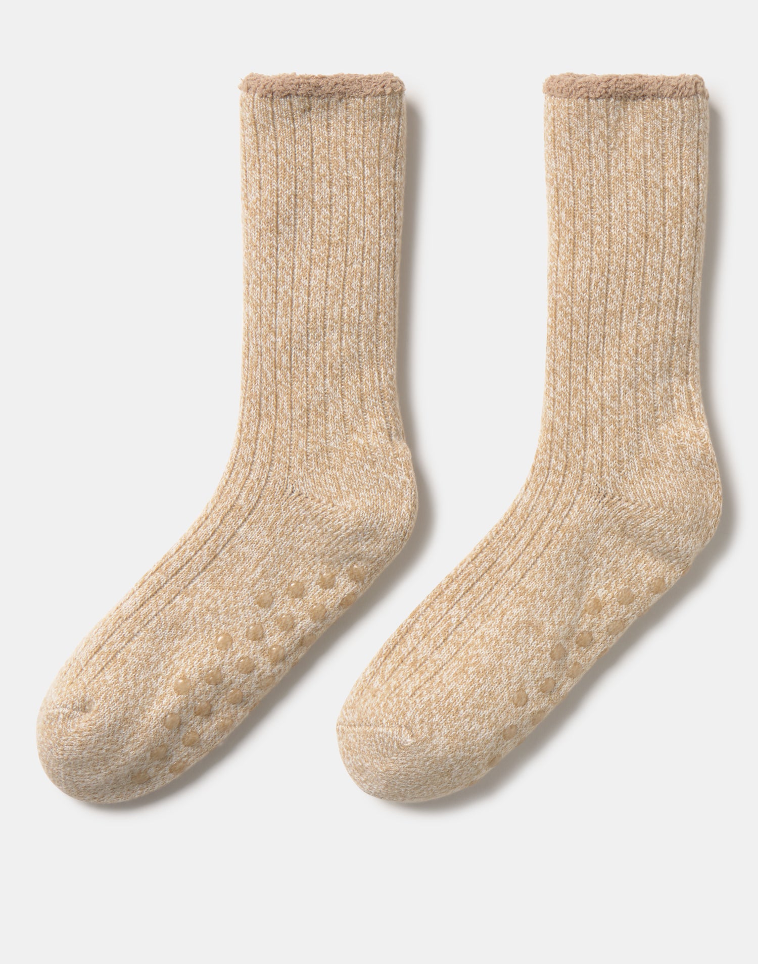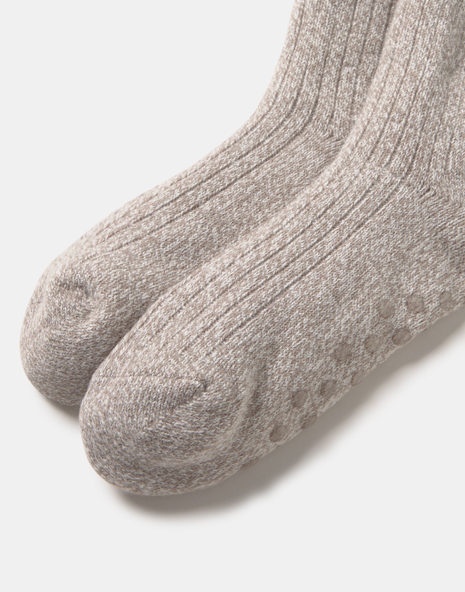 Calcetín de punto de canalé con interior calentito y topos antideslizantes en la suela.