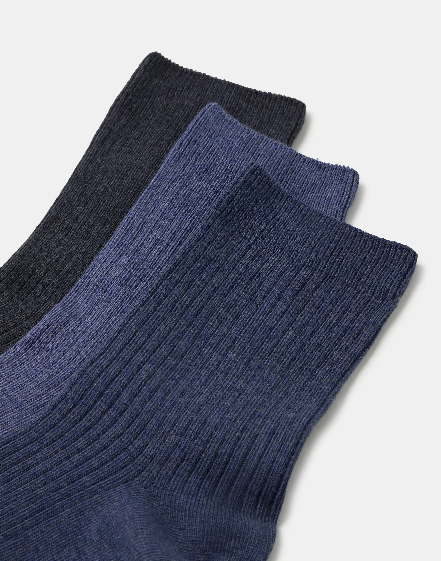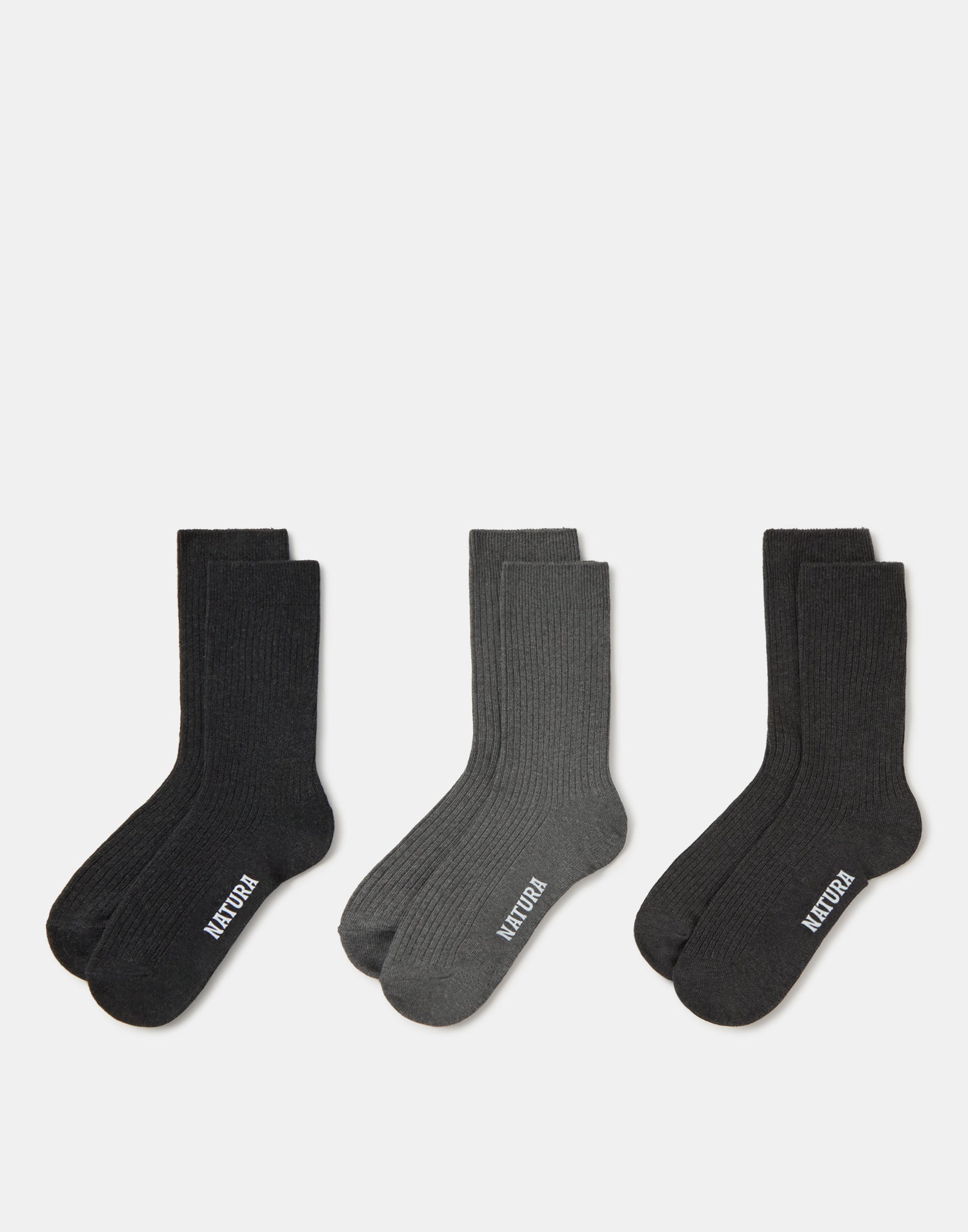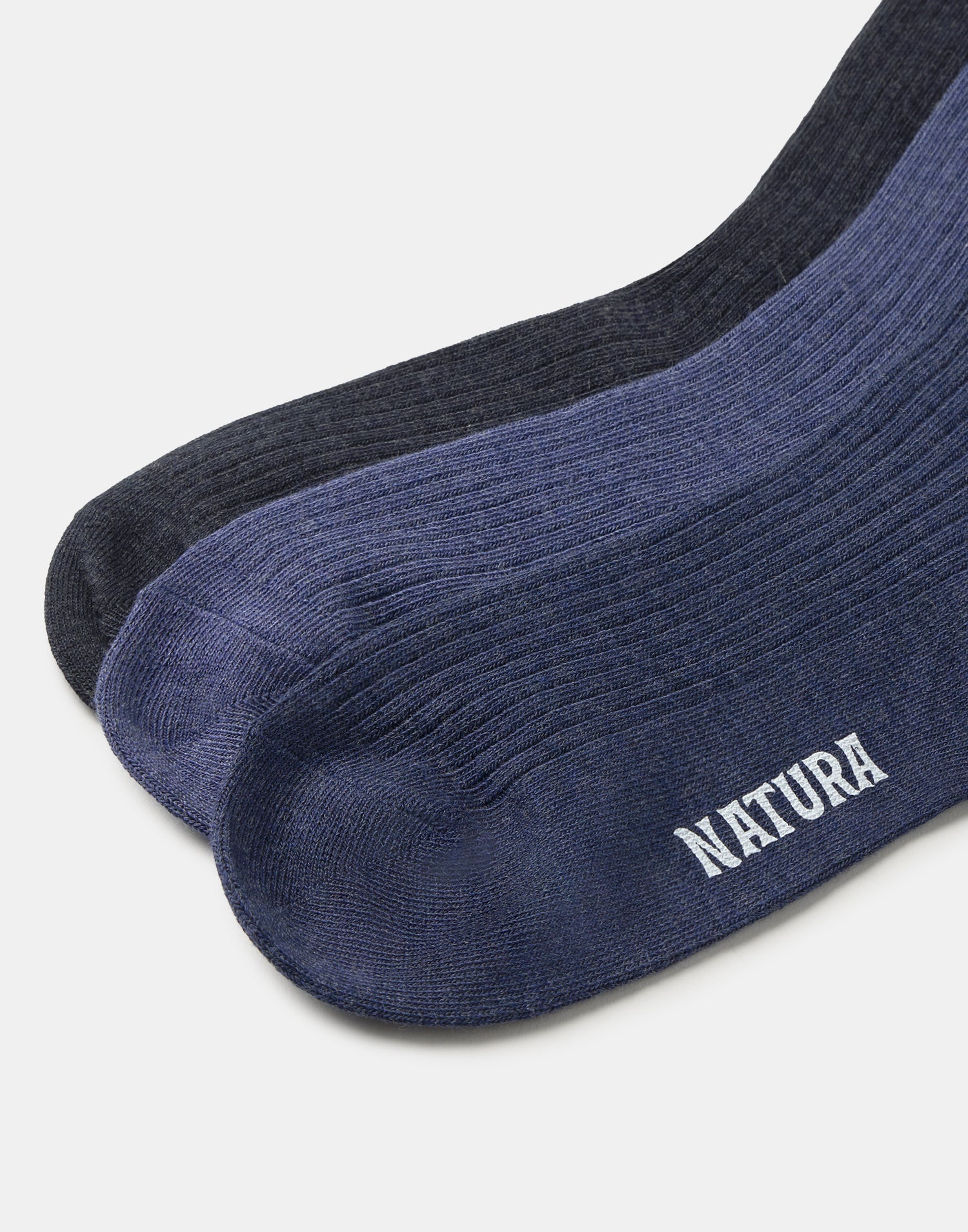 Pack de 3 pares de calcetines altos de canalé confeccionados en mezcla de algodón.