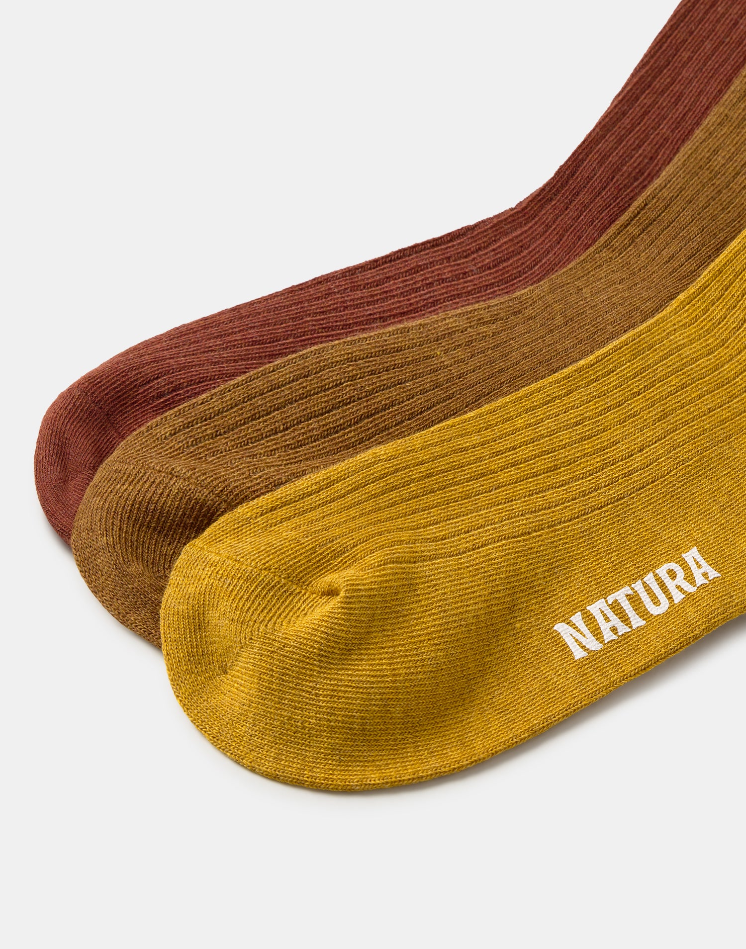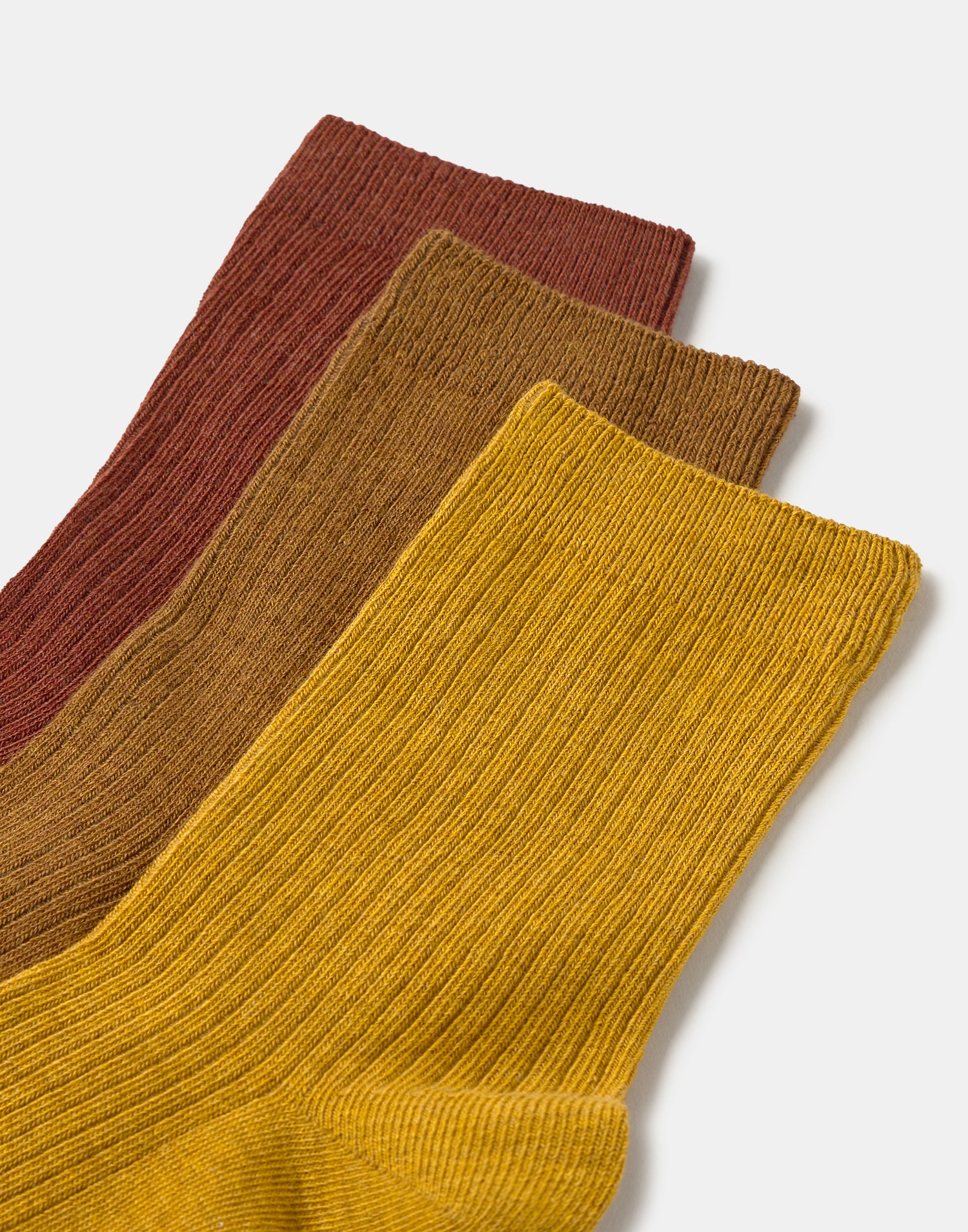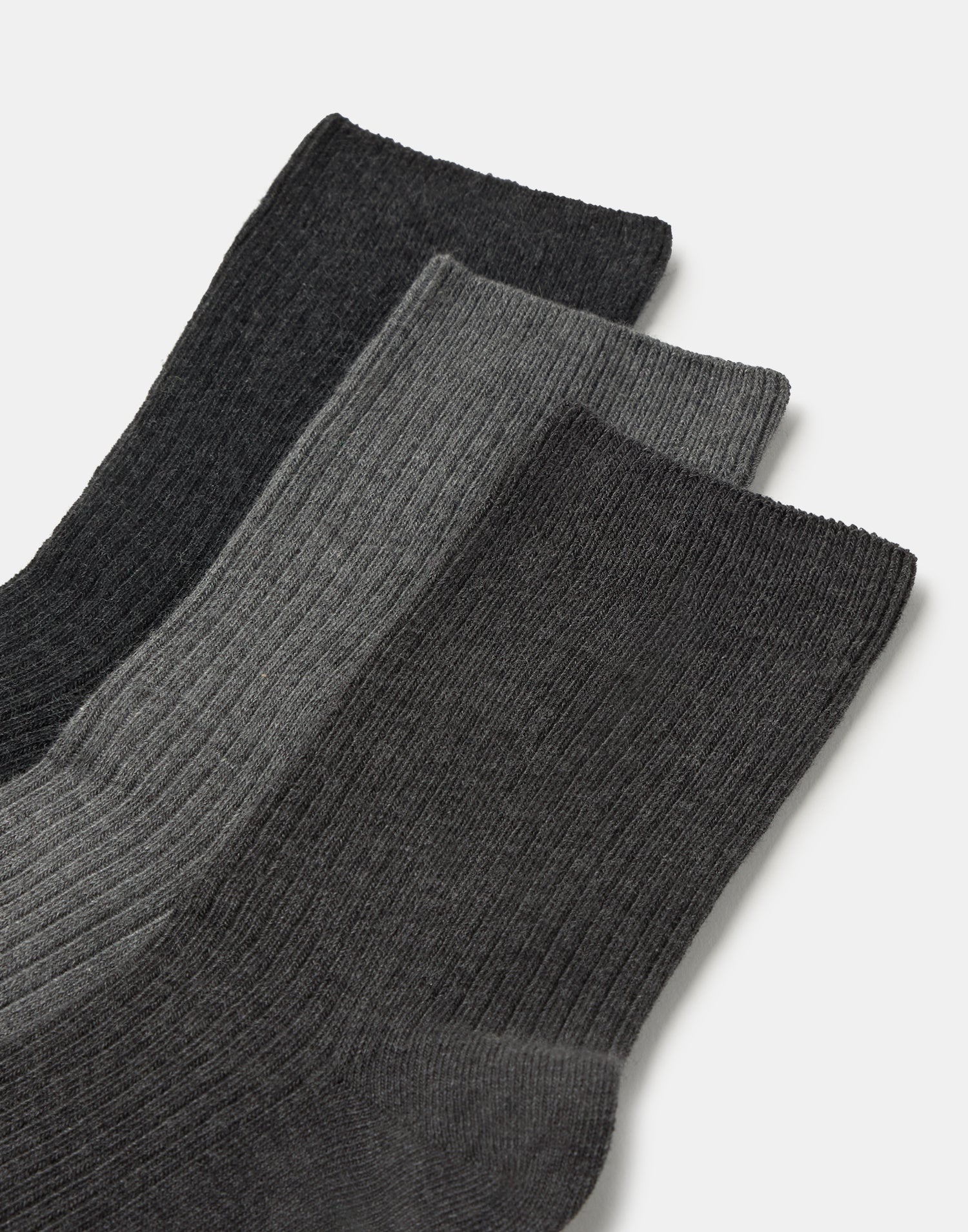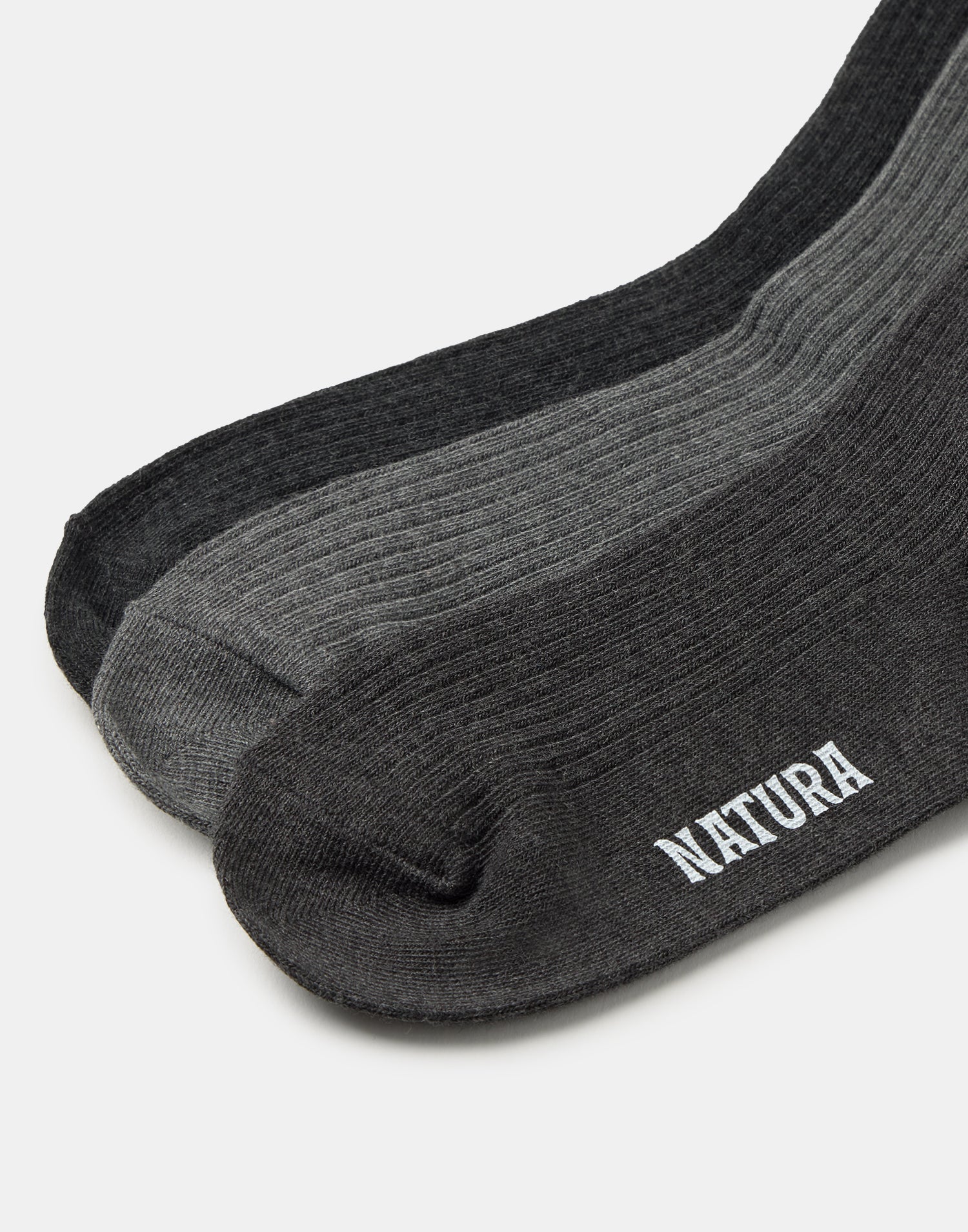 Pack de 3 pares de calcetines altos de canalé confeccionados en mezcla de algodón.