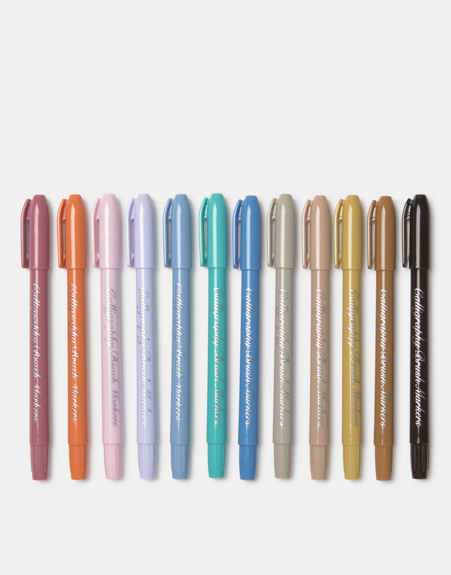 Rotuladores caligráficos de 12 colores y con punta de brocha. Perfectos para dar un toque de color a tus apuntes, sombrear tus dibujos o practicar lettering.