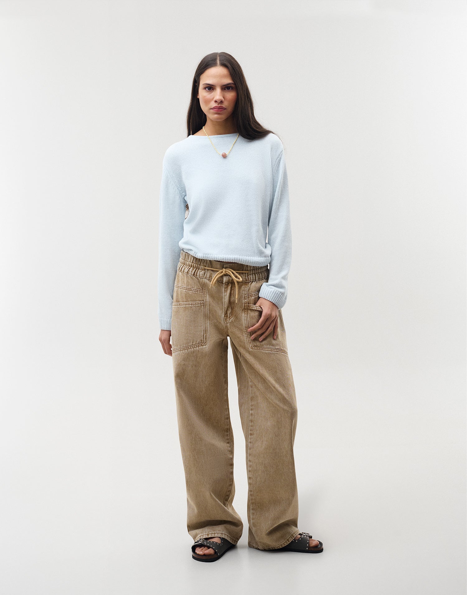 Jersey de cuello redondo y manga larga con acabados en rib.