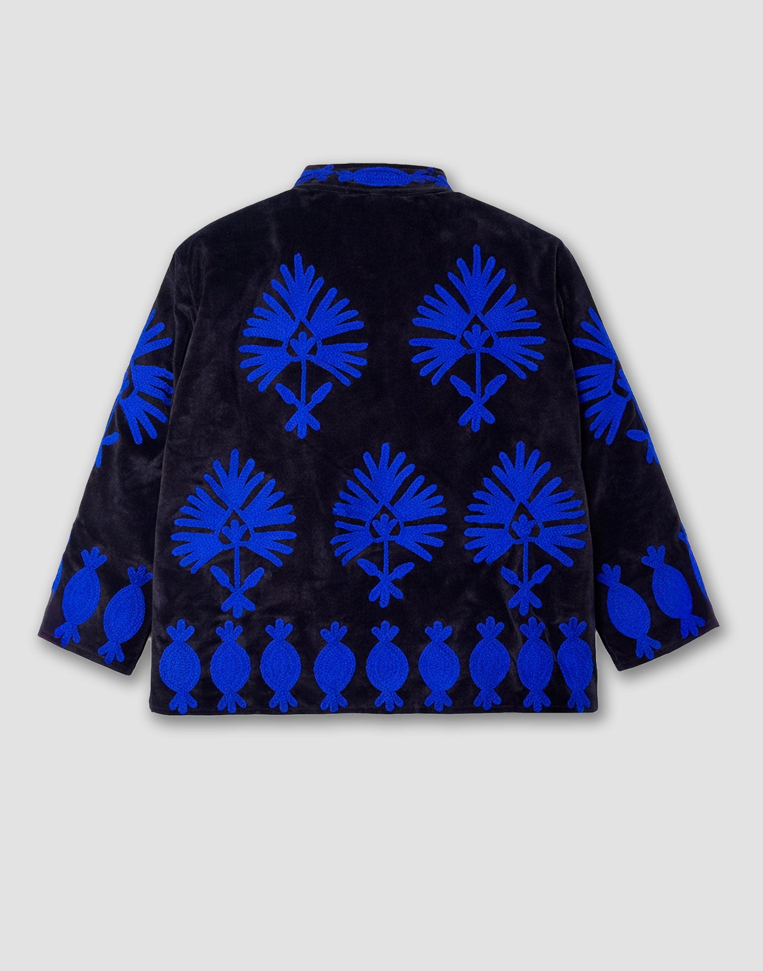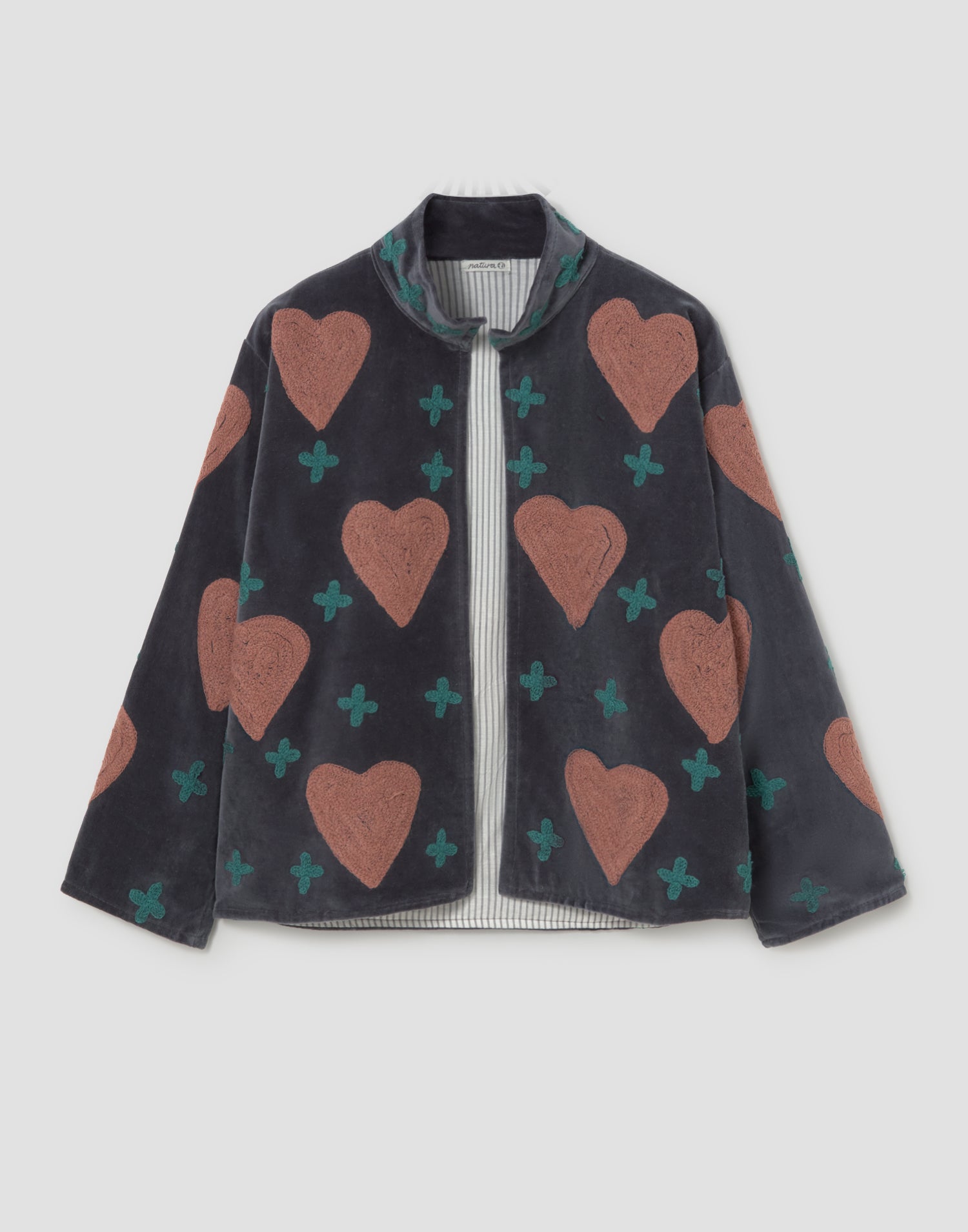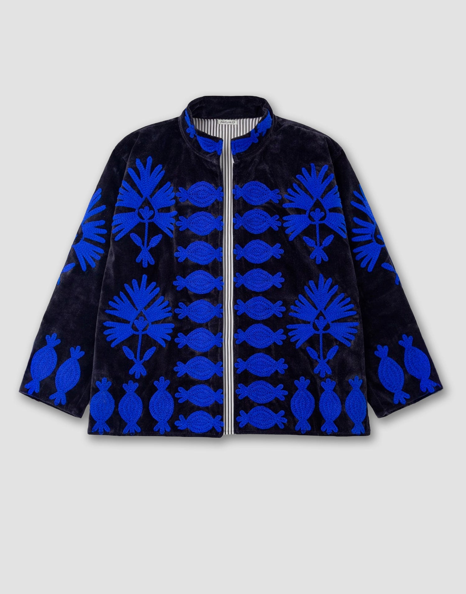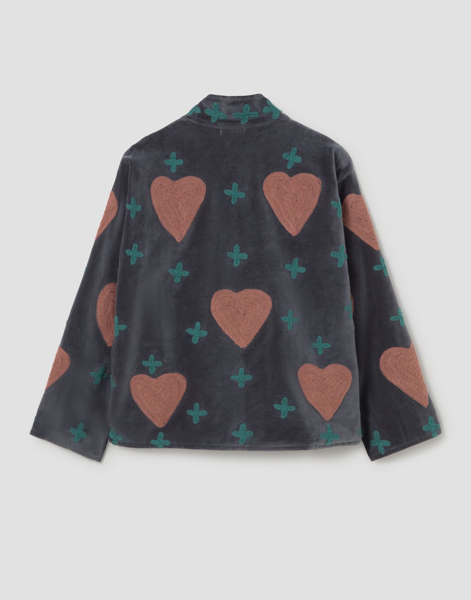 Chaqueta de edición limitada confeccionada 100% en algodón. Diseño oversized con manga larga, detalles bordados, bolsillos laterales y forro interior estampado a contraste.