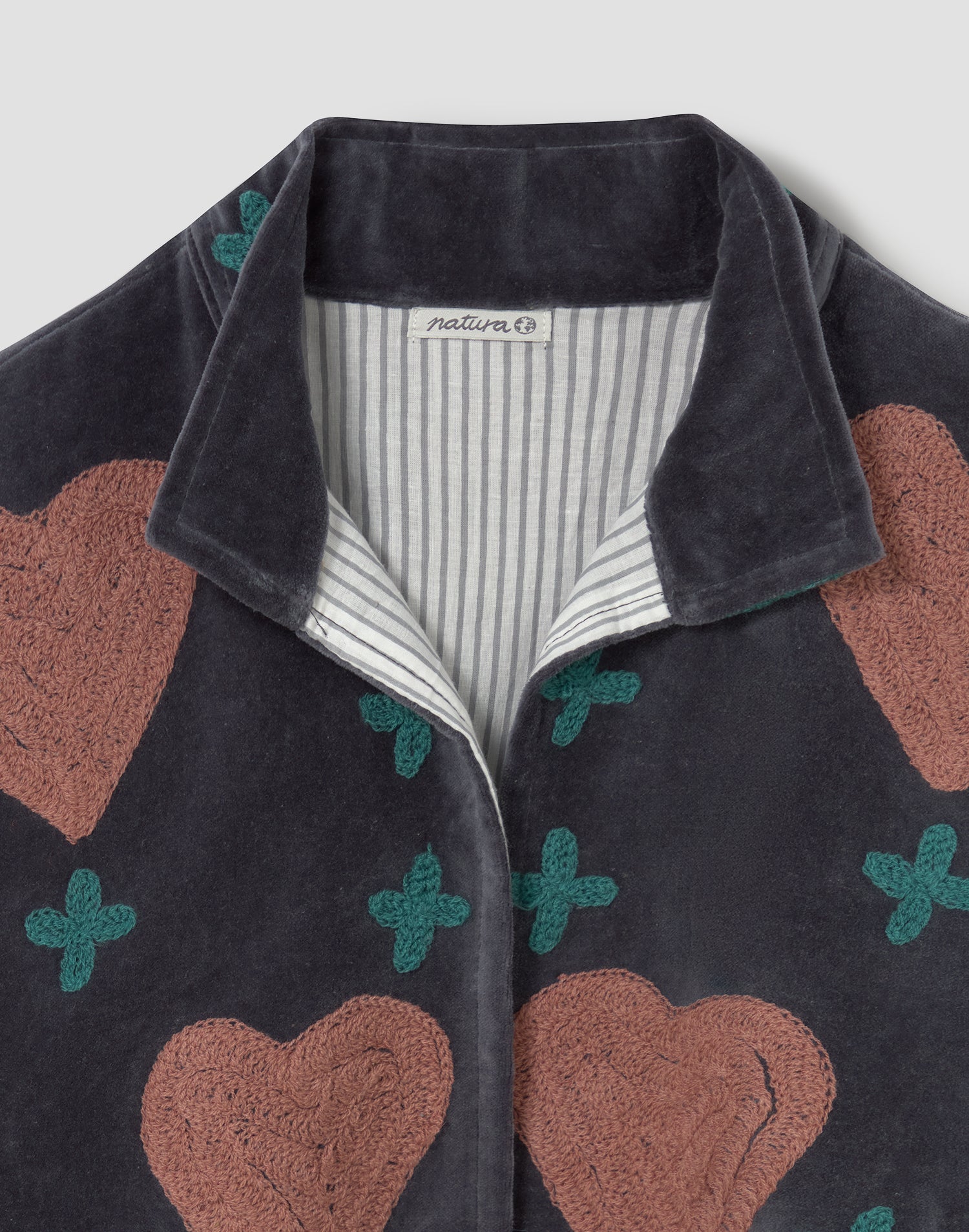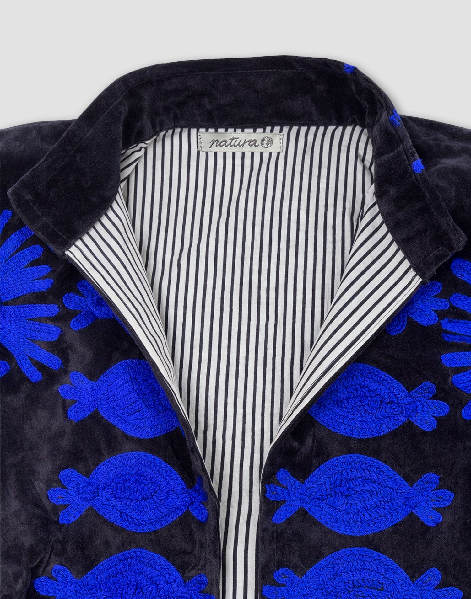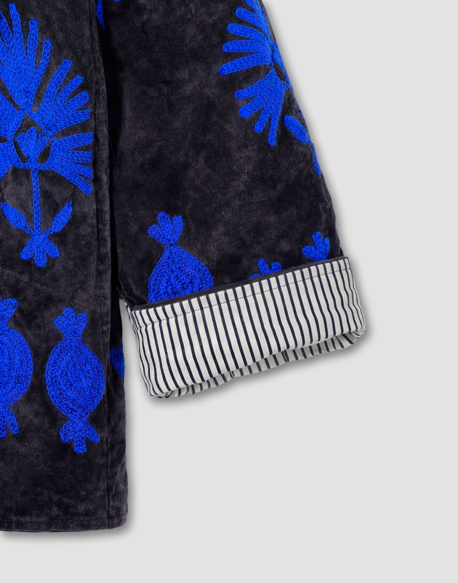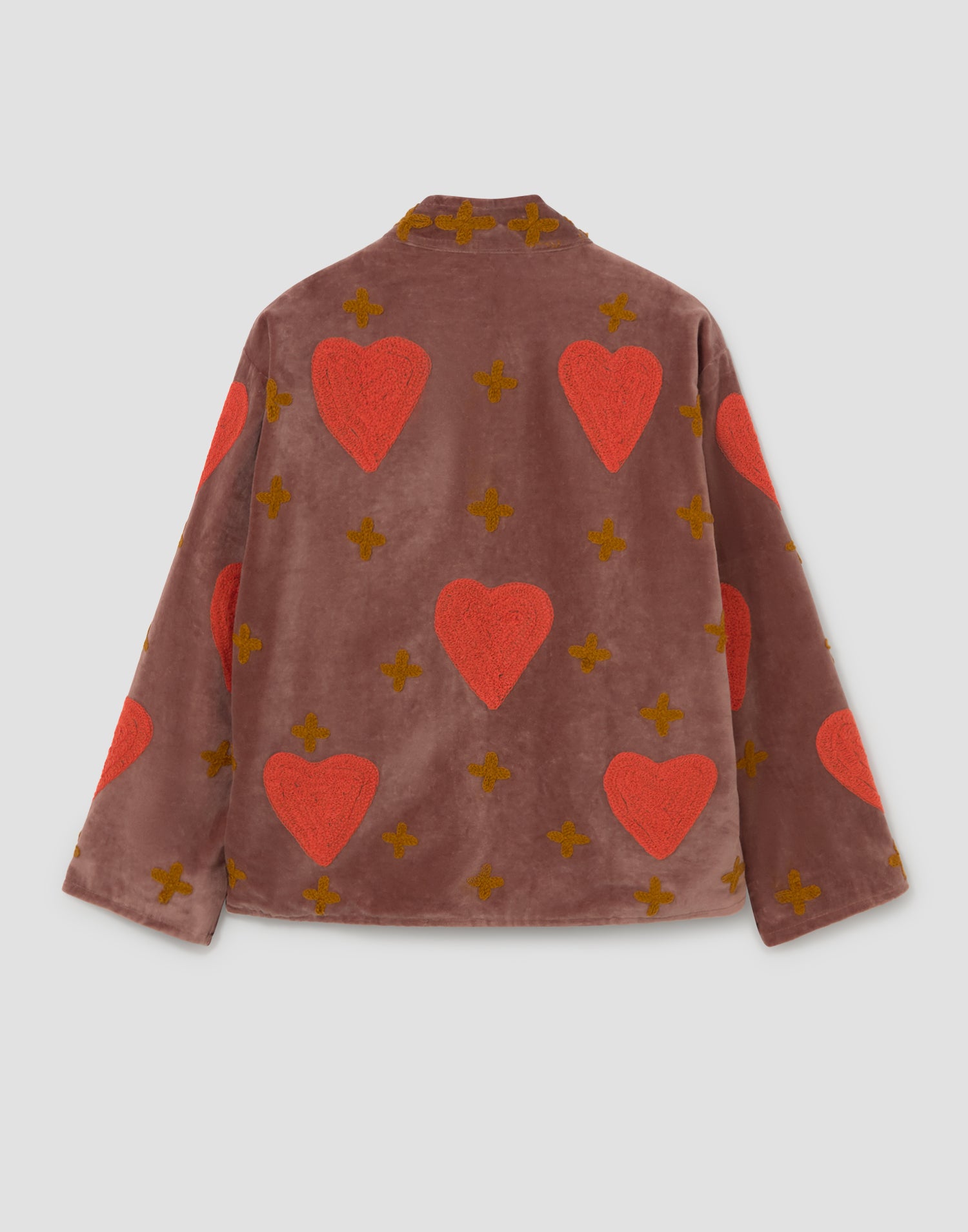 Chaqueta de edición limitada confeccionada 100% en algodón. Diseño oversized con manga larga, detalles bordados, bolsillos laterales y forro interior estampado a contraste.