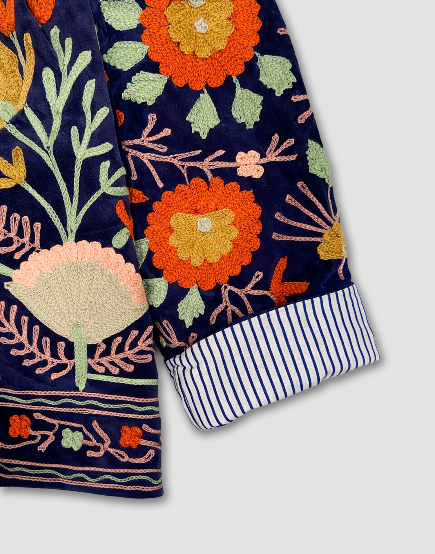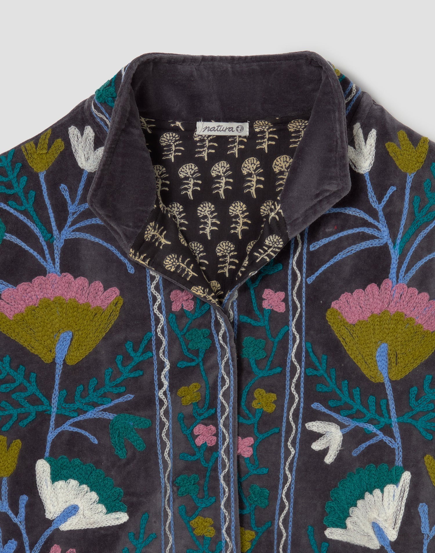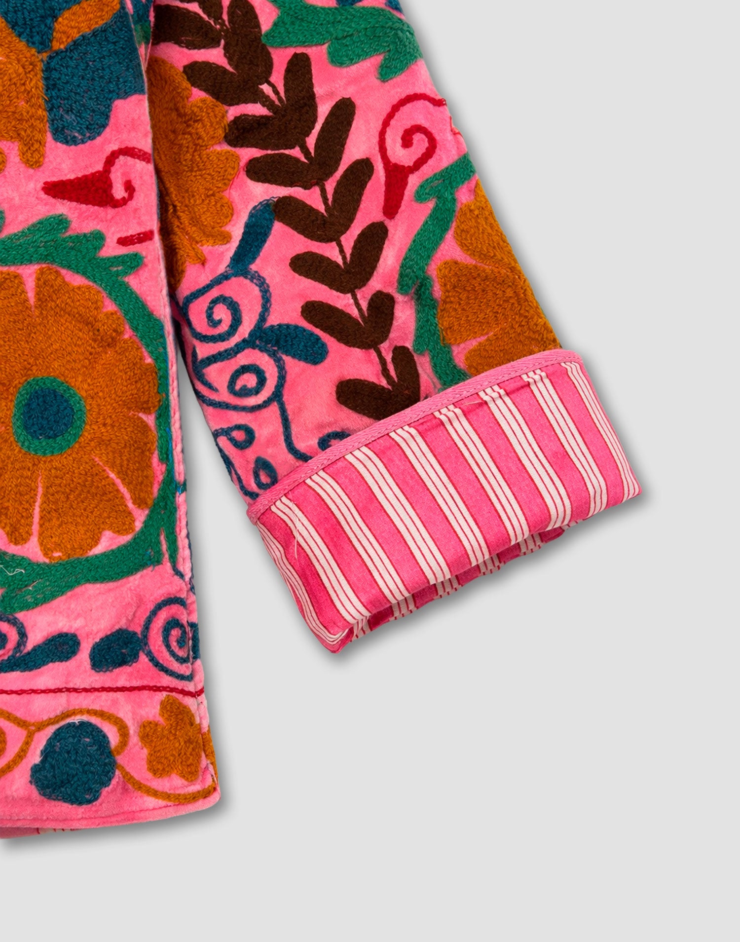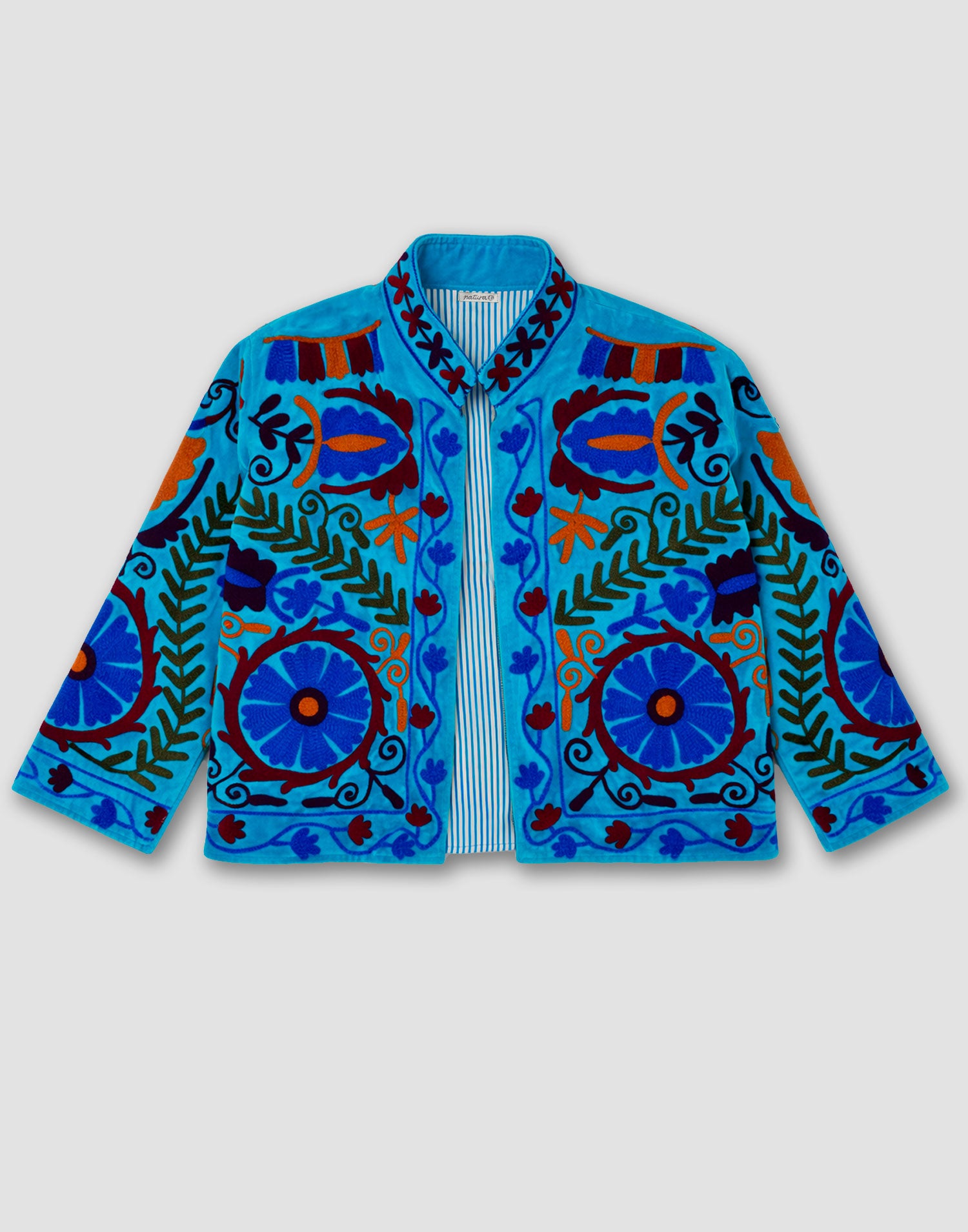 Chaqueta de edición limitada confeccionada 100% en algodón. Diseño oversized con manga larga, detalles bordados, bolsillos laterales y forro interior estampado a contraste.