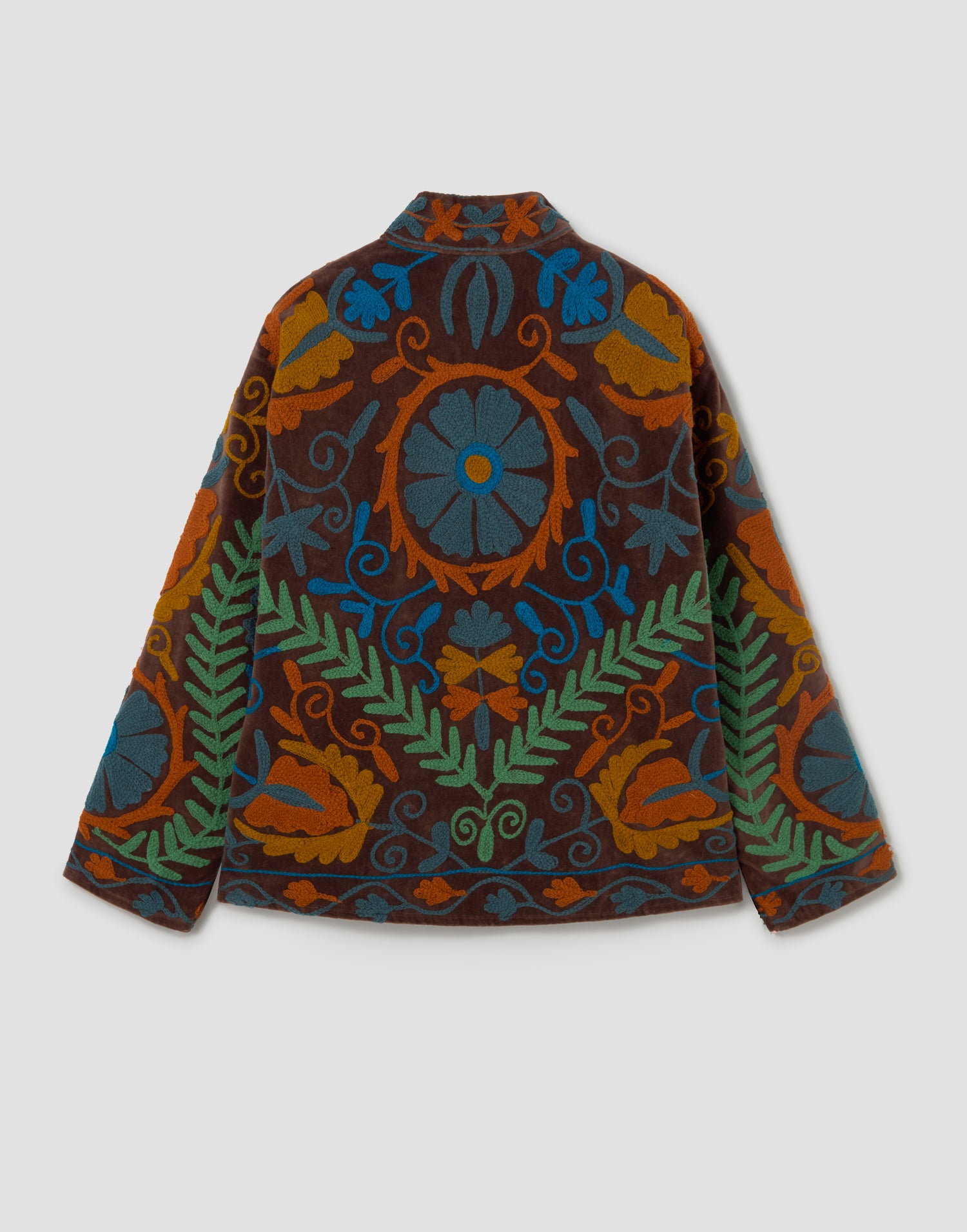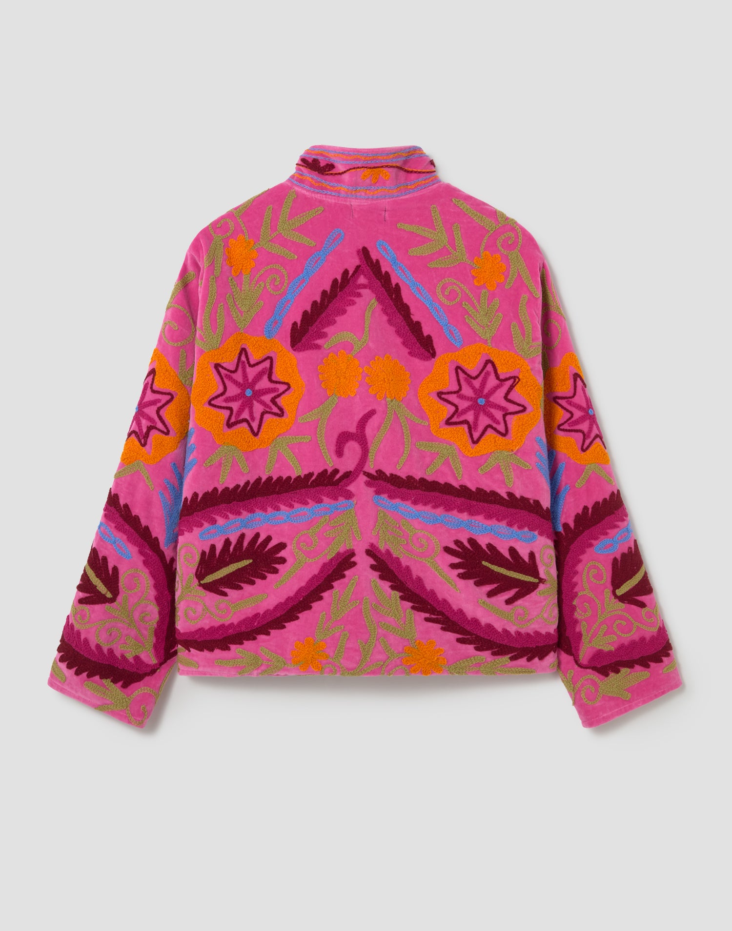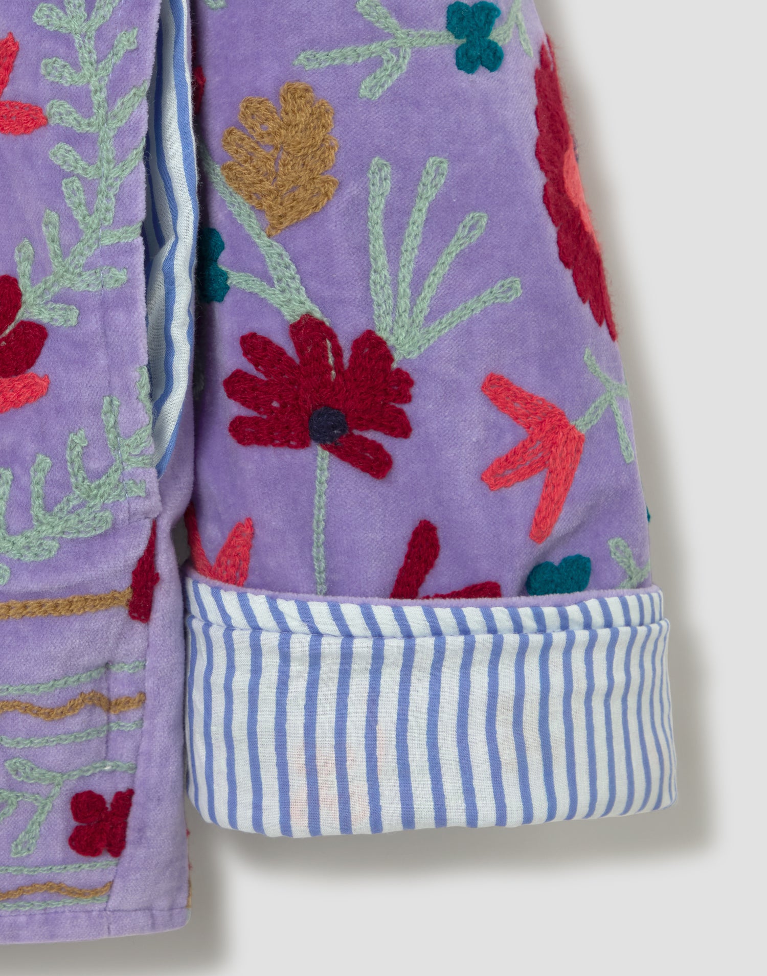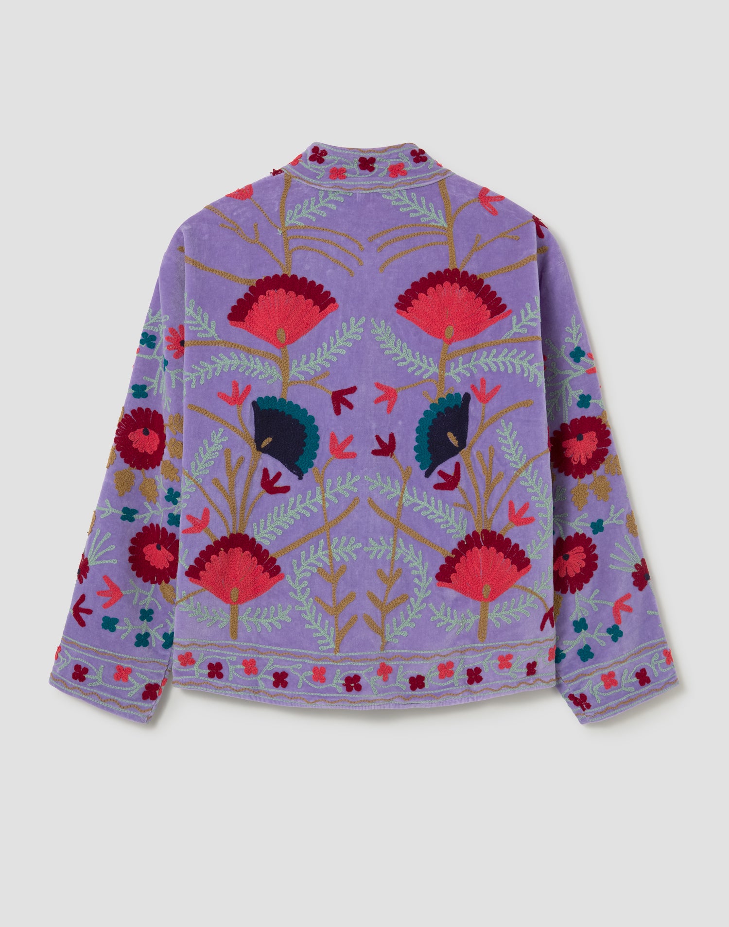 Chaqueta de edición limitada confeccionada 100% en algodón. Diseño oversized con manga larga, detalles bordados, bolsillos laterales y forro interior estampado a contraste.