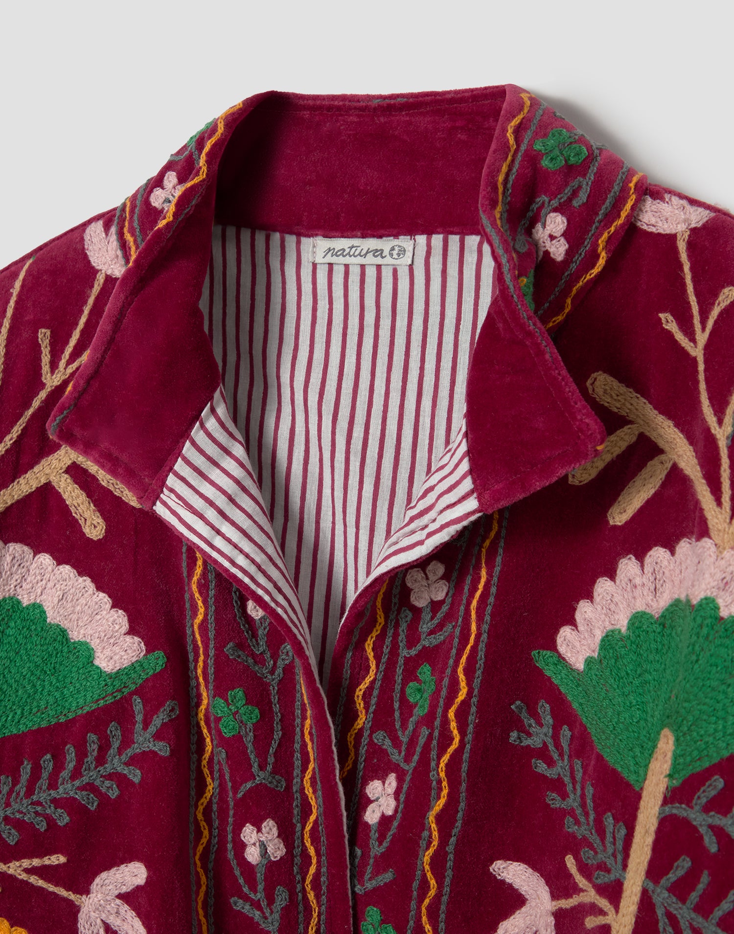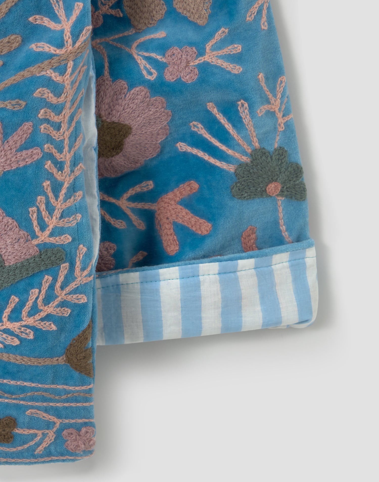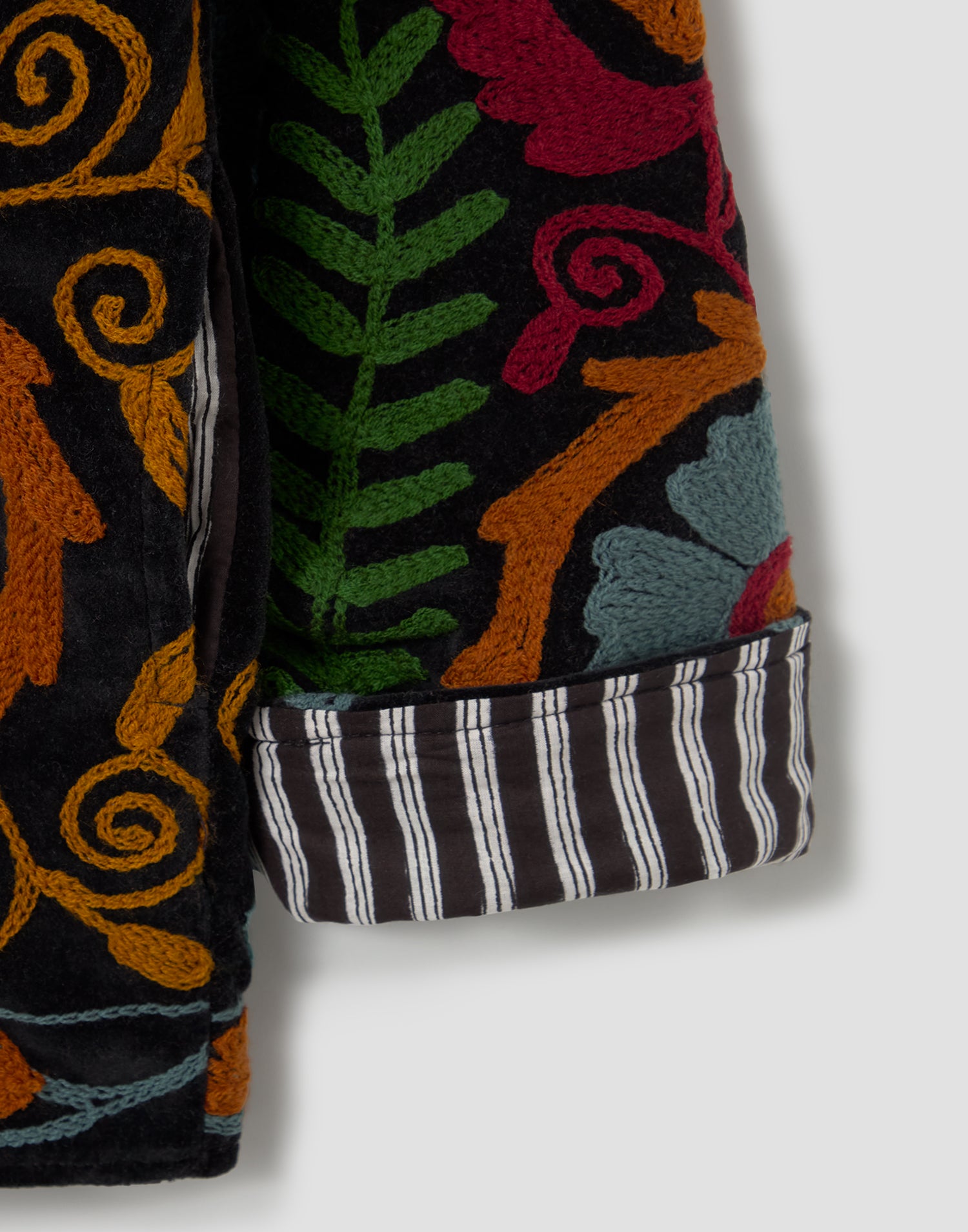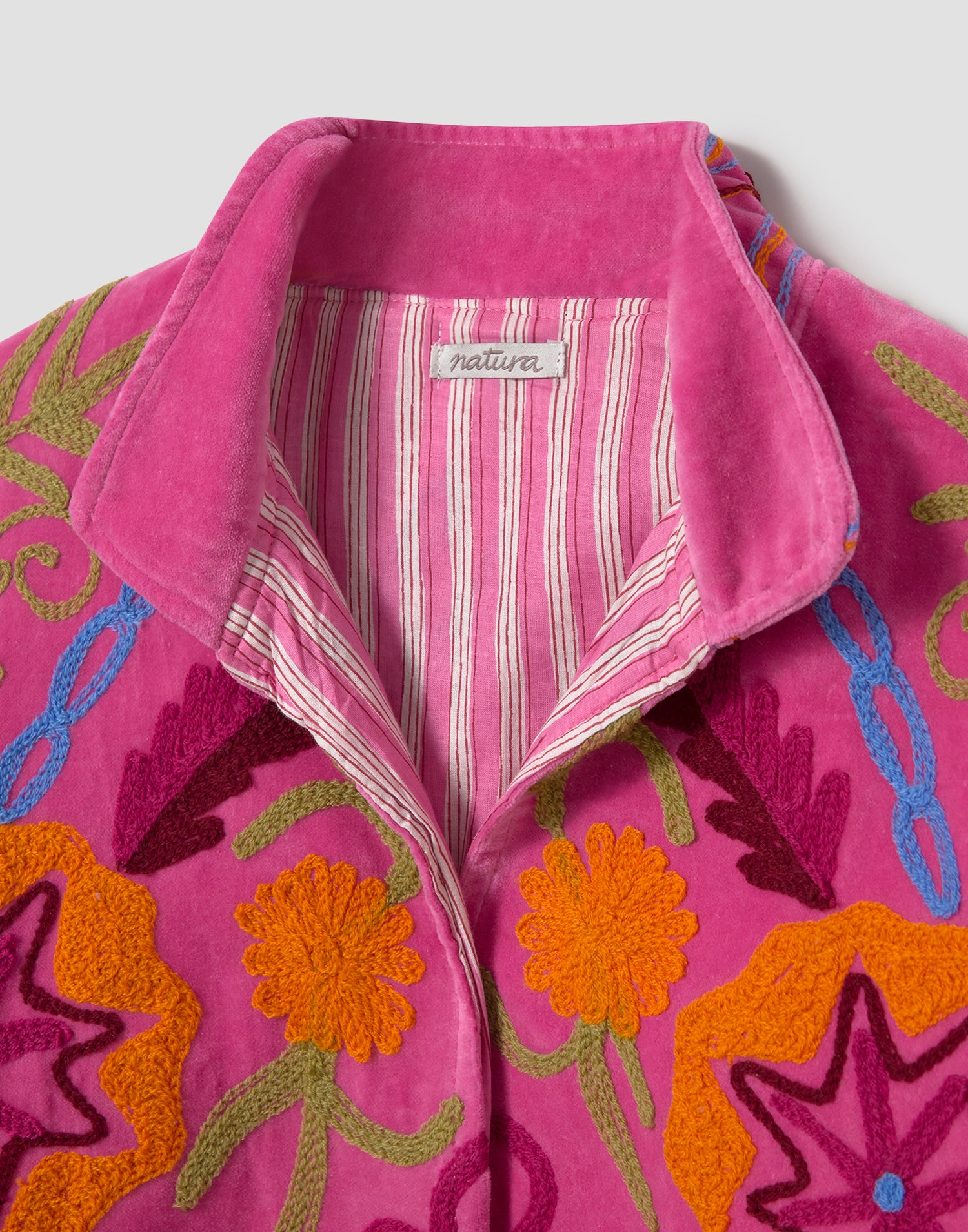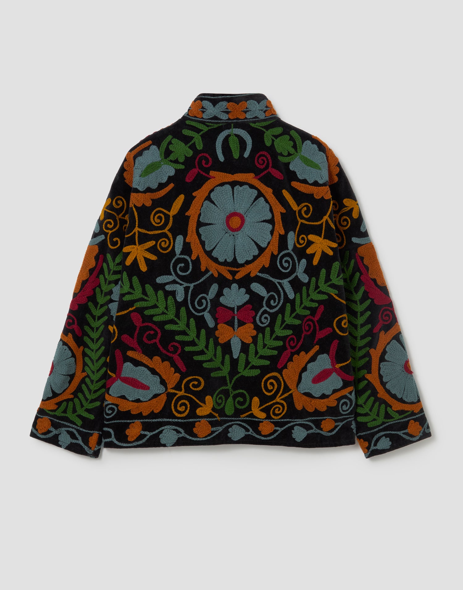 Chaqueta de edición limitada confeccionada 100% en algodón. Diseño oversized con manga larga, detalles bordados, bolsillos laterales y forro interior estampado a contraste.