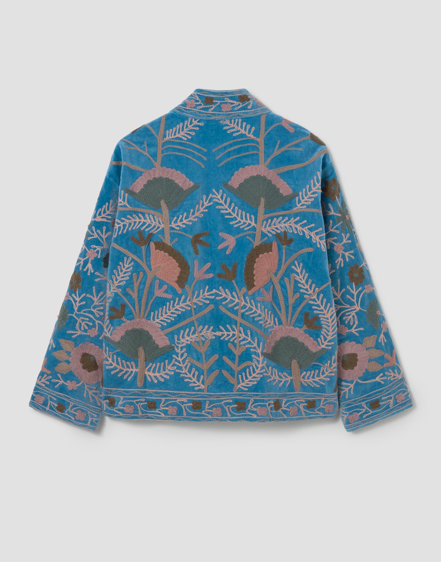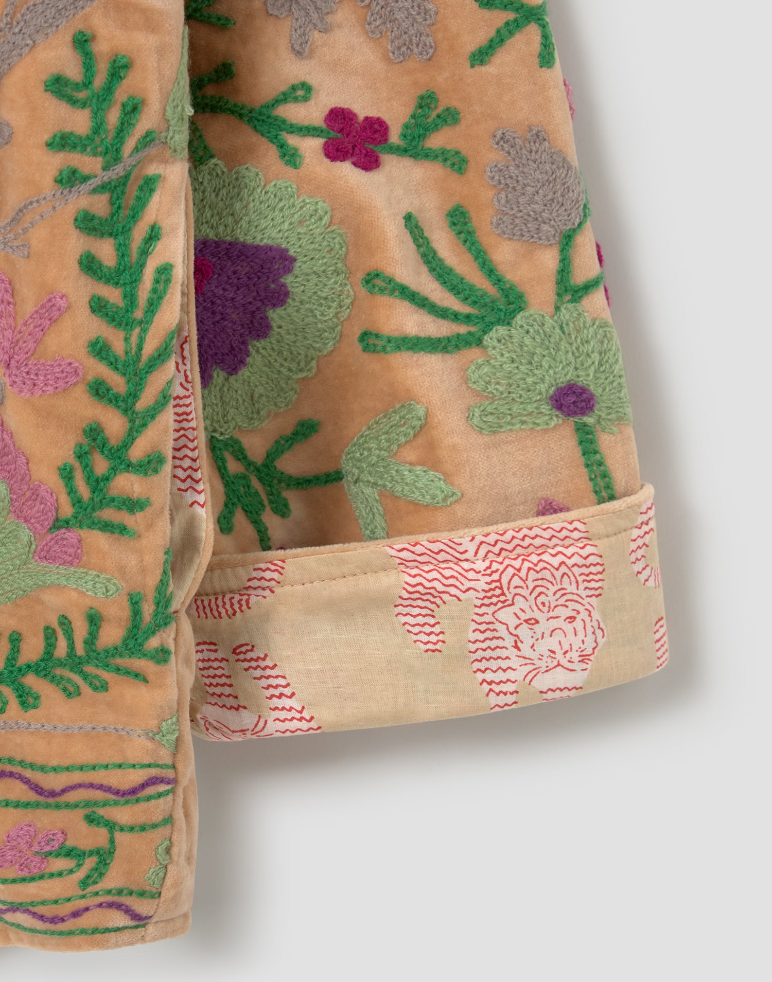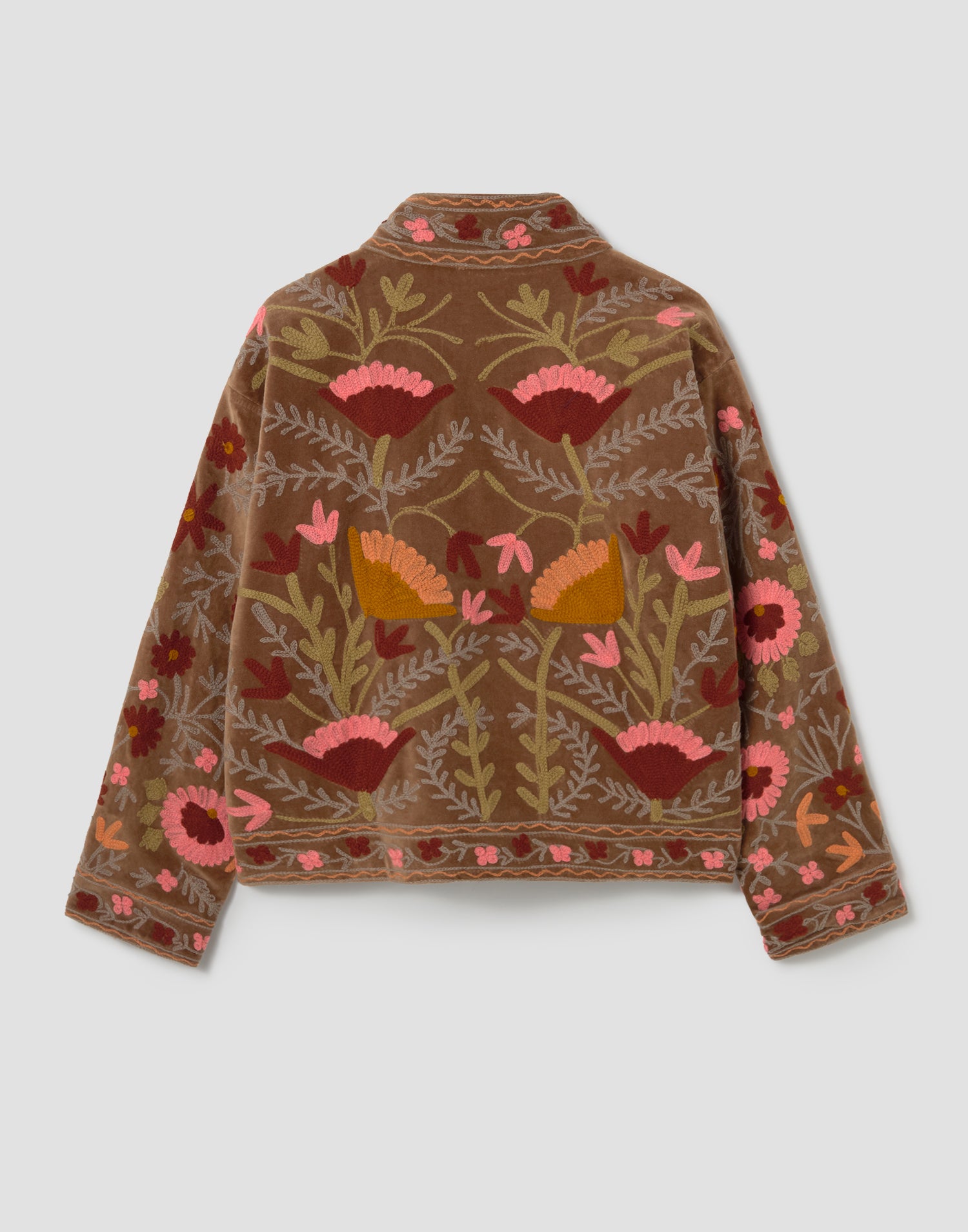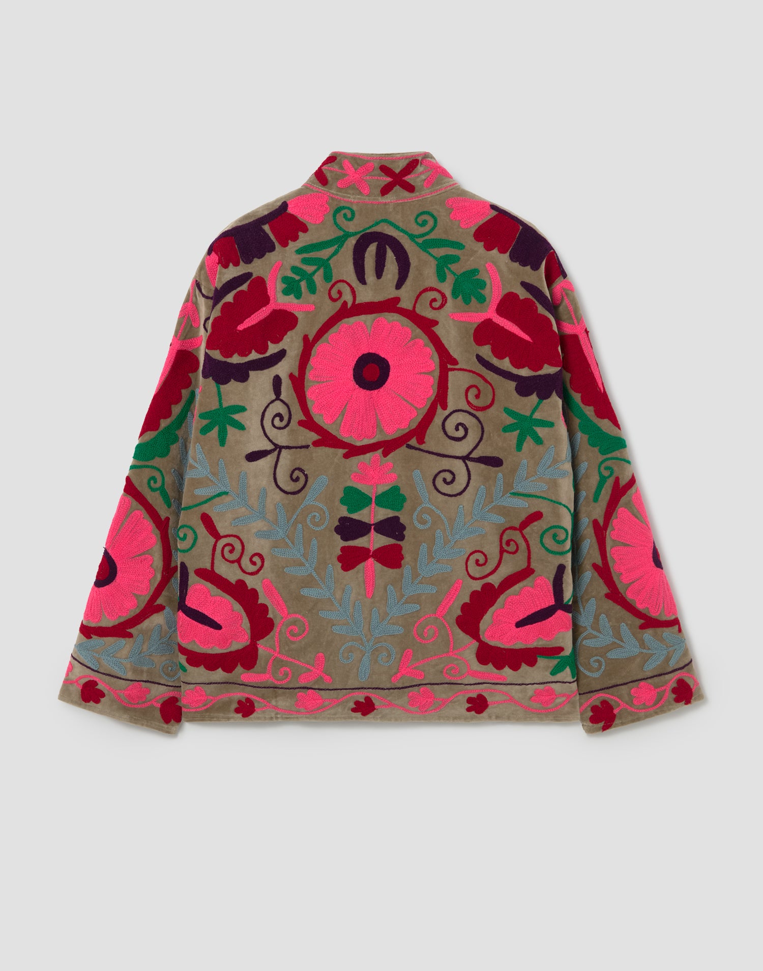 Chaqueta de edición limitada confeccionada 100% en algodón. Diseño oversized con manga larga, detalles bordados, bolsillos laterales y forro interior estampado a contraste.