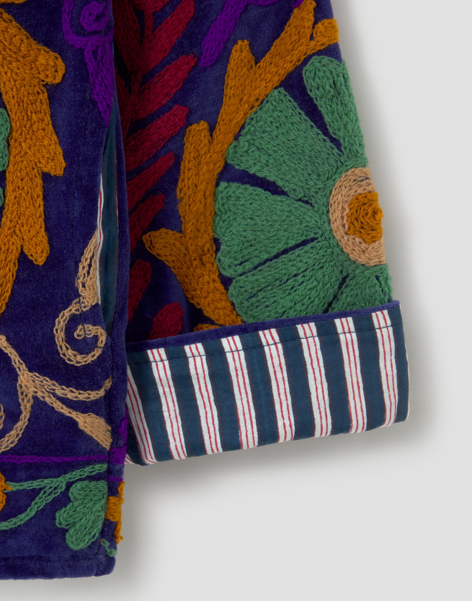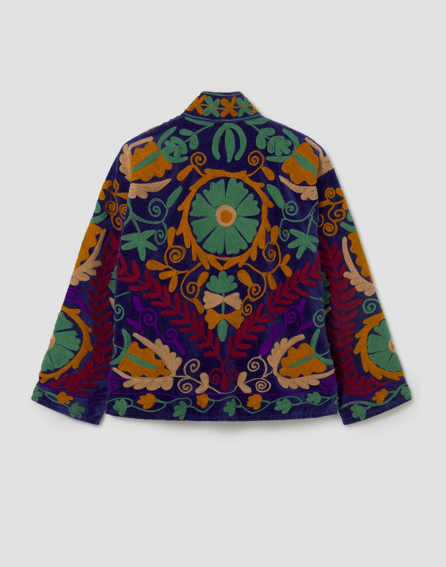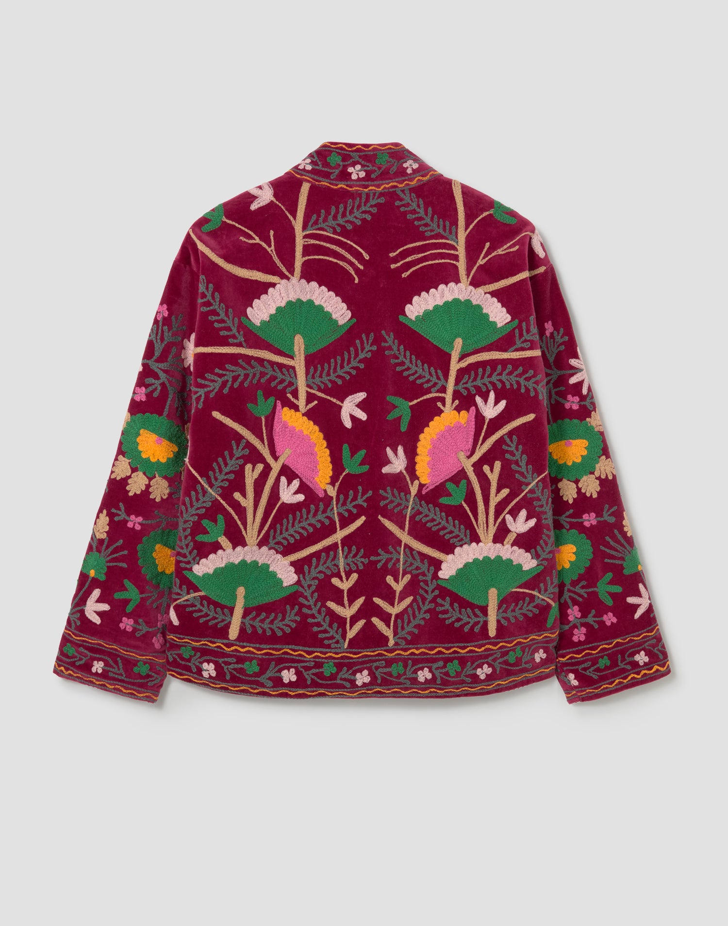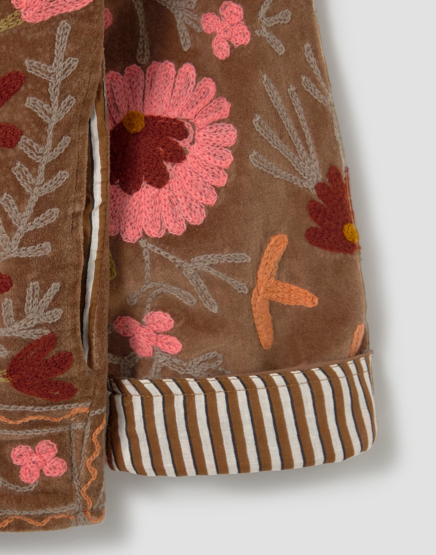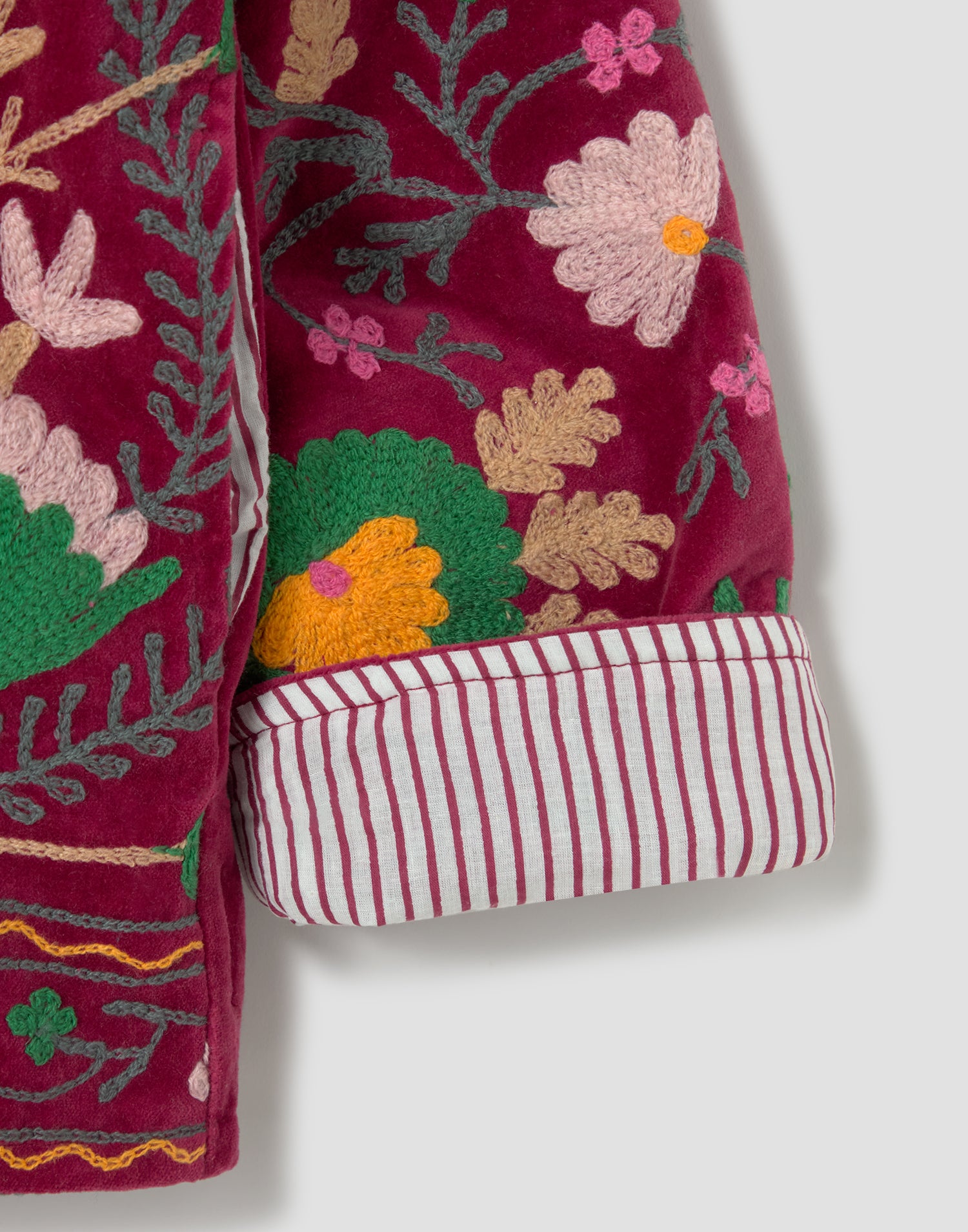 Chaqueta de edición limitada confeccionada 100% en algodón. Diseño oversized con manga larga, detalles bordados, bolsillos laterales y forro interior estampado a contraste.
