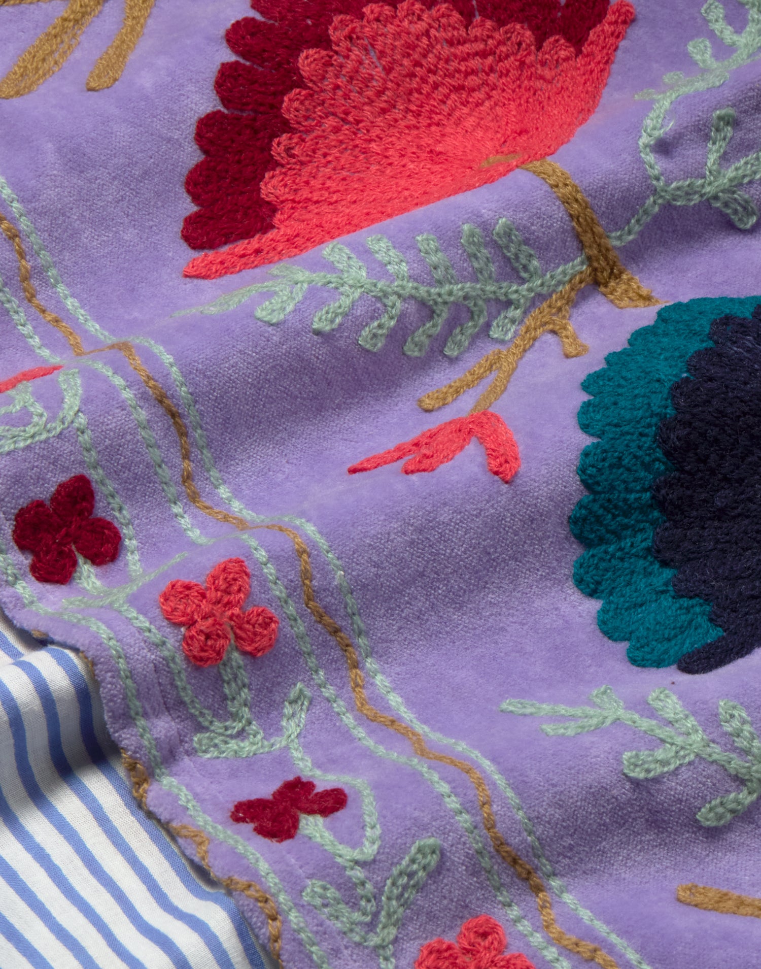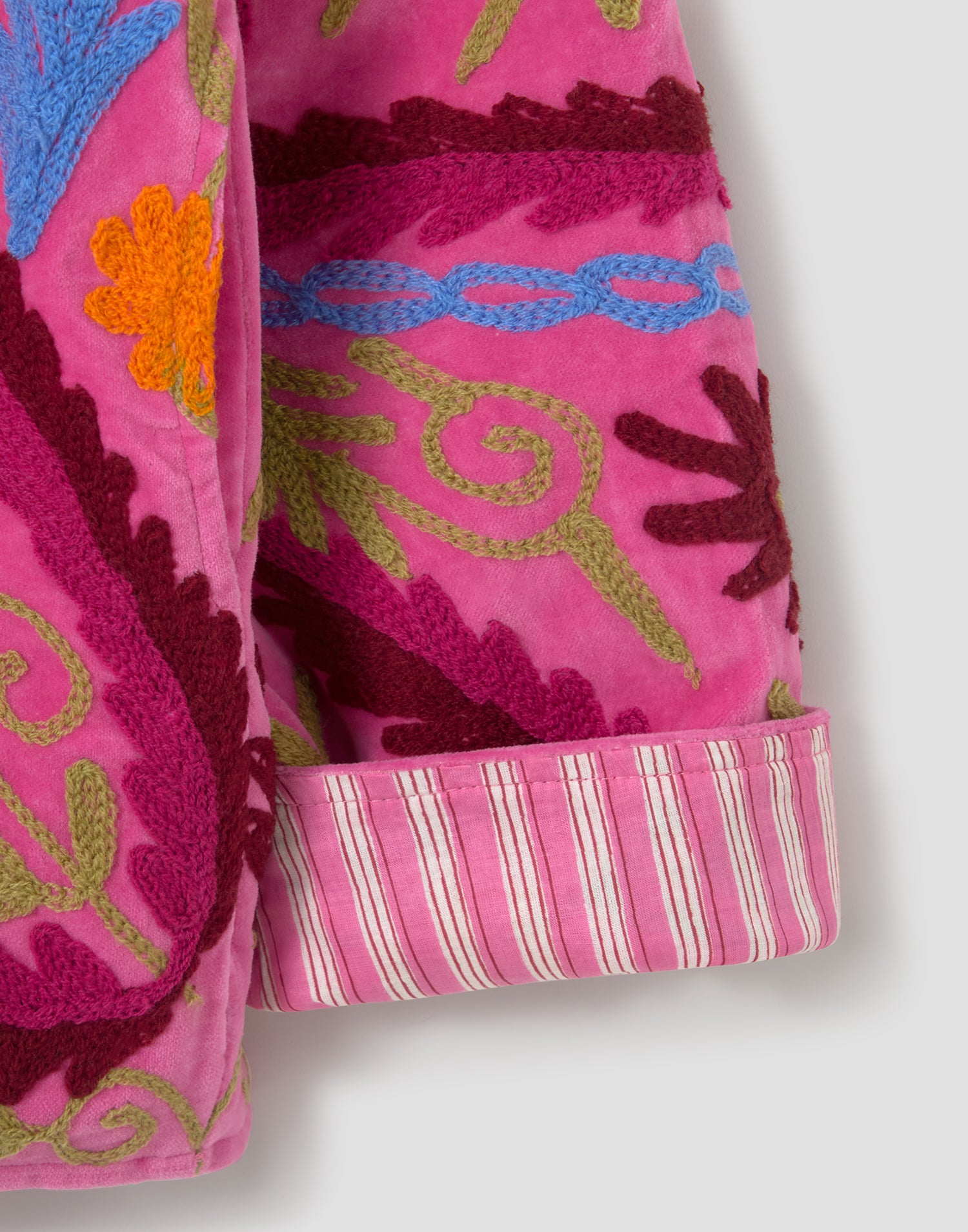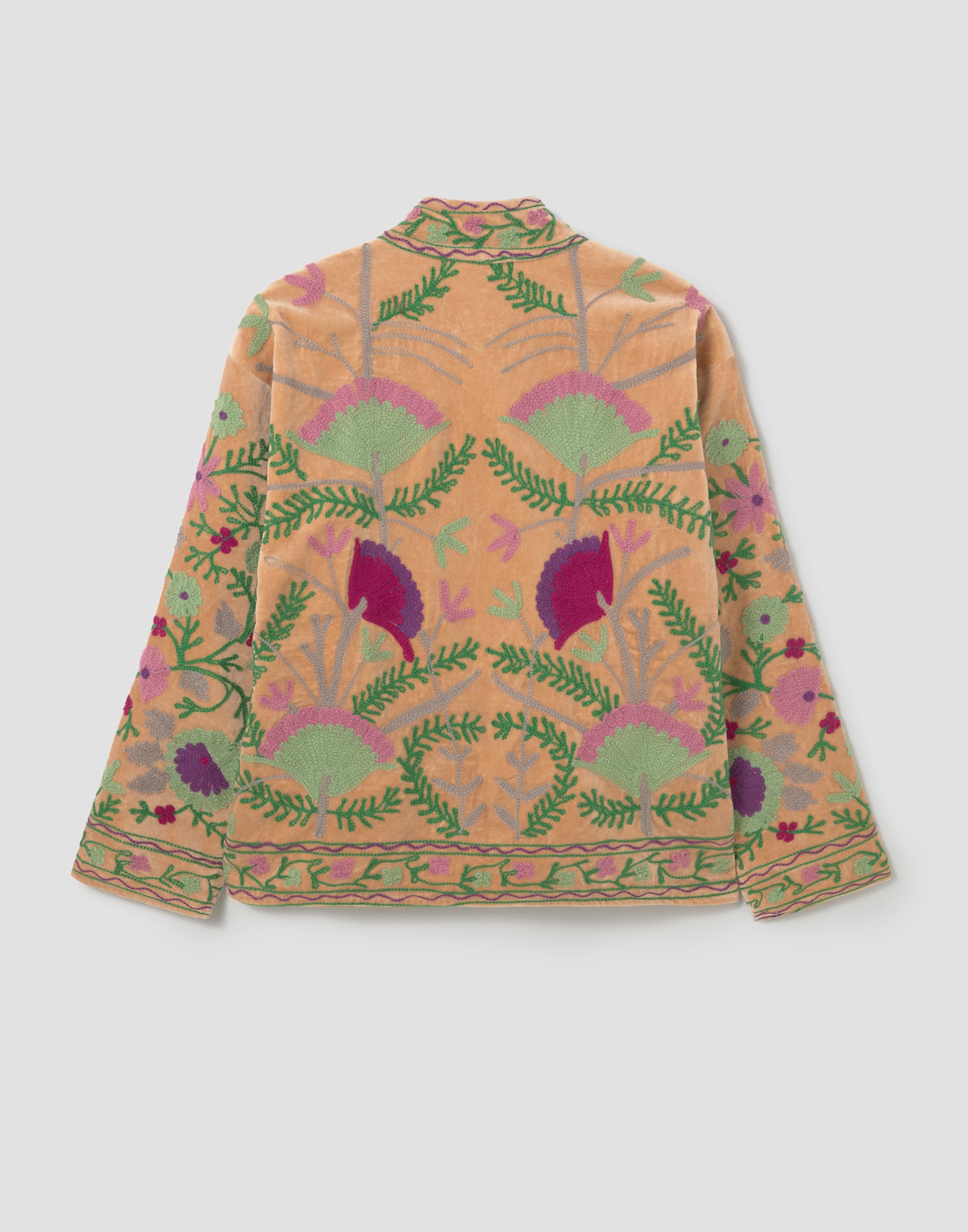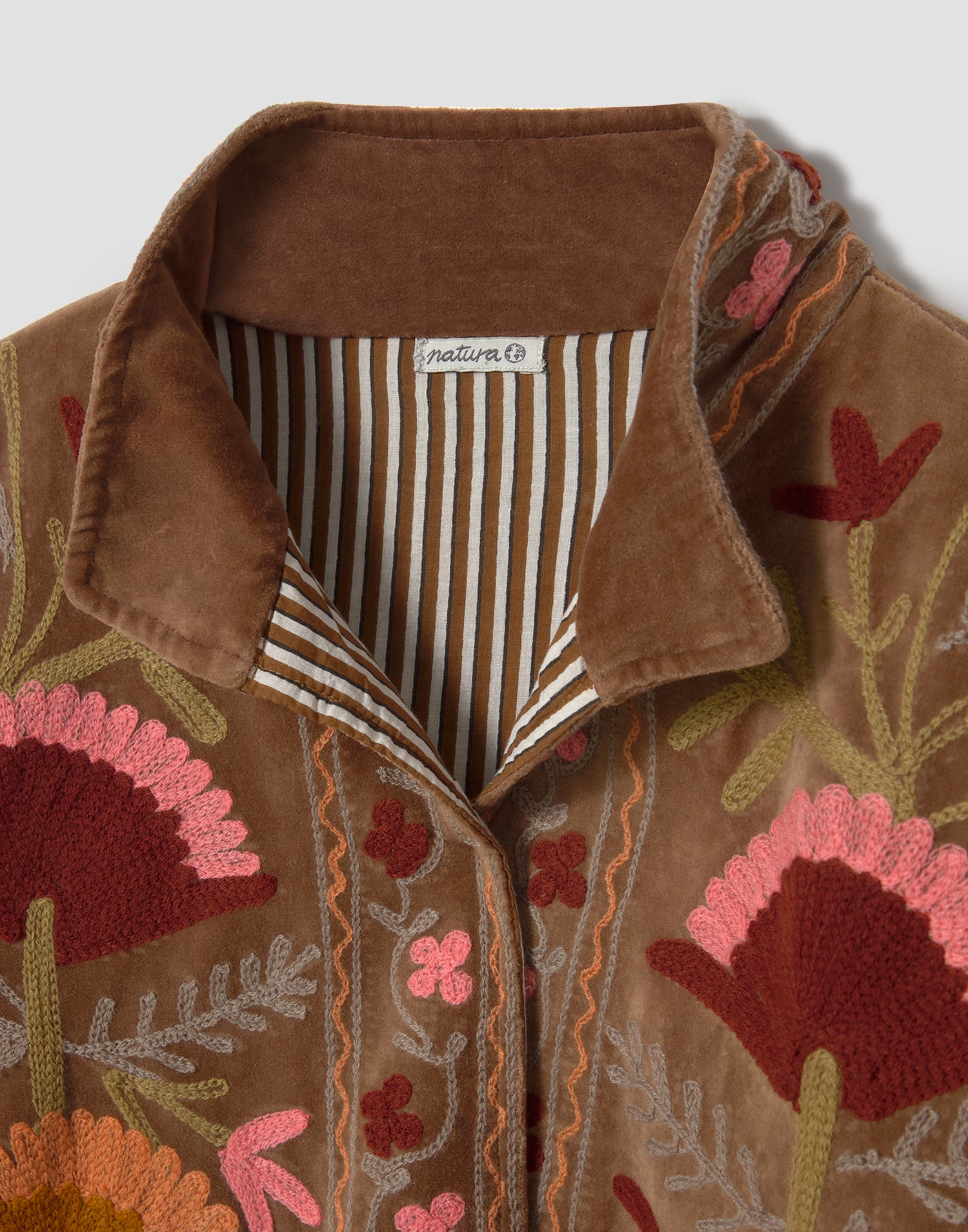 Chaqueta de edición limitada confeccionada 100% en algodón. Diseño oversized con manga larga, detalles bordados, bolsillos laterales y forro interior estampado a contraste.
